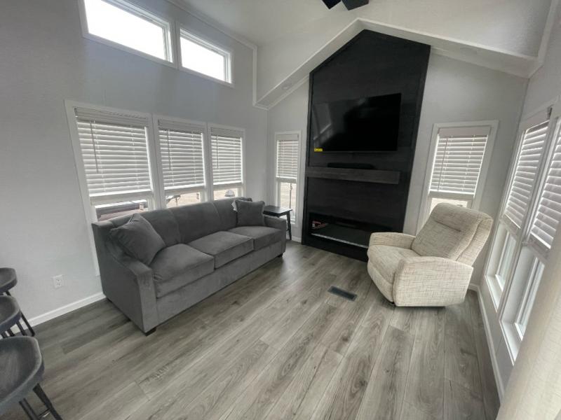Keep your residential lifestyle while on vacation with the Kropf Industries Island Series park model! These units have been constructed with a bay window front end, an enclosed underbelly, a 10" I-beam chassis with full outriggers, a detachable hitch, in-floor ducted heat runs, exterior shutters, and residential thermopane windows. The interior offers you a luxurious space to spend your time in with the deluxe lighting, deluxe cabinetry, and designer drapes, and the kitchen has a high-end feel with its stone backsplash, self-edge countertops, and island bar light. Wood blinds will dress up the windows, and the vertical patio blind will allow you to let some sunshine in when you see fit.