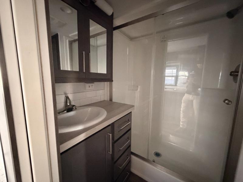 There are countless ways you can enjoy the Kropf Industries Lakeside Series park model! You can enjoy it as a cabin in the woods, or you can stay closer to civilization and use it as a party center. The laminate/self edge countertops and stone/tile backsplash is not only appealing to the eye, but also easy to clean. Stay clean with a 54" one piece fiberglass shower and enjoy your favorite beverages chilled in the residential 18 cubic foot refrigerator. A queen bed offers a good night's rest and mini blinds add extra privacy. There are many upgrade options you can select like an on demand gas water heater, an upright furnace, premium siding, a metal roof for the rain to fall right off, and brick mold window trim for an even more desirable exterior. Come see all of the practical functionality today!