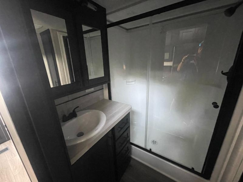 There are countless ways you can enjoy the Kropf Industries Lakeside Series park model! You can enjoy it as a cabin in the woods, or you can stay closer to civilization and use it as a party center. The laminate/self edge countertops and stone/tile backsplash is not only appealing to the eye, but also easy to clean. Stay clean with a 54" one piece fiberglass shower and enjoy your favorite beverages chilled in the residential 18 cubic foot refrigerator. A queen bed offers a good night's rest and mini blinds add extra privacy. There are many upgrade options you can select like an on demand gas water heater, an upright furnace, premium siding, a metal roof for the rain to fall right off, and brick mold window trim for an even more desirable exterior. Come see all of the practical functionality today!