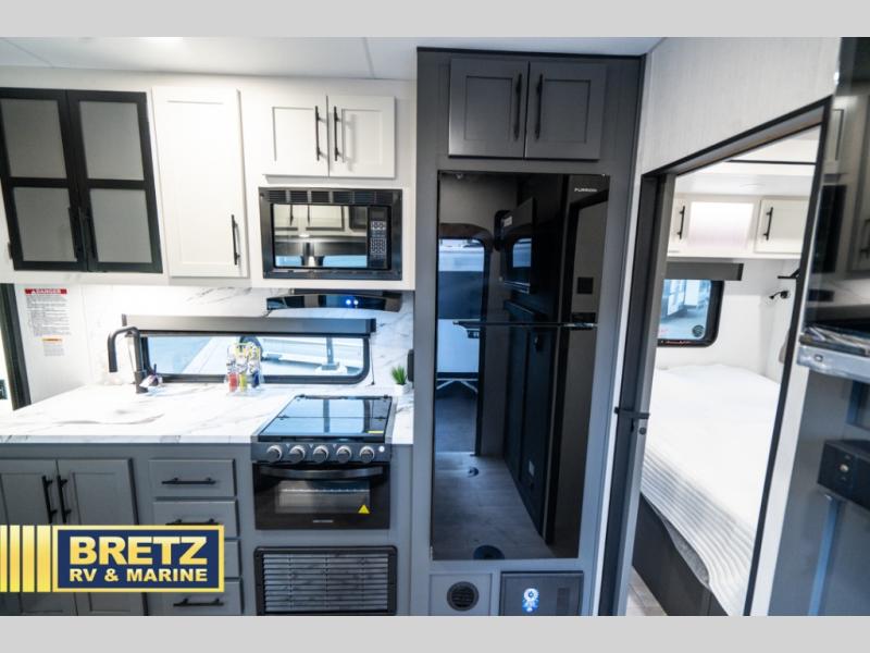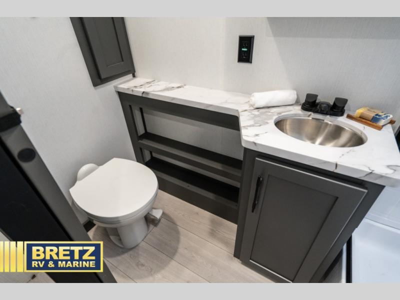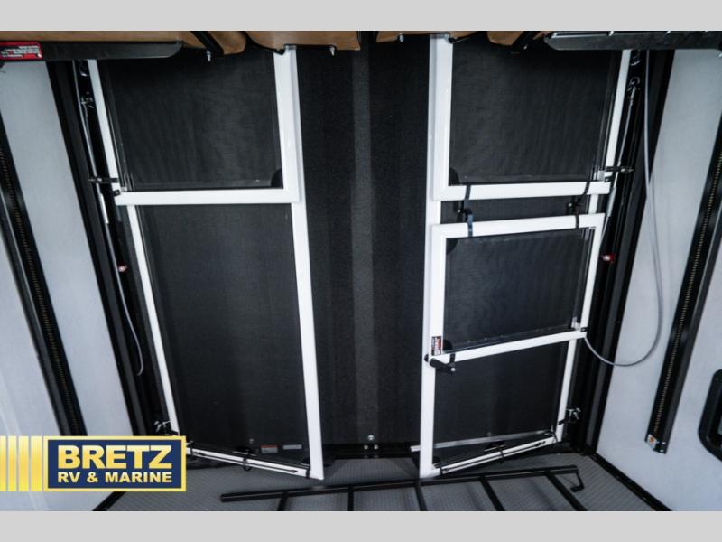 With any Accelerate toy hauler by KZ, you will enjoy solid construction materials, comfortable interiors, and convenient amenities! There are flip-up steps outside for added stability, along with a pass-thru storage for your hiking gear, fishing poles and more. Each fifth wheel and travel trailer includes a private bedroom with a queen bed slide, full bath and kitchen amenities, plus interior storage for personal belongings, food and more. The ramp door with a patio rail kit will make it easier than ever to load and unload your toys, and the drop-down bed with a ladder lets you convert the garage space to sleeping space at night!