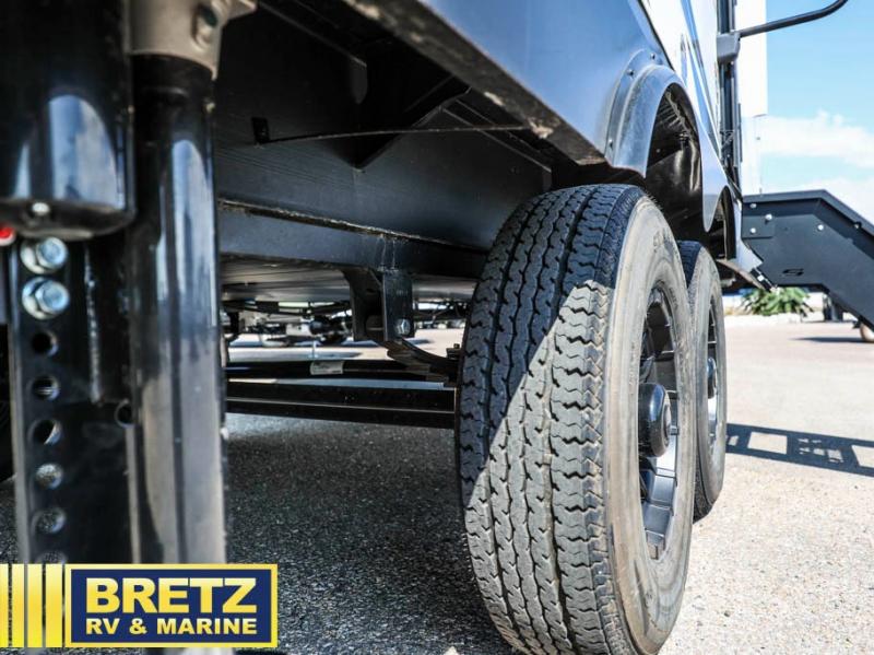 The 2026 KZ RV Accelerate 21A is a toy hauler travel trailer with a length of 28 feet 4 inches. It has a hitch weight of 1210 lbs, a dry weight of 8050 lbs, and a GVWR of 12,000 lbs. The fresh water capacity is 94 gallons.