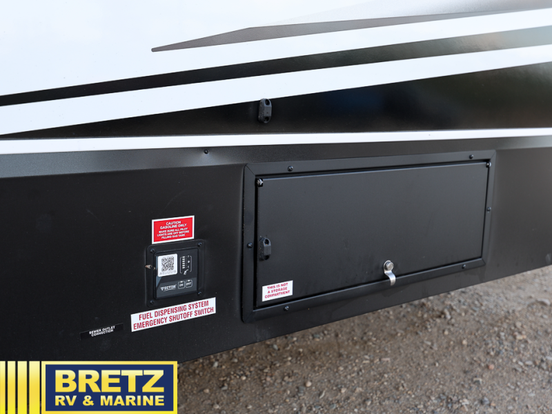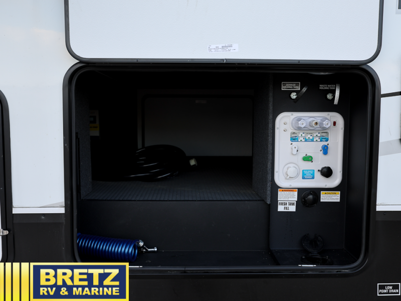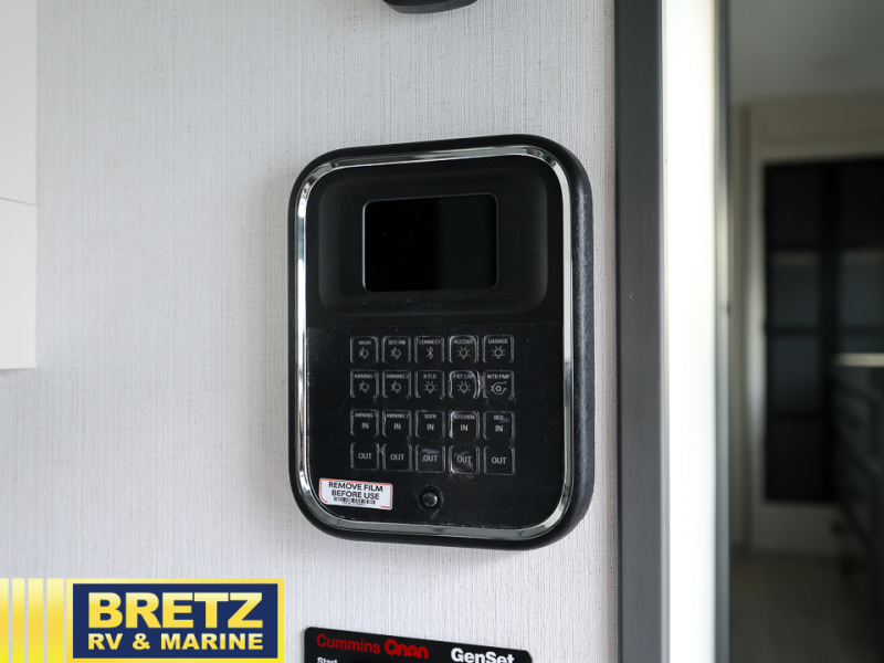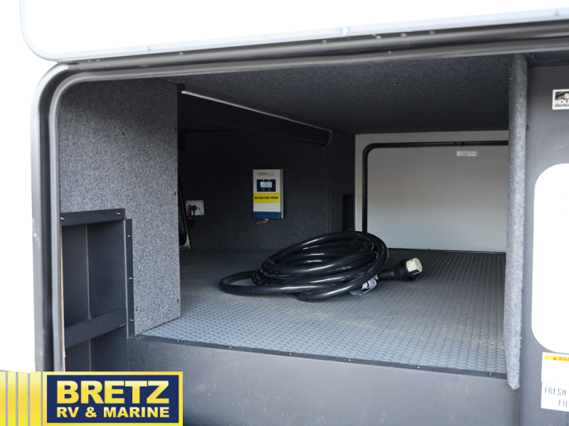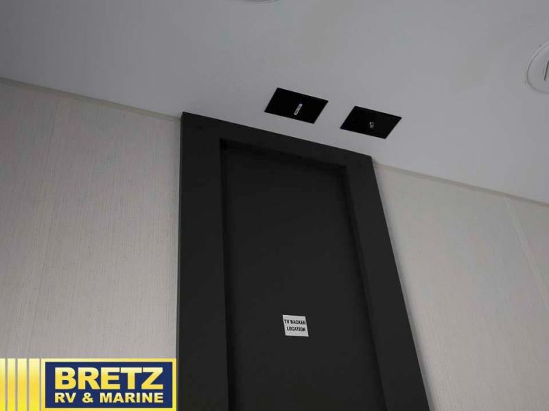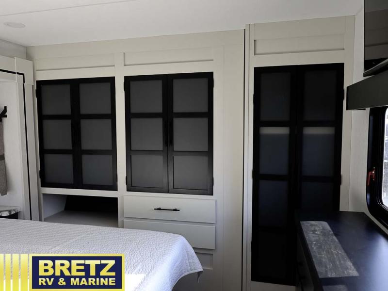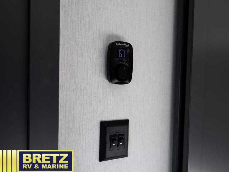 Make each adventure count in this triple slide out toy hauler! Unload your toys from the 11' separate garage, then utilize the rear pull-down screen to keep bugs out while you visit with your crew. There is a power bed with Sit & Sleep here, along with a laminated bed base, a convenient half bath, and a TV backer if you want to add a television. And if you'd like more protection than a screen, an optional 3-seasons patio door can be added here also. The middle kitchen and living room will be a favorite hang-out spot with its dual opposing slides for more space, super sofa theater seating for relaxing, and fireplace with a swing-arm TV for movie nights! Towards the front you'll find the full bath and front private bedroom, complete with a queen bed slide out, dresser with hidden storage, and stackable washer/dryer prep for the option to add these appliances.