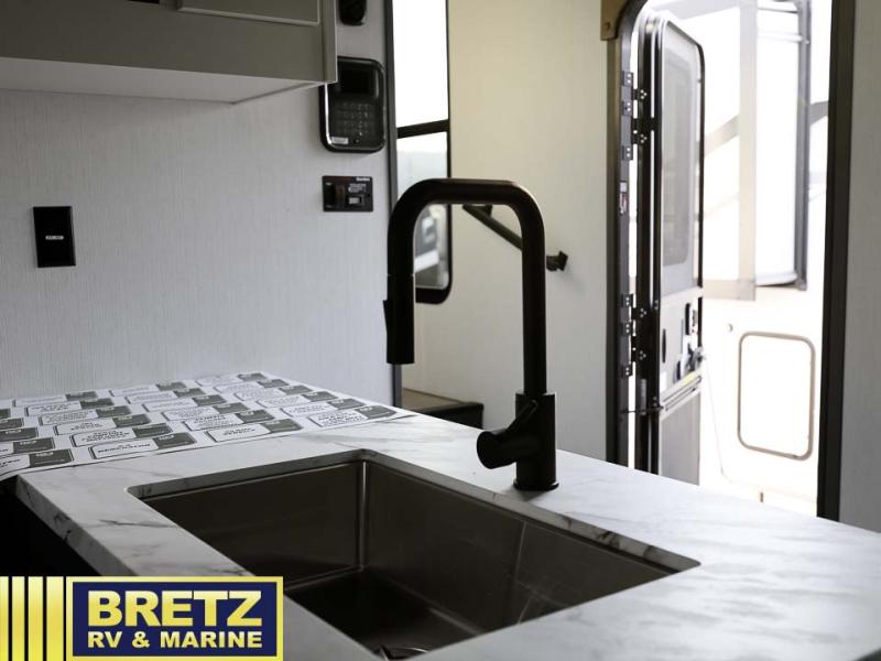 With any Accelerate toy hauler by KZ, you will enjoy solid construction materials, comfortable interiors, and convenient amenities! There are flip-up steps outside for added stability, along with a pass-thru storage for your hiking gear, fishing poles and more. Each fifth wheel and travel trailer includes a private bedroom with a queen bed slide, full bath and kitchen amenities, plus interior storage for personal belongings, food and more. The ramp door with a patio rail kit will make it easier than ever to load and unload your toys, and the drop-down bed with a ladder lets you convert the garage space to sleeping space at night!