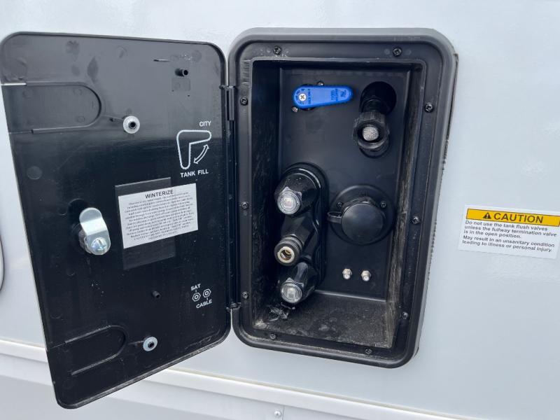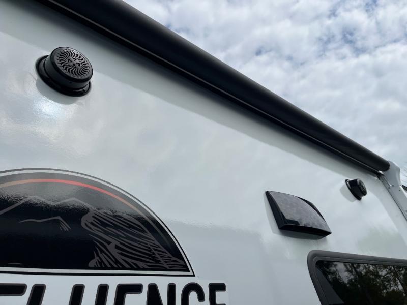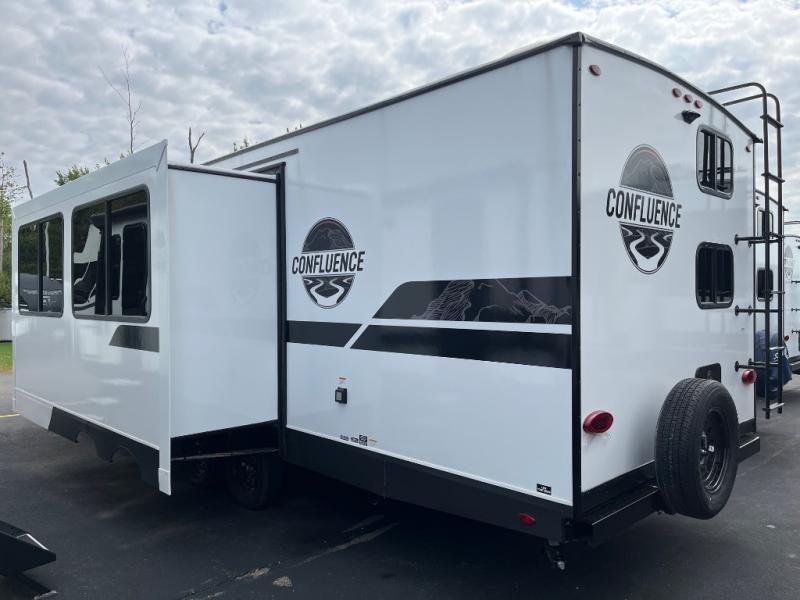 With any Confluence travel trailer by KZ you will find a white exterior fiberglass that is not only eye-catching, but easy to keep clean as well. The protective front diamond plate will help protect your trailer from rock and debris on the way to the campground, and the four stabilizer jacks will make for easy set-up once you arrive. Each model includes the Climate Package which features a heated, insulated, and enclosed underbelly with 12V heat pads and enclosed dump valves so you can camp well into the colder months. These pet-friendly models include a leash latch that will also double as a beverage opener, and there is an outside shower to fill the dogs water bowl. You will also enjoy the multi-media entertainment system with a DVD player, two 6.5" interior speakers for those rainy days. Start a new adventure today in a Confluence trailer trailer!