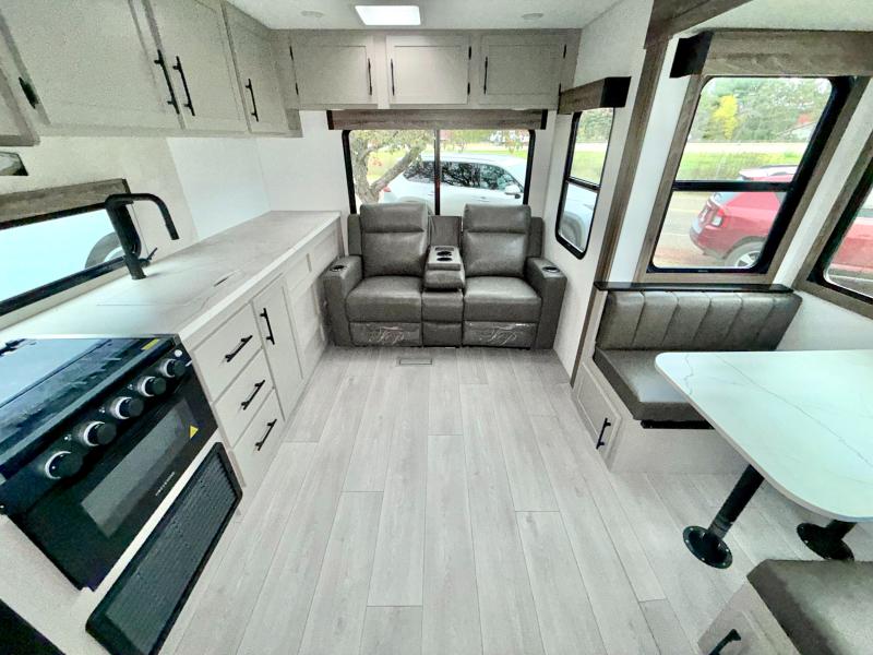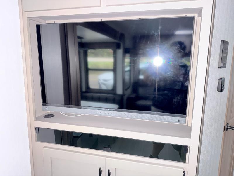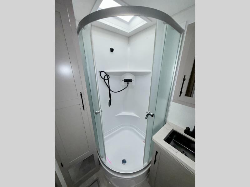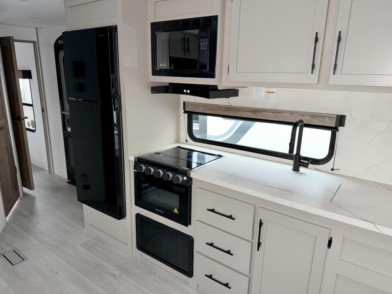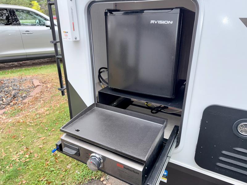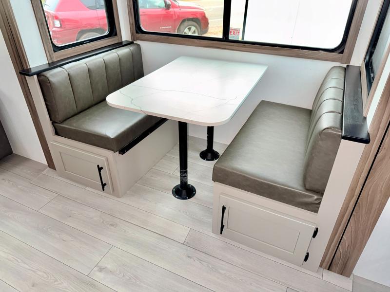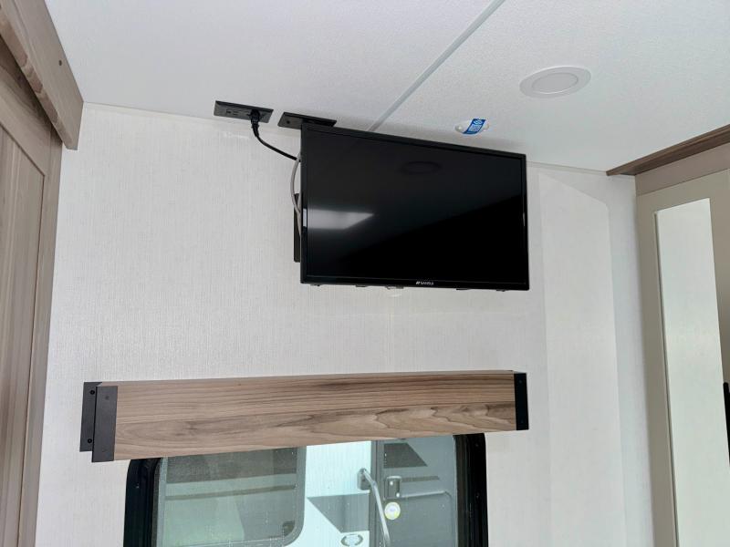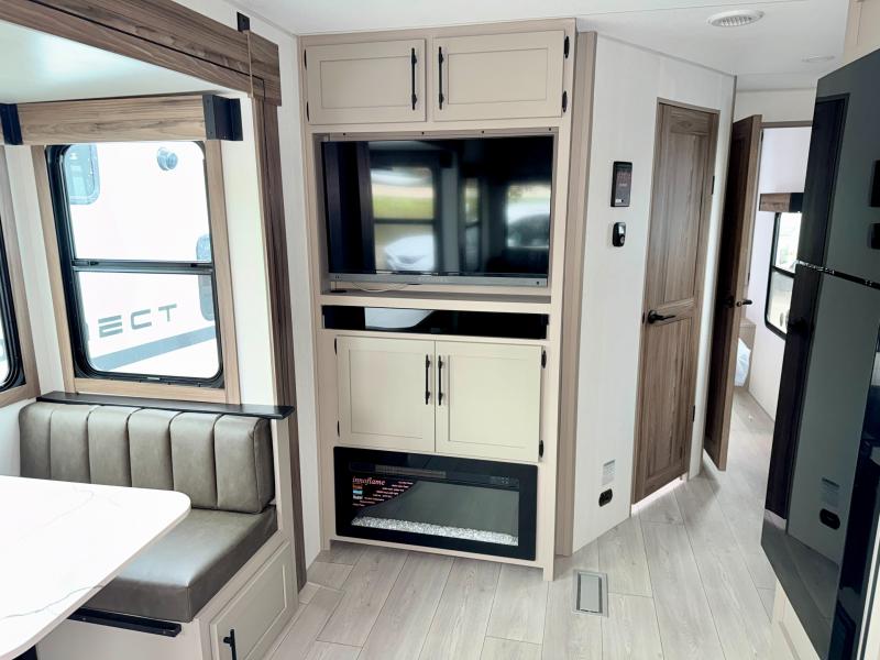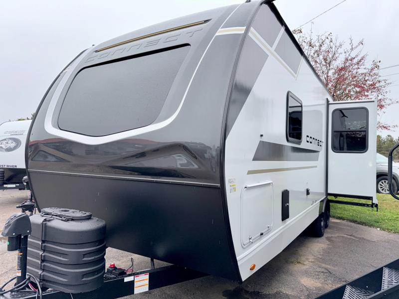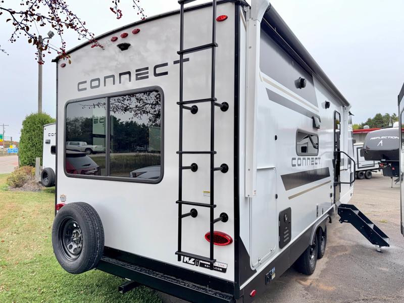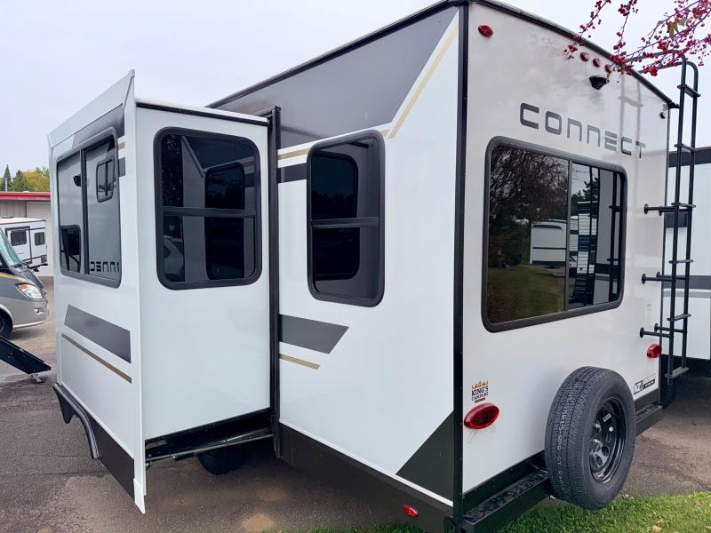 Hitch up this Connect travel trailer and head out for a fabulous weekend away! You will enjoy added space in the living area because of the single slide that holds the booth dinette, and another convenient feature is the dual-entry bathroom that can be accessed from the main hallway or the bedroom. You will be quite surprised to find a king-size bed inside the bedroom, along with dual wardrobes and a TV mount if you want to add a television. A pass-through storage on the exterior allows you to bring along extra gear, and the interior is kept cozy on chilly fall evenings with the 34" fireplace.
