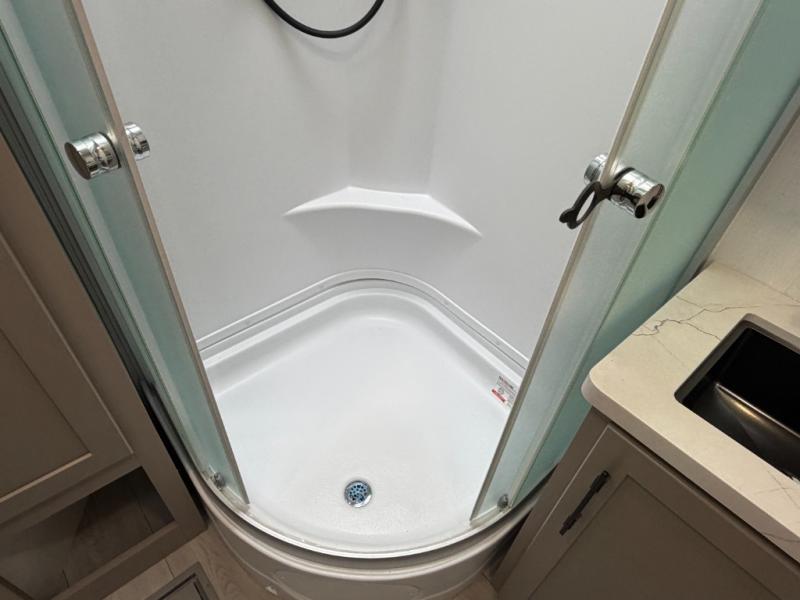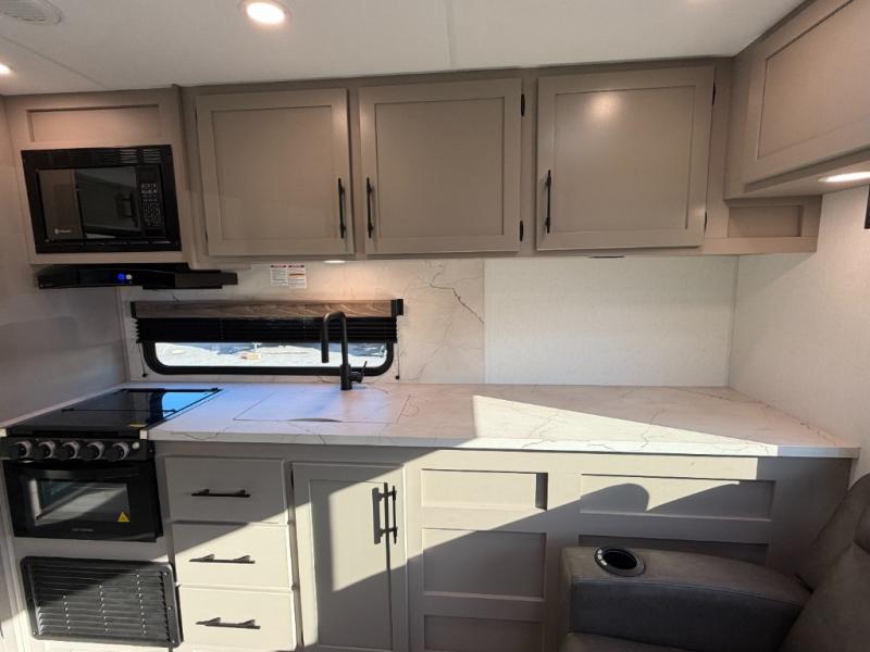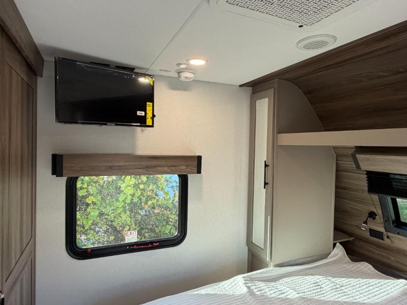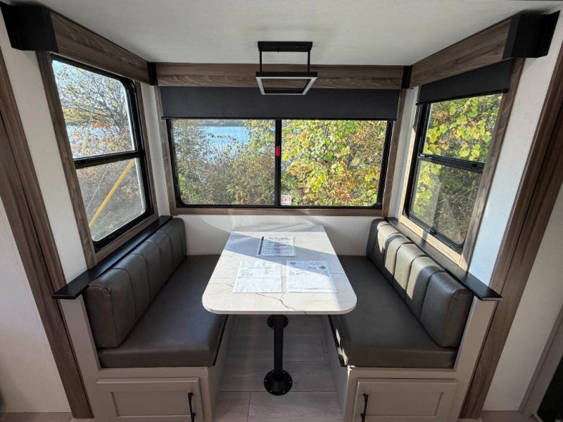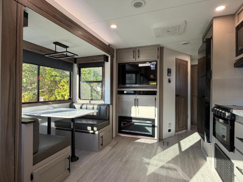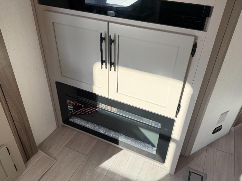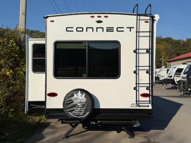 Hitch up this Connect travel trailer and head out for a fabulous weekend away! You will enjoy added space in the living area because of the single slide that holds the booth dinette, and another convenient feature is the dual-entry bathroom that can be accessed from the main hallway or the bedroom. You will be quite surprised to find a king-size bed inside the bedroom, along with dual wardrobes and a TV mount if you want to add a television. A pass-through storage on the exterior allows you to bring along extra gear, and the interior is kept cozy on chilly fall evenings with the 34" fireplace.
