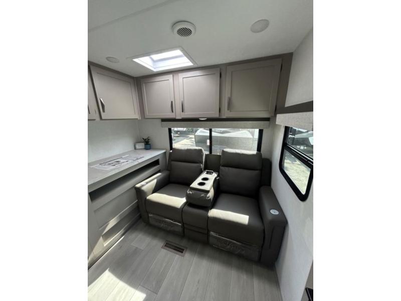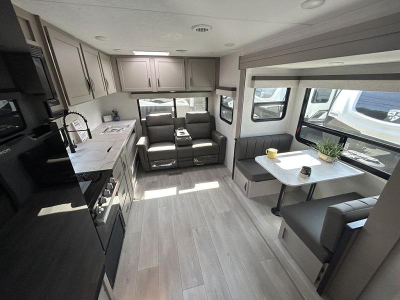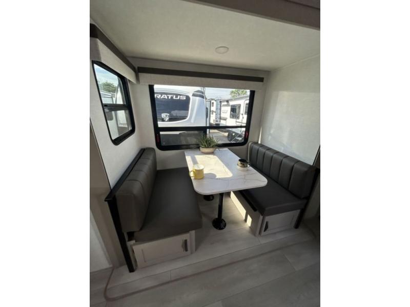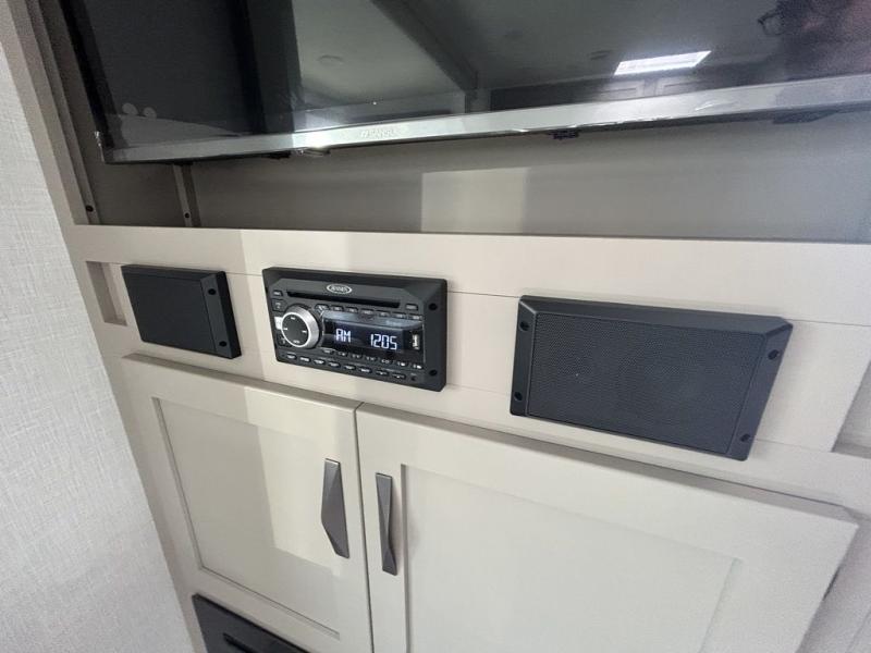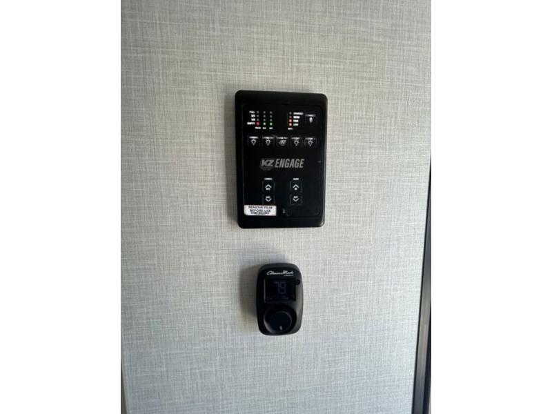 The KZ Connect travel trailer comes with an RV Airflow System which optimizes the airflow for your air conditioner. This improves performance, speeds up cooling times, and reduces noise in your trailer. Some of the other helpful features found on the Connect are the heated, insulated, and enclosed underbelly, the exterior docking station, the fiberglass front cap with front windshield, the 82" interior ceiling height, and the protective front diamond plate. There are some useful technological features, like the two LED motion-sensor lights, the HDMI and USB charger. The KZ Engage is powered by OneControl, and it monitors battery levels and controls slide rooms, the leveling system, the awning, inside/outside lighting, and the TPMS prep.