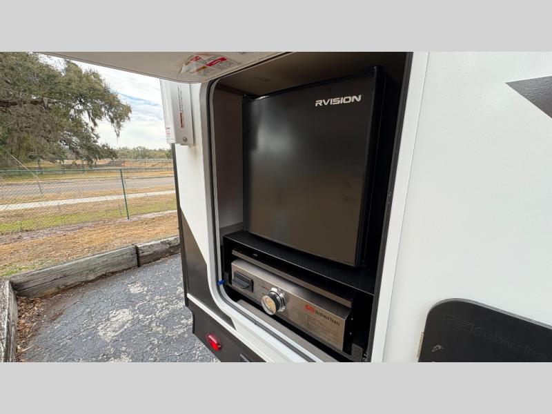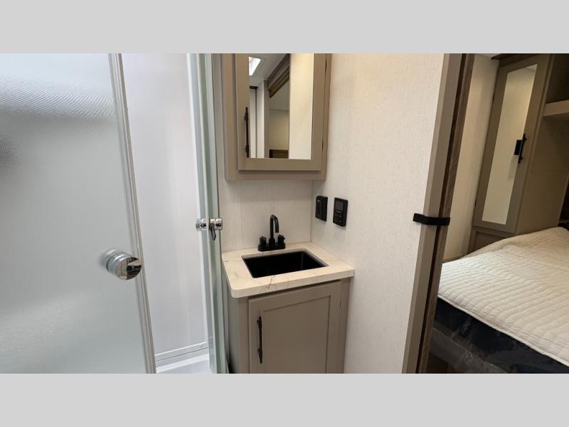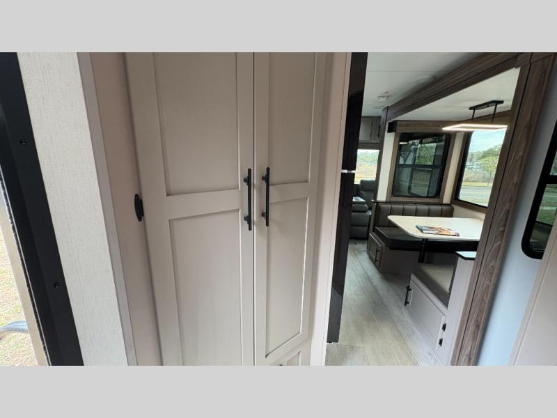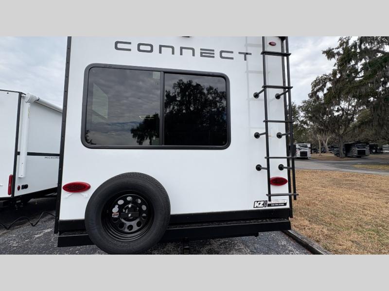 Hitch up this Connect travel trailer and head out for a fabulous weekend away! You will enjoy added space in the living area because of the single slide that holds the booth dinette, and another convenient feature is the dual-entry bathroom that can be accessed from the main hallway or the bedroom. You will be quite surprised to find a king-size bed inside the bedroom, along with dual wardrobes and a TV mount if you want to add a television. A pass-through storage on the exterior allows you to bring along extra gear, and the interior is kept cozy on chilly fall evenings with the 34" fireplace.