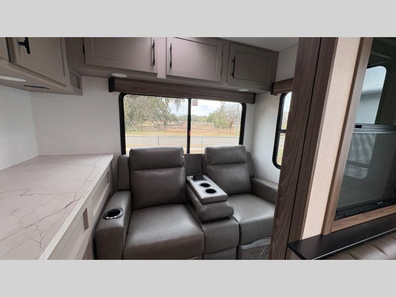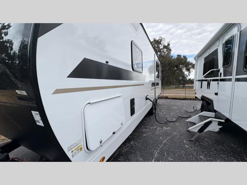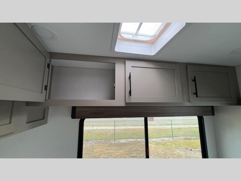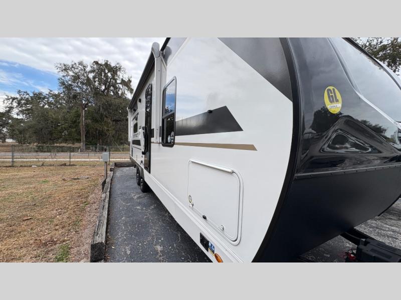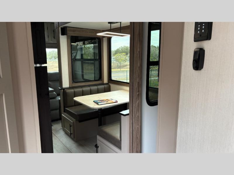 The KZ Connect travel trailer comes with an RV Airflow System which optimizes the airflow for your air conditioner. This improves performance, speeds up cooling times, and reduces noise in your trailer. Some of the other helpful features found on the Connect are the heated, insulated, and enclosed underbelly, the exterior docking station, the fiberglass front cap with front windshield, the 82" interior ceiling height, and the protective front diamond plate. There are some useful technological features, like the two LED motion-sensor lights, the HDMI and USB charger. The KZ Engage is powered by OneControl, and it monitors battery levels and controls slide rooms, the leveling system, the awning, inside/outside lighting, and the TPMS prep.