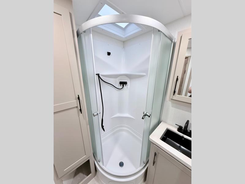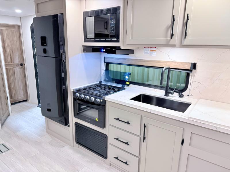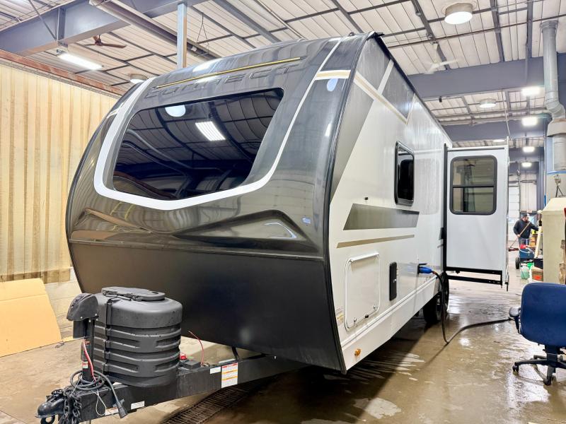 The KZ Connect travel trailer comes with an RV Airflow System which optimizes the airflow for your air conditioner. This improves performance, speeds up cooling times, and reduces noise in your trailer. Some of the other helpful features found on the Connect are the heated, insulated, and enclosed underbelly, the exterior docking station, the fiberglass front cap with front windshield, the 82" interior ceiling height, and the protective front diamond plate. There are some useful technological features, like the two LED motion-sensor lights, the HDMI and USB charger. The KZ Engage is powered by OneControl, and it monitors battery levels and controls slide rooms, the leveling system, the awning, inside/outside lighting, and the TPMS prep.
