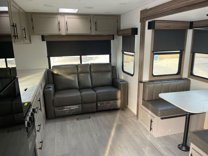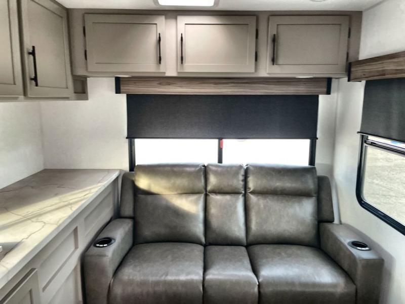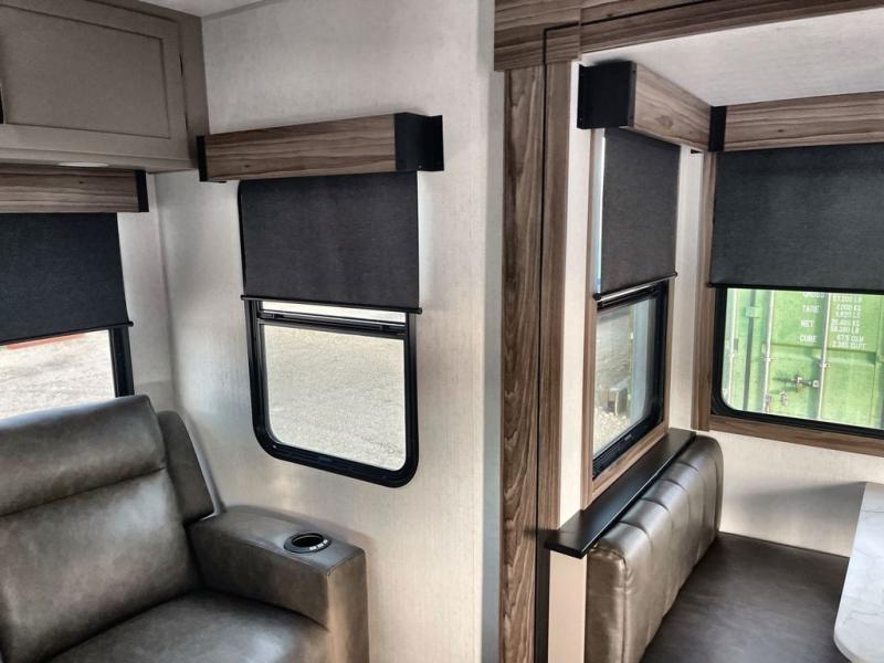 The KZ Connect travel trailer comes with an RV Airflow System which optimizes the airflow for your air conditioner. This improves performance, speeds up cooling times, and reduces noise in your trailer. Some of the other helpful features found on the Connect are the heated, insulated, and enclosed underbelly, the exterior docking station, the fiberglass front cap with front windshield, the 82" interior ceiling height, and the protective front diamond plate. There are some useful technological features, like the two LED motion-sensor lights, the HDMI and USB charger. The KZ Engage is powered by OneControl, and it monitors battery levels and controls slide rooms, the leveling system, the awning, inside/outside lighting, and the TPMS prep.