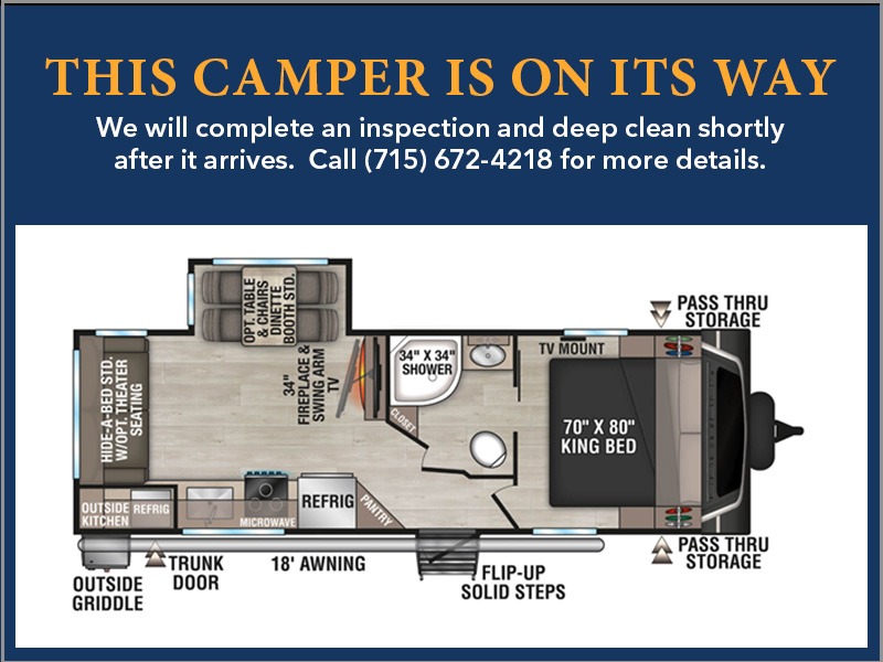 Hitch up this Connect travel trailer and head out for a fabulous weekend away! You will enjoy added space in the living area because of the single slide that holds the booth dinette, and another convenient feature is the dual-entry bathroom that can be accessed from the main hallway or the bedroom. You will be quite surprised to find a king-size bed inside the bedroom, along with dual wardrobes and a TV mount if you want to add a television. A pass-through storage on the exterior allows you to bring along extra gear, and the interior is kept cozy on chilly fall evenings with the 34" fireplace.