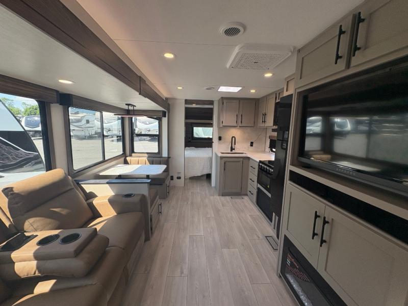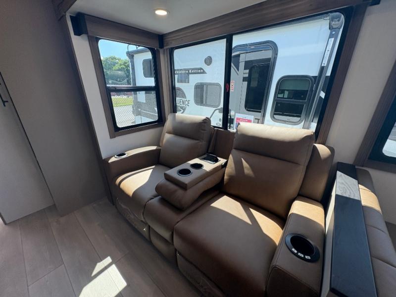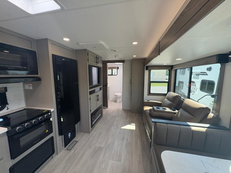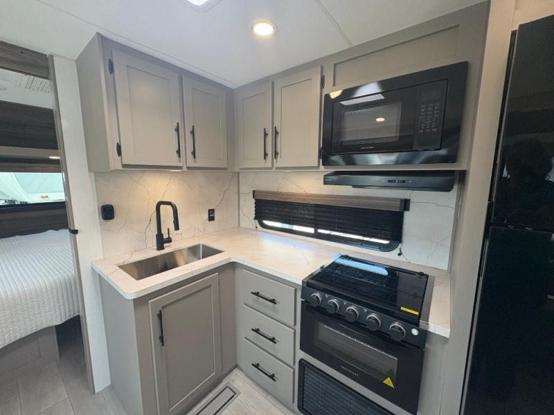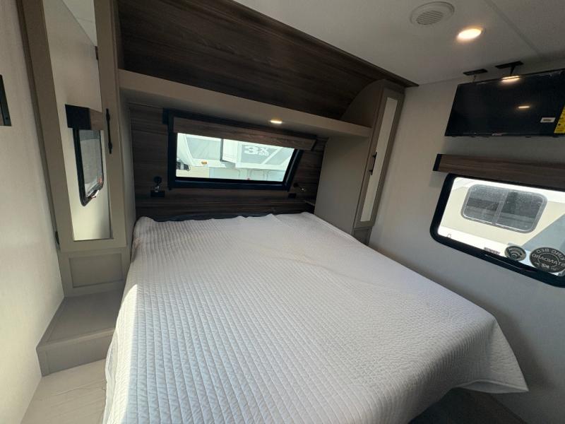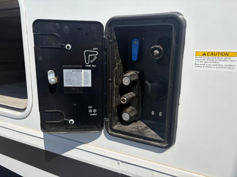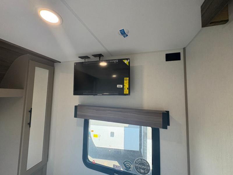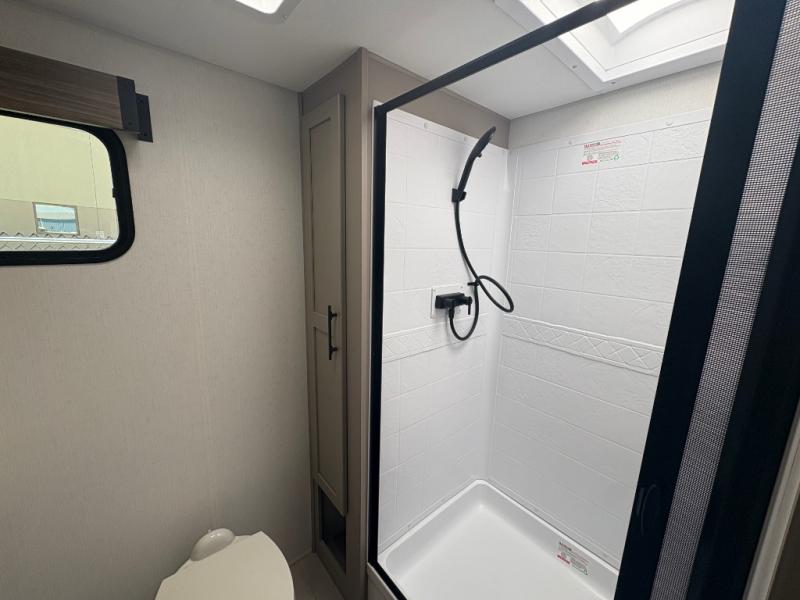 Your needs will be met and your desires will be fulfilled with this Connect travel trailer! Probably the thing you miss most when you camp is your comfortable bed back at home, and that's exactly why this trailer comes with a Serta Comfort foam king mattress in the private bedroom. The other thing you are prone to miss is your bathroom, and the full rear bathroom on this trailer is an excellent replacement with its 30" x 36" shower, skylight, linen closet, MaxxAir vent, porcelain foot-flush toilet, and dual sink vanity. Sit back on the hide-a-bed sofa and enjoy a night of relaxation in front of the LED TV and 34" fireplace. You can even grab a couple of drinks from the 10 cu. ft. 12V refrigerator, snacks from the walk-in pantry with coat hooks, or you can make it a fun evening by playing a game together at the booth dinette.