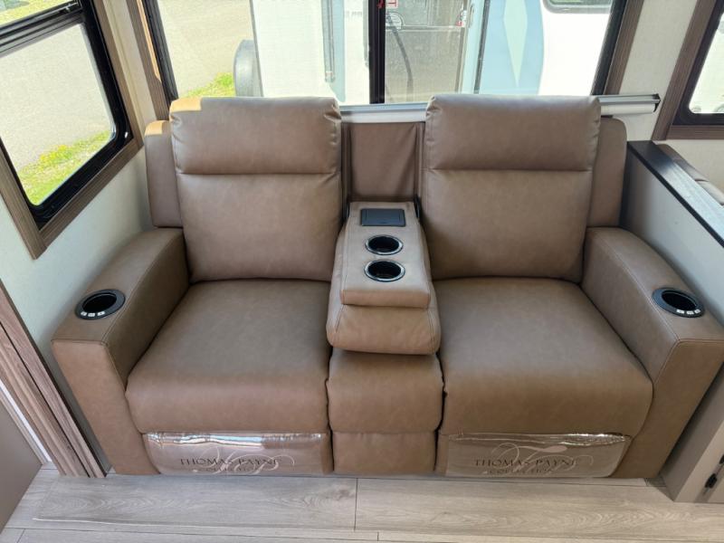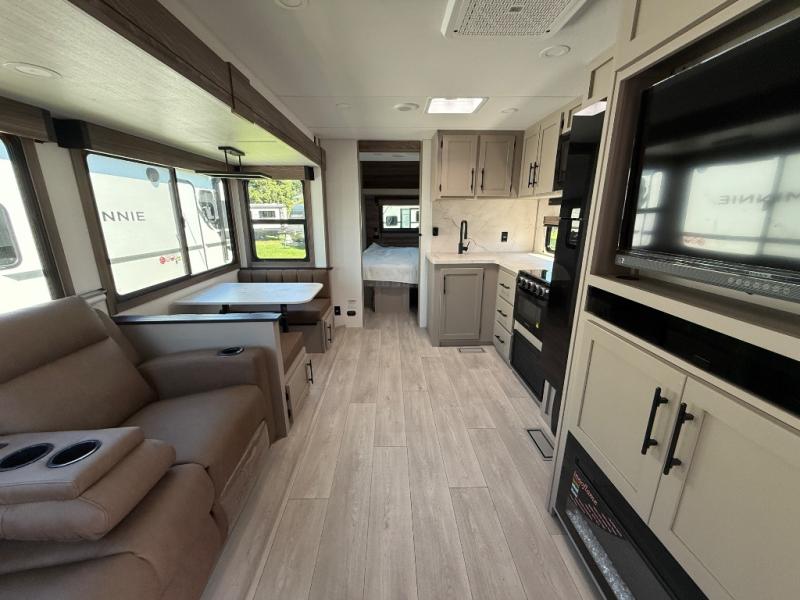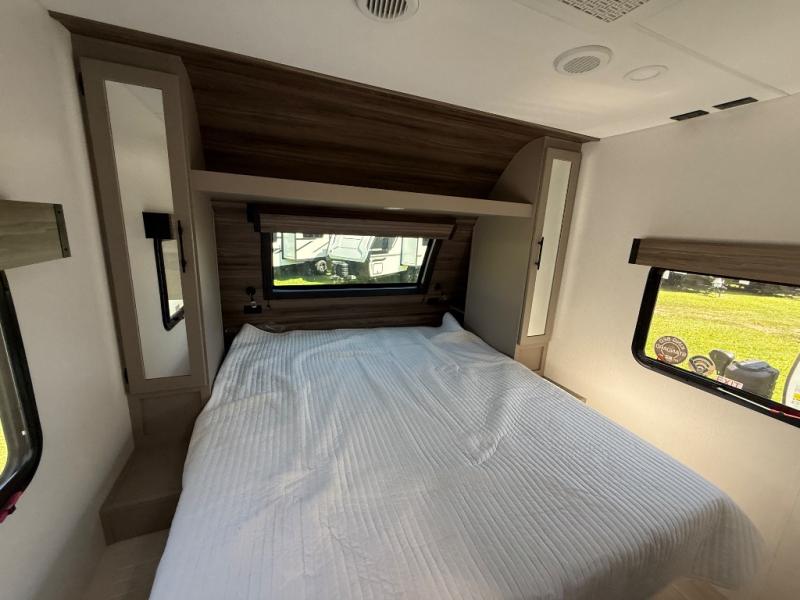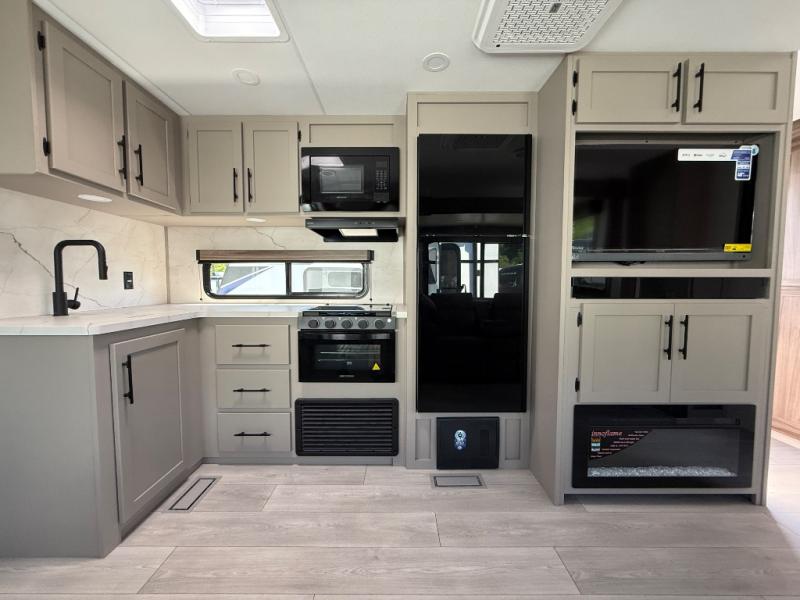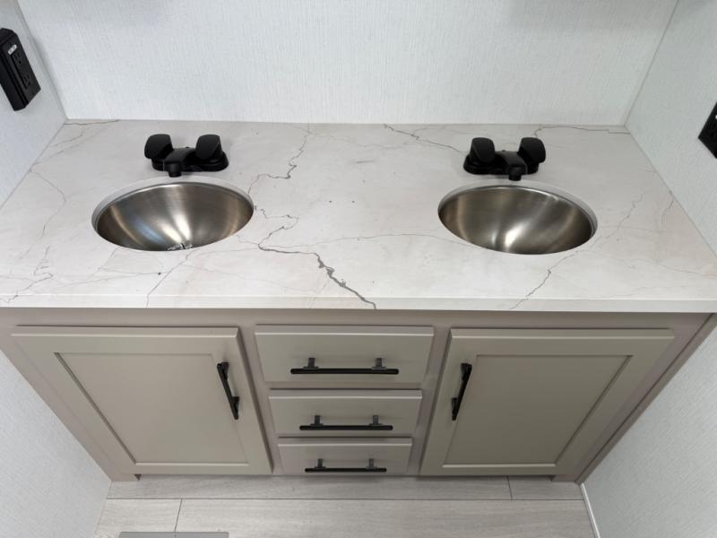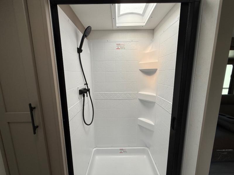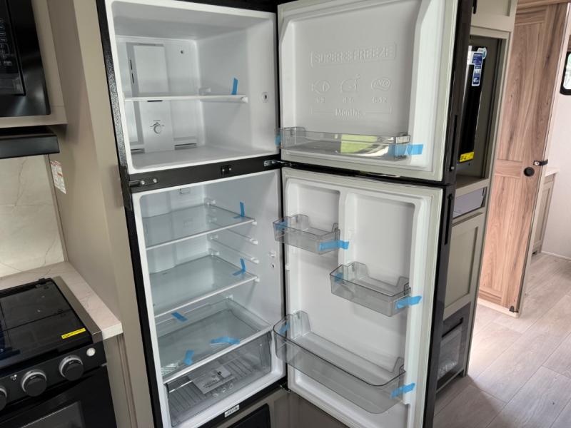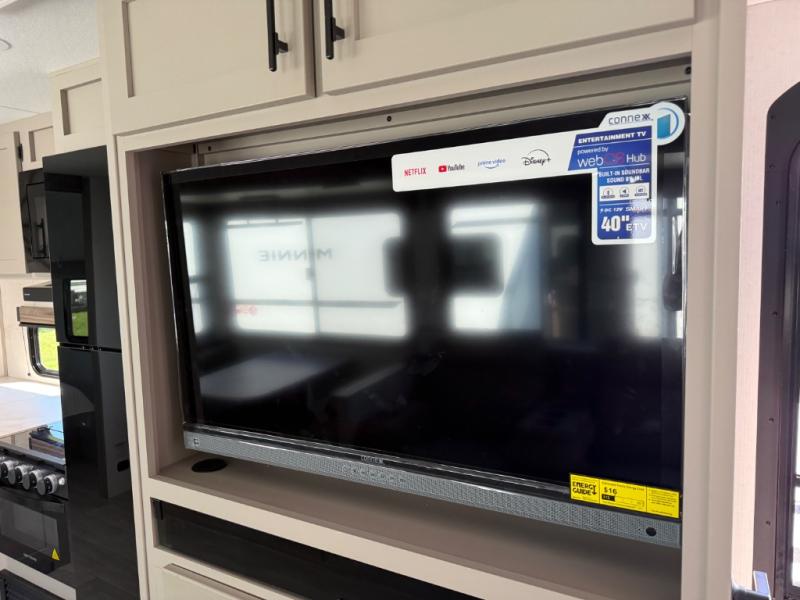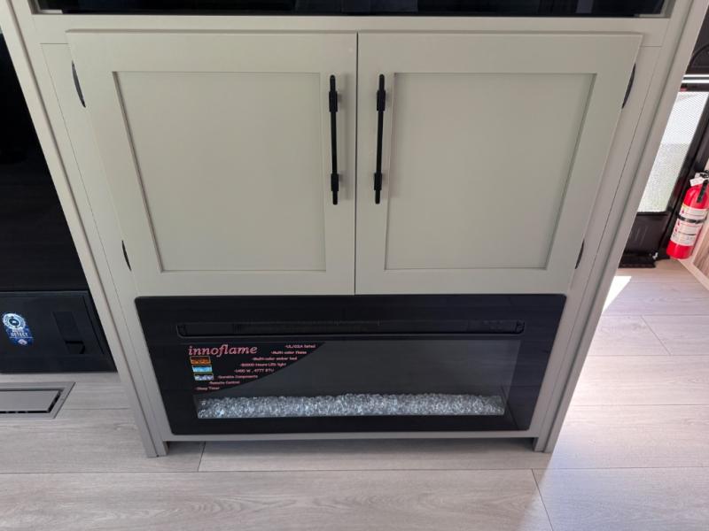 Your needs will be met and your desires will be fulfilled with this Connect travel trailer! Probably the thing you miss most when you camp is your comfortable bed back at home, and that's exactly why this trailer comes with a Serta Comfort foam king mattress in the private bedroom. The other thing you are prone to miss is your bathroom, and the full rear bathroom on this trailer is an excellent replacement with its 30" x 36" shower, skylight, linen closet, MaxxAir vent, porcelain foot-flush toilet, and dual sink vanity. Sit back on the hide-a-bed sofa and enjoy a night of relaxation in front of the LED TV and 34" fireplace. You can even grab a couple of drinks from the 10 cu. ft. 12V refrigerator, snacks from the walk-in pantry with coat hooks, or you can make it a fun evening by playing a game together at the booth dinette.