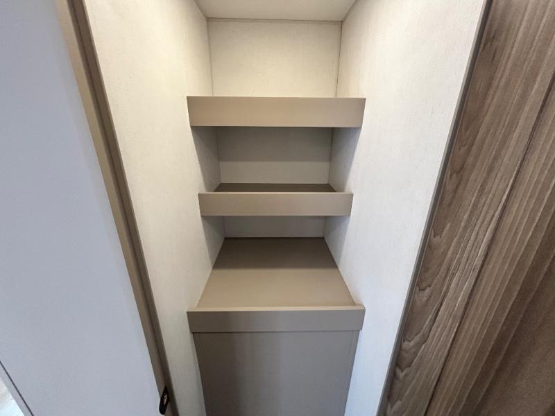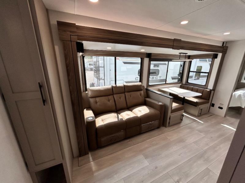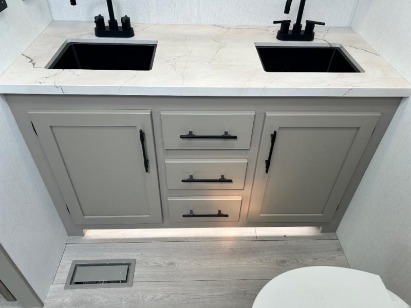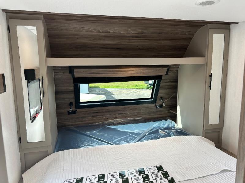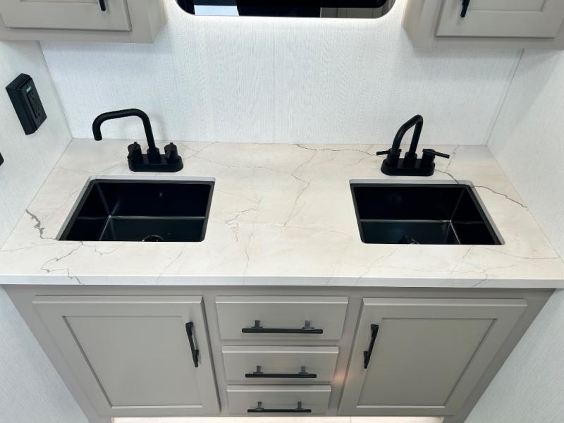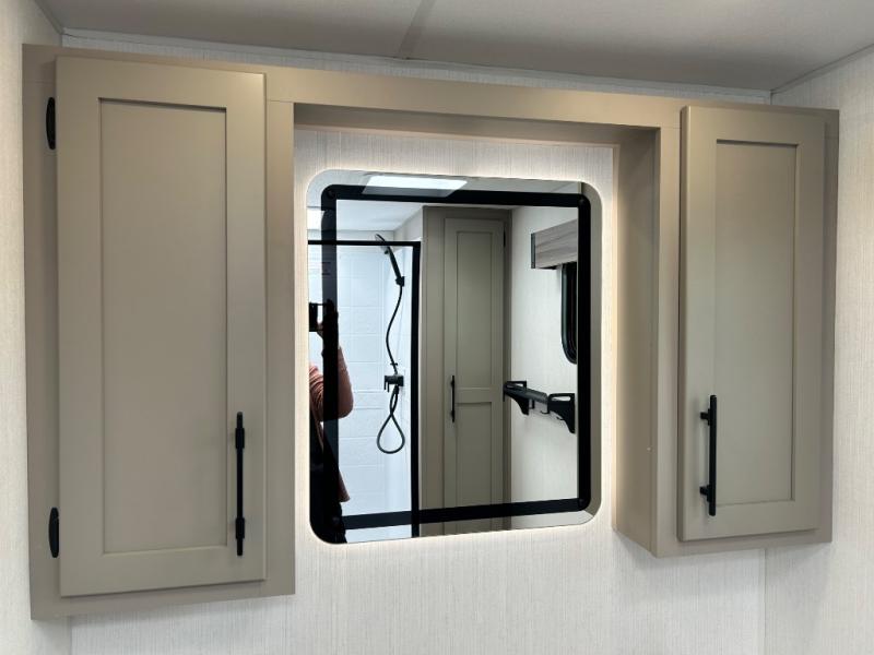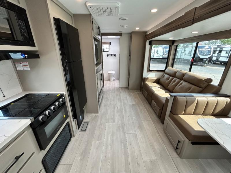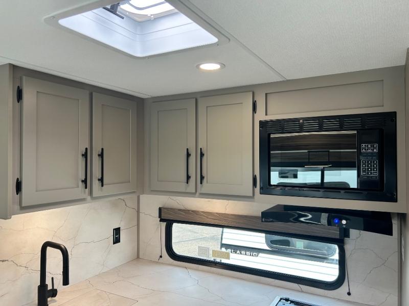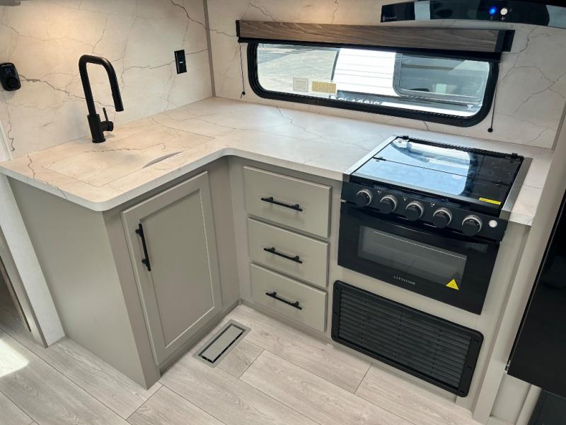 Your needs will be met and your desires will be fulfilled with this Connect travel trailer! Probably the thing you miss most when you camp is your comfortable bed back at home, and that's exactly why this trailer comes with a Serta Comfort foam king mattress in the private bedroom. The other thing you are prone to miss is your bathroom, and the full rear bathroom on this trailer is an excellent replacement with its 30" x 36" shower, skylight, linen closet, MaxxAir vent, porcelain foot-flush toilet, and dual sink vanity. Sit back on the hide-a-bed sofa and enjoy a night of relaxation in front of the LED TV and 34" fireplace. You can even grab a couple of drinks from the 10 cu. ft. 12V refrigerator, snacks from the walk-in pantry with coat hooks, or you can make it a fun evening by playing a game together at the booth dinette.