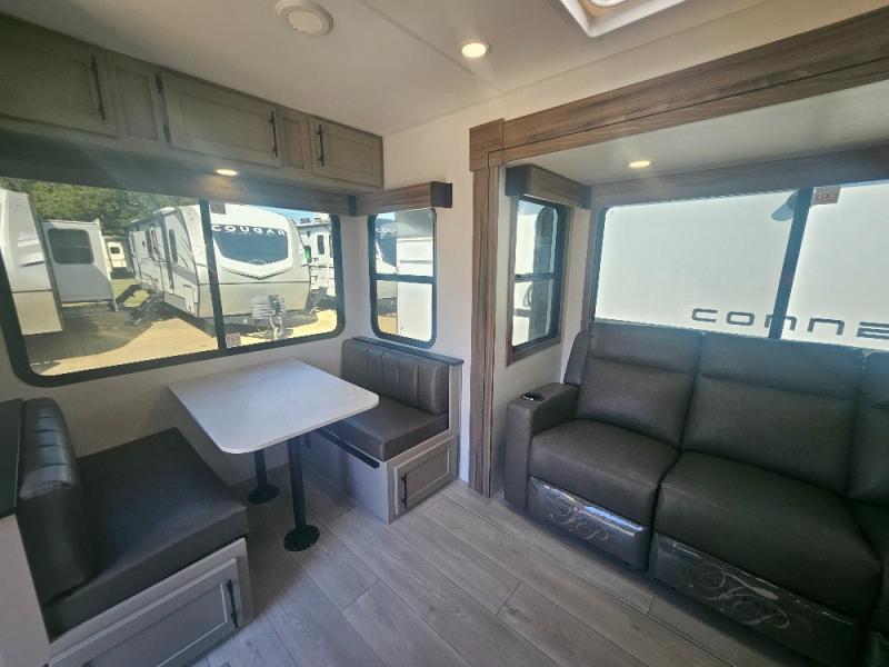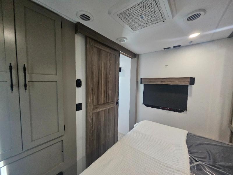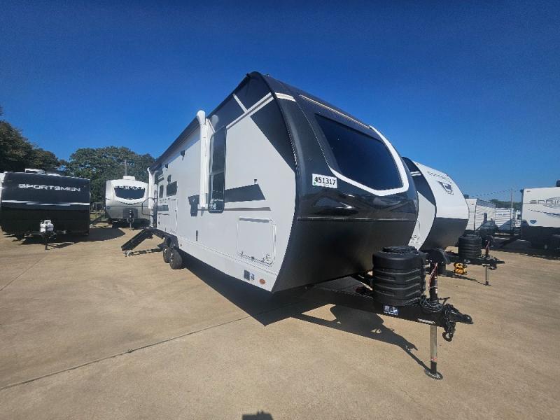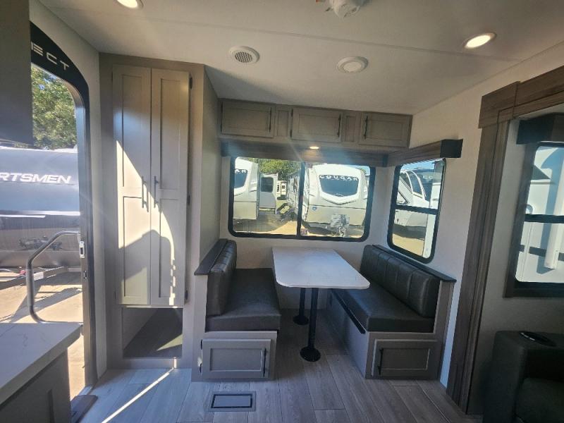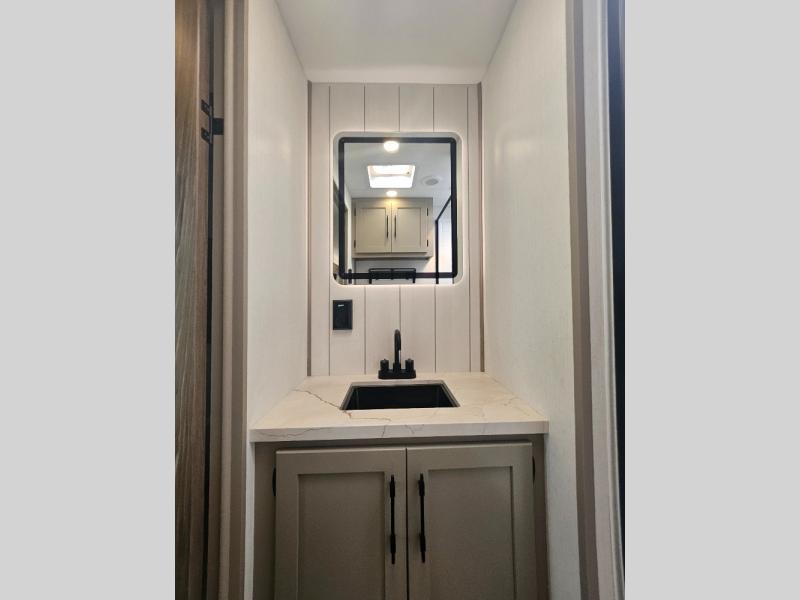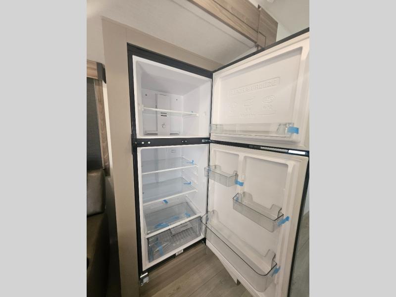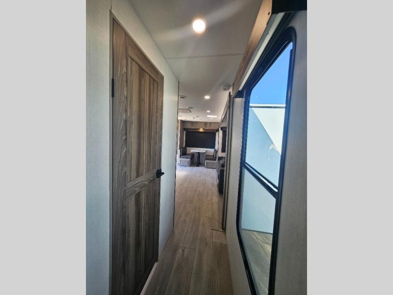 This is the perfect couple's travel trailer! You will enjoy the added space in the living area because of the slide that holds the theater seating with USB charging ports to charge your phone while you recharge relaxing! Another convenient feature is the swing arm TV to adjust better to view your favorite show. You will be quite surprised to find a king-size bed in the front bedroom, along with dual closets with clothes rods to keep your things organized. A pass-through storage on the exterior allows you to bring along extra gear, and the interior is kept cozy on chilly fall evenings with the 34" fireplace. Enjoy some quality time even outdoors when traveling under the 20' awning with LED lights.