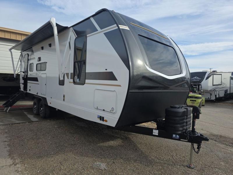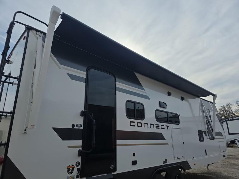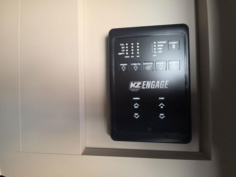 The KZ Connect travel trailer comes with an RV Airflow System which optimizes the airflow for your air conditioner. This improves performance, speeds up cooling times, and reduces noise in your trailer. Some of the other helpful features found on the Connect are the heated, insulated, and enclosed underbelly, the exterior docking station, the fiberglass front cap with front windshield, the 82" interior ceiling height, and the protective front diamond plate. There are some useful technological features, like the two LED motion-sensor lights, the HDMI and USB charger. The KZ Engage is powered by OneControl, and it monitors battery levels and controls slide rooms, the leveling system, the awning, inside/outside lighting, and the TPMS prep.