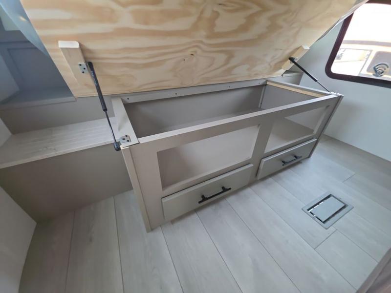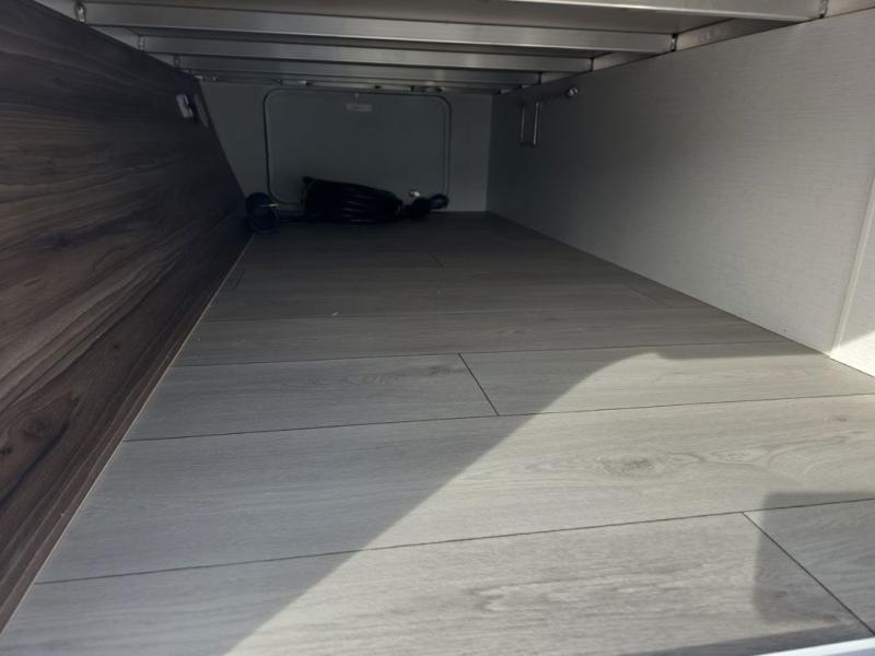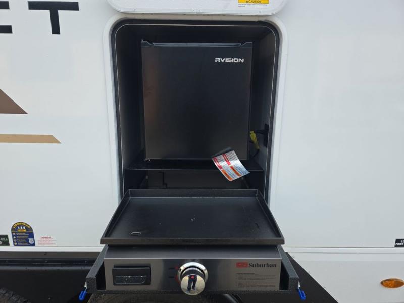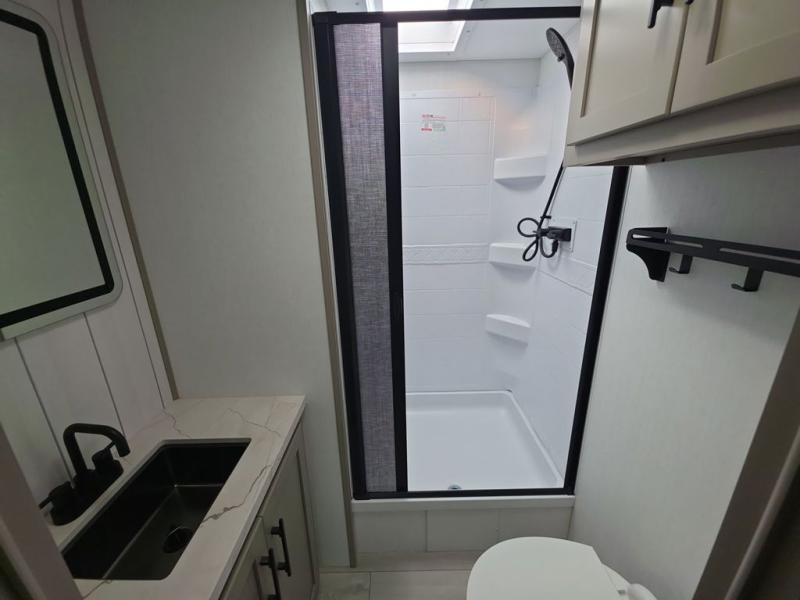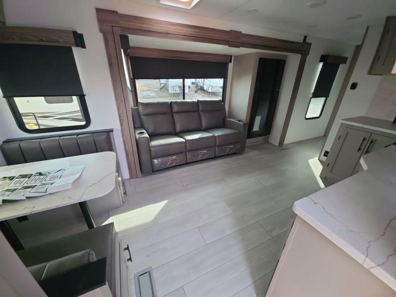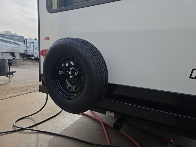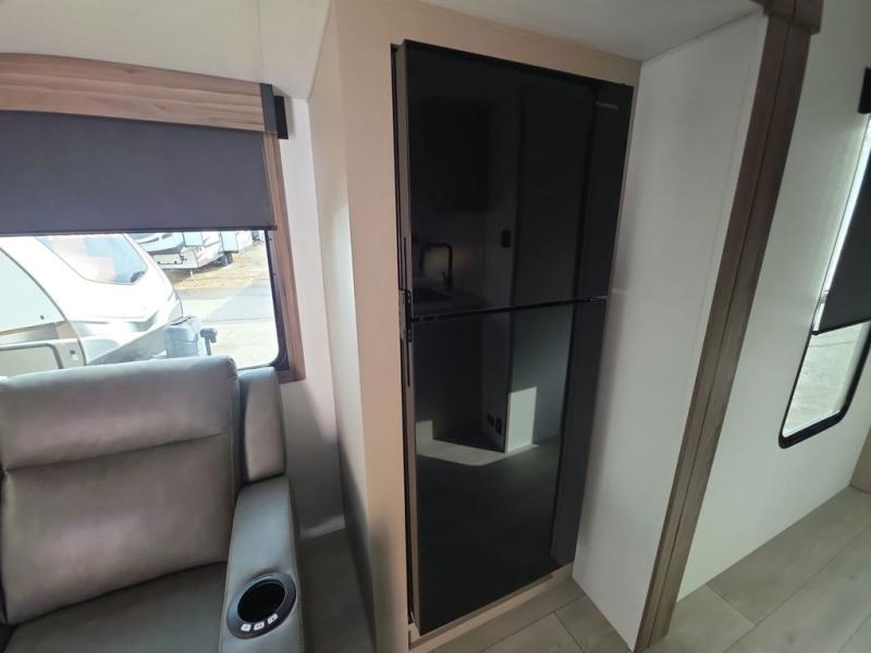 This is the perfect couple's travel trailer! You will enjoy the added space in the living area because of the slide that holds the theater seating with USB charging ports to charge your phone while you recharge relaxing! Another convenient feature is the swing arm TV to adjust better to view your favorite show. You will be quite surprised to find a king-size bed in the front bedroom, along with dual closets with clothes rods to keep your things organized. A pass-through storage on the exterior allows you to bring along extra gear, and the interior is kept cozy on chilly fall evenings with the 34" fireplace. Enjoy some quality time even outdoors when traveling under the 20' awning with LED lights.
