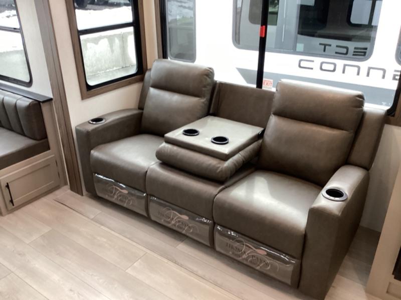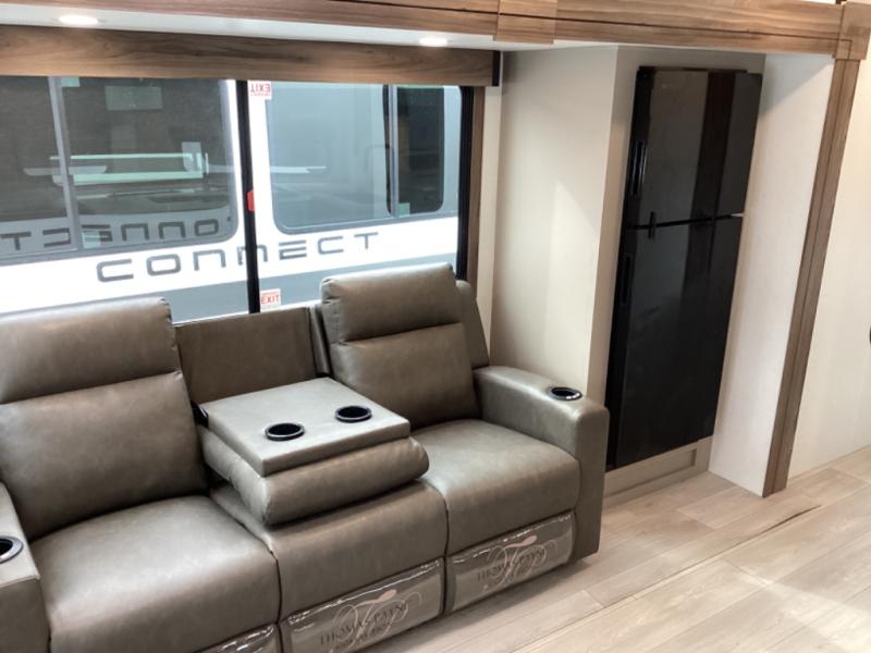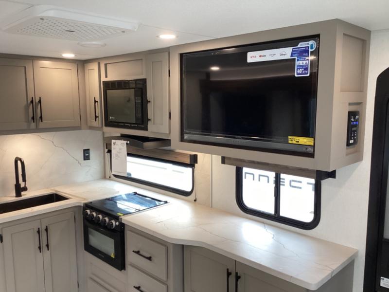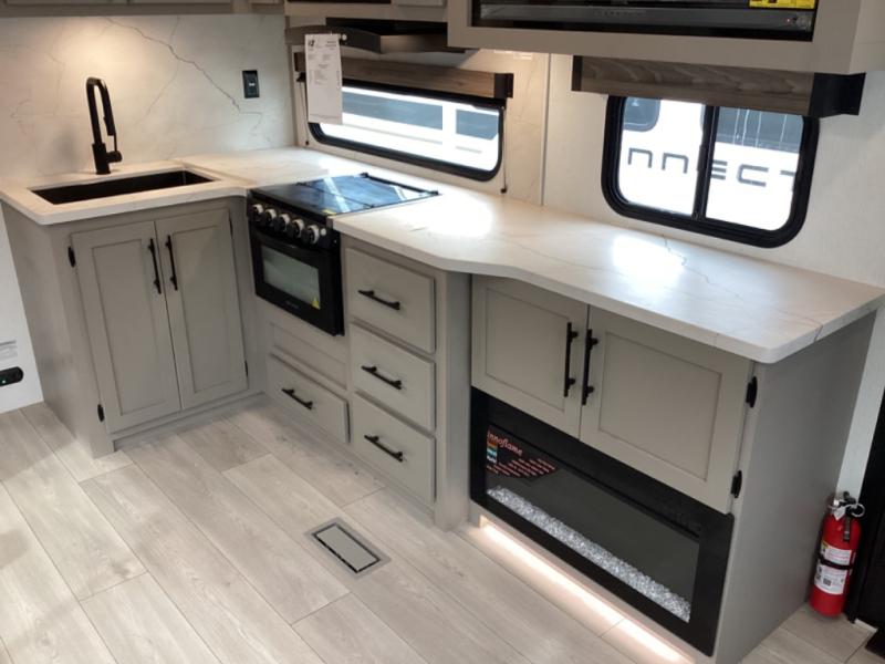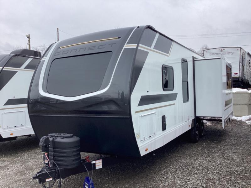 The KZ Connect travel trailer comes with an RV Airflow System which optimizes the airflow for your air conditioner. This improves performance, speeds up cooling times, and reduces noise in your trailer. Some of the other helpful features found on the Connect are the heated, insulated, and enclosed underbelly, the exterior docking station, the fiberglass front cap with front windshield, the 82" interior ceiling height, and the protective front diamond plate. There are some useful technological features, like the two LED motion-sensor lights, the HDMI and USB charger. The KZ Engage is powered by OneControl, and it monitors battery levels and controls slide rooms, the leveling system, the awning, inside/outside lighting, and the TPMS prep.