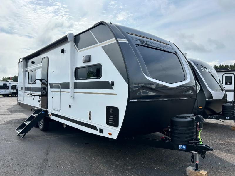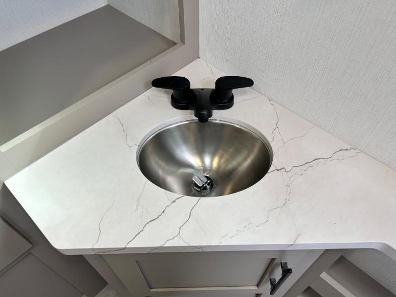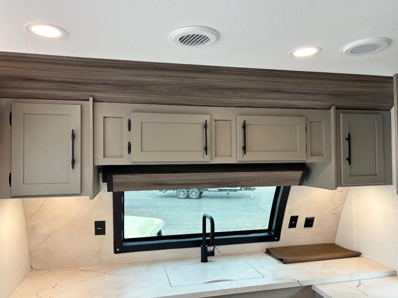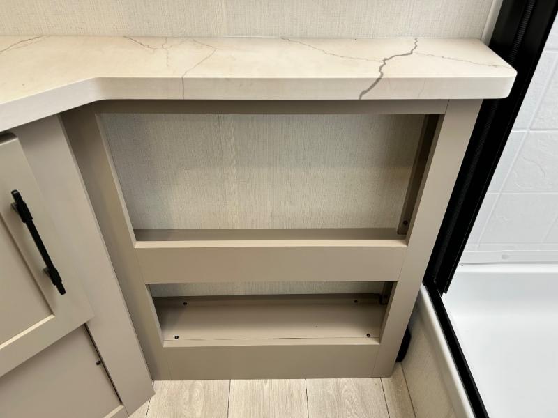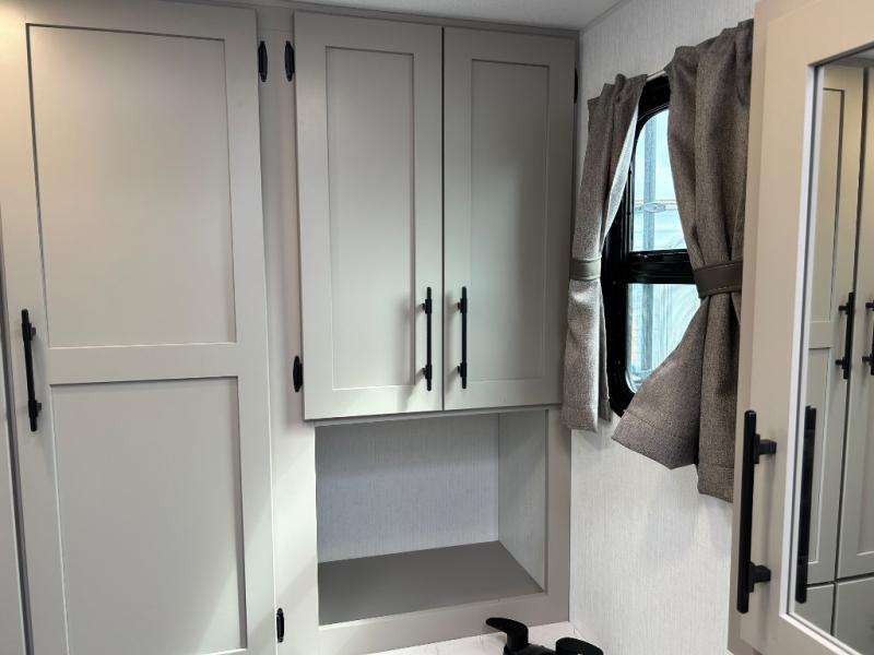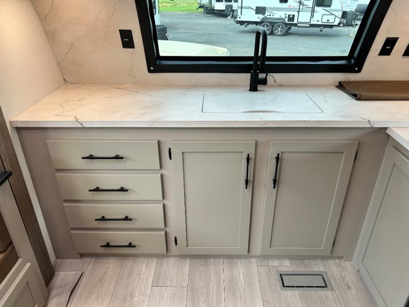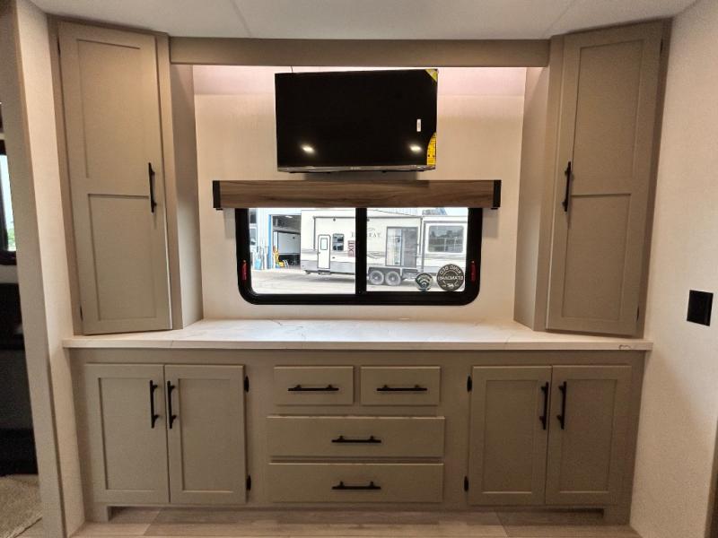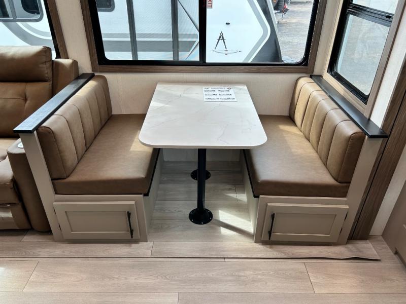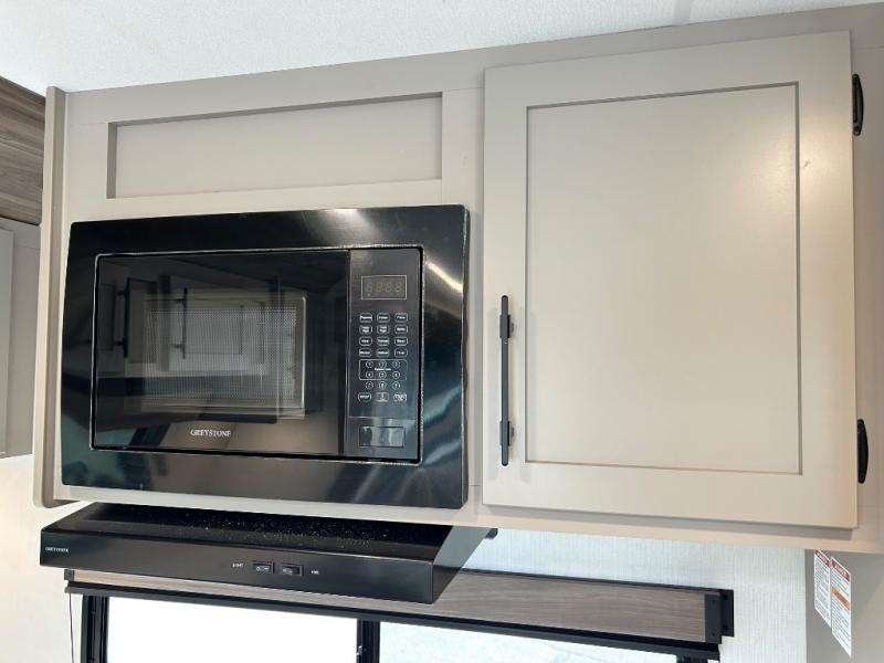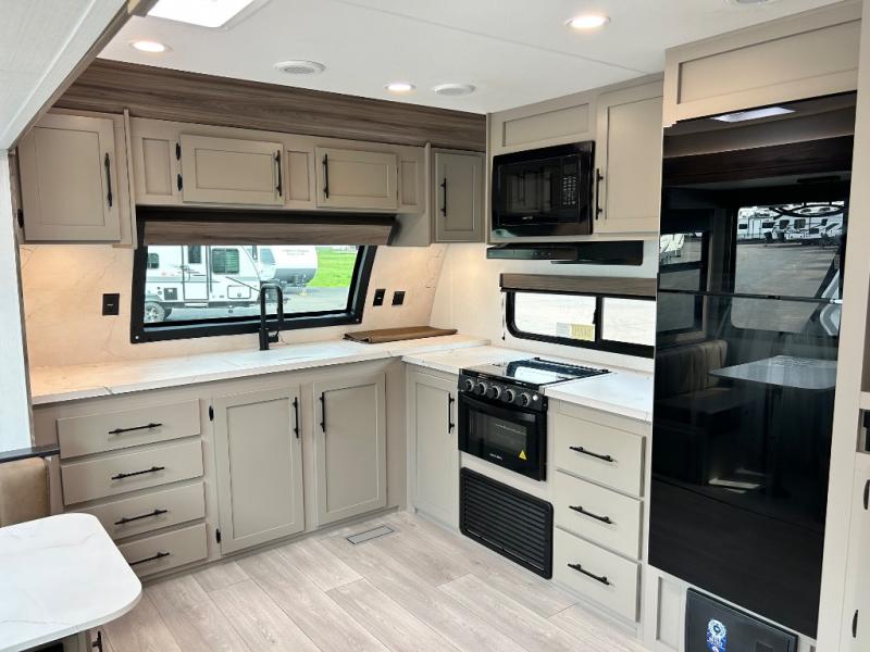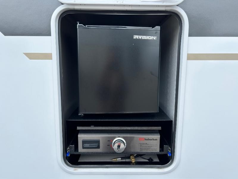 You can use this Connect travel trailer whenever you want to get away! You will remain comfortable each night sleeping in the master suite with a spacious full rear bath where you can freshen up each day. There is also a wardrobe with washer and dryer prep, plenty of counter space, and a wardrobe with outside storage for hiking gear. The front kitchen has ample countertop space for lots of extra space to chop veggies and prep meals, and the large slide in the main living area holds the booth dinette and hide-a-bed sofa. These pieces of furniture rest across from the 34" fireplace for a cozy evening with a cup of coffee, and there is a hidden pantry where you can grab snacks.
