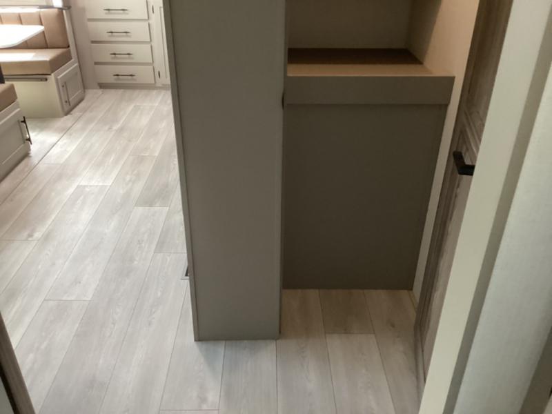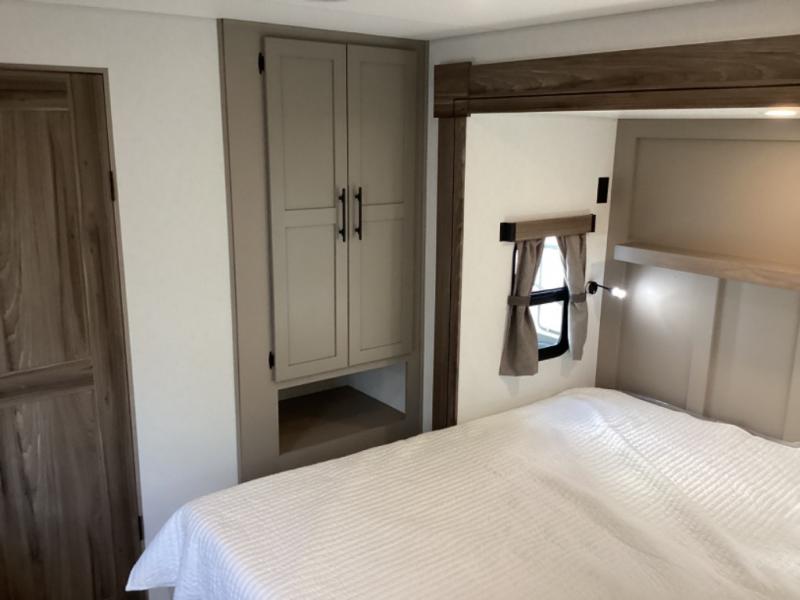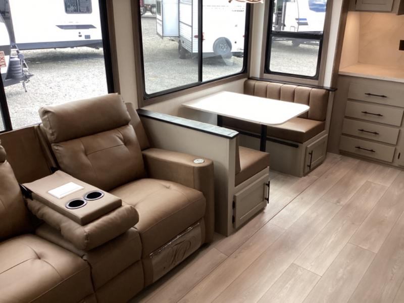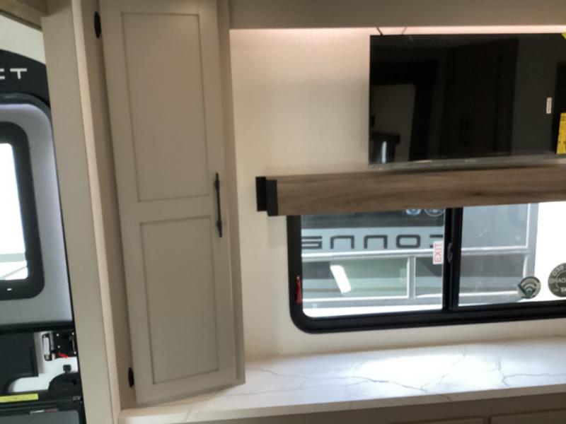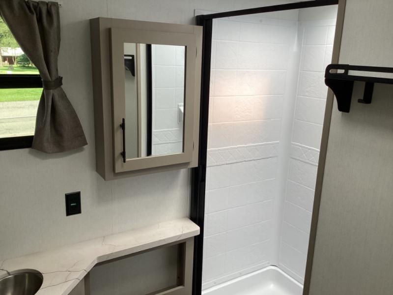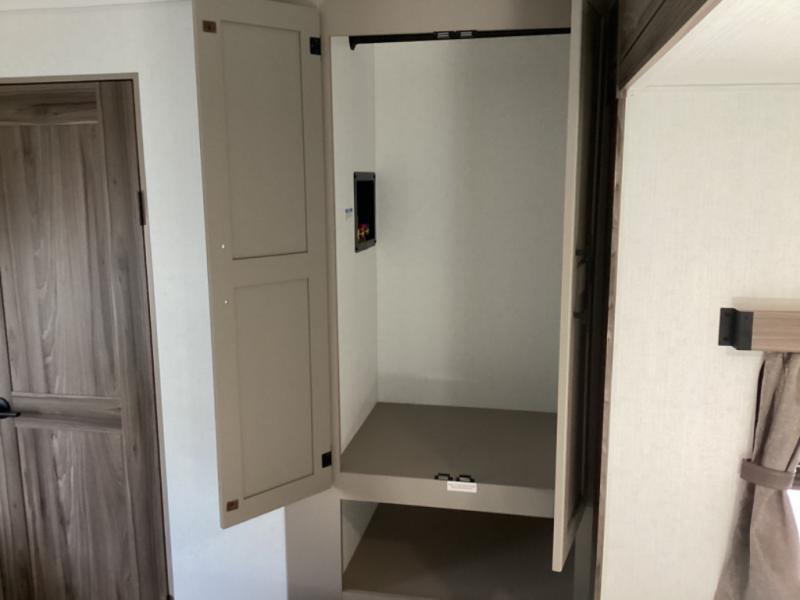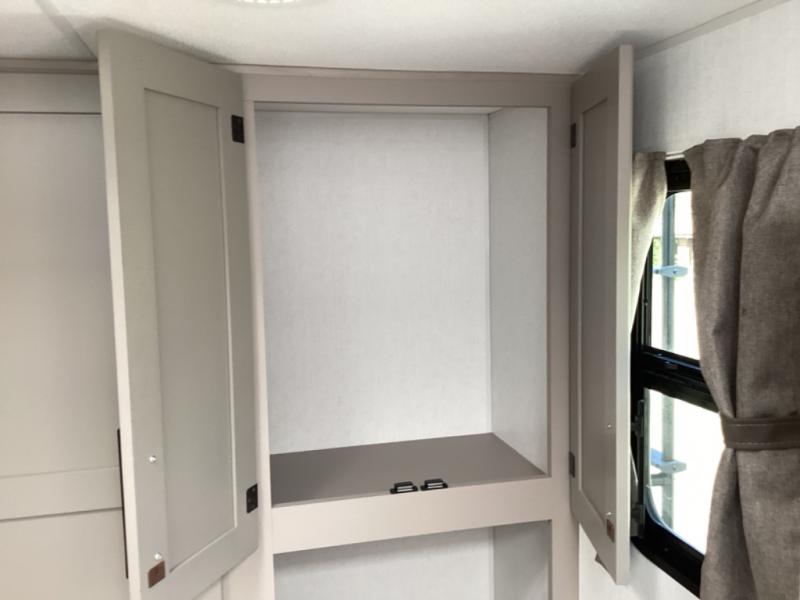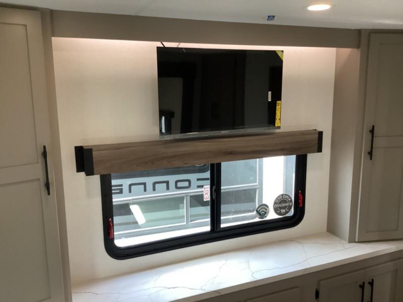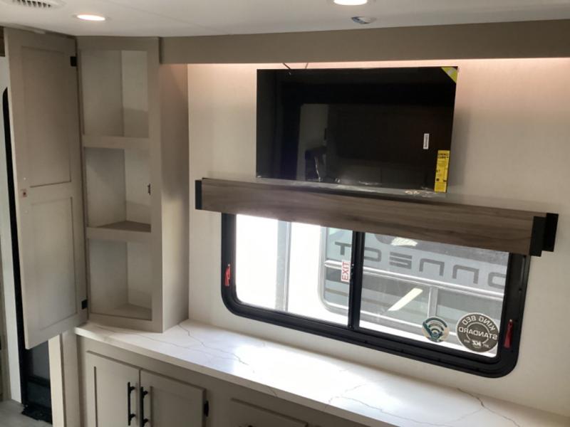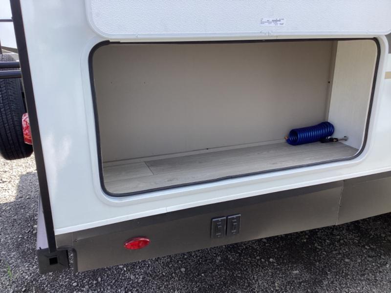You can use this Connect travel trailer whenever you want to get away! You will remain comfortable each night sleeping in the master suite with a spacious full rear bath where you can freshen up each day. There is also a wardrobe with washer and dryer prep, plenty of counter space, and a wardrobe with outside storage for hiking gear. The front kitchen has ample countertop space for lots of extra space to chop veggies and prep meals, and the large slide in the main living area holds the booth dinette and hide-a-bed sofa. These pieces of furniture rest across from the 34" fireplace for a cozy evening with a cup of coffee, and there is a hidden pantry where you can grab snacks.