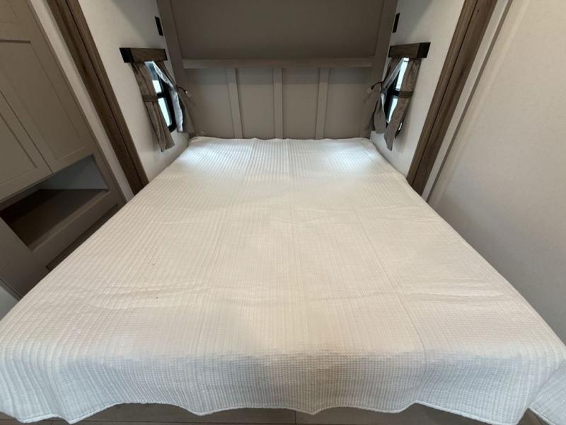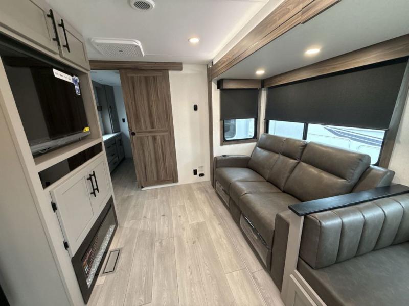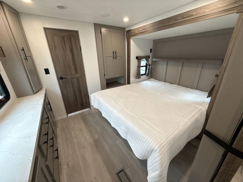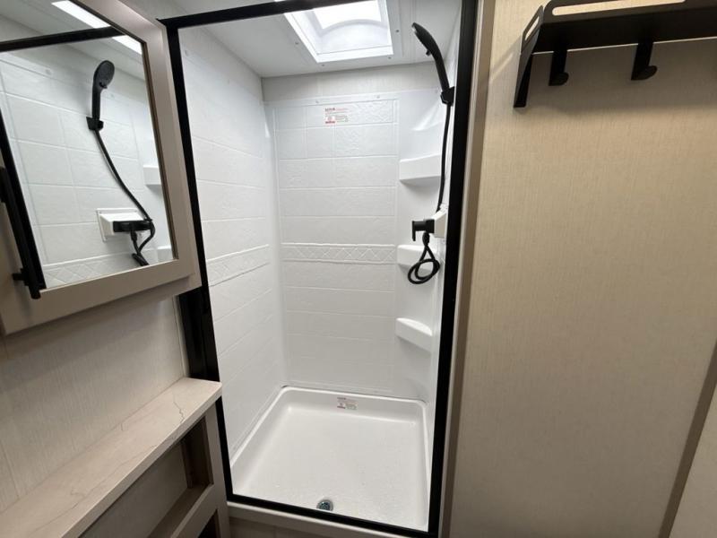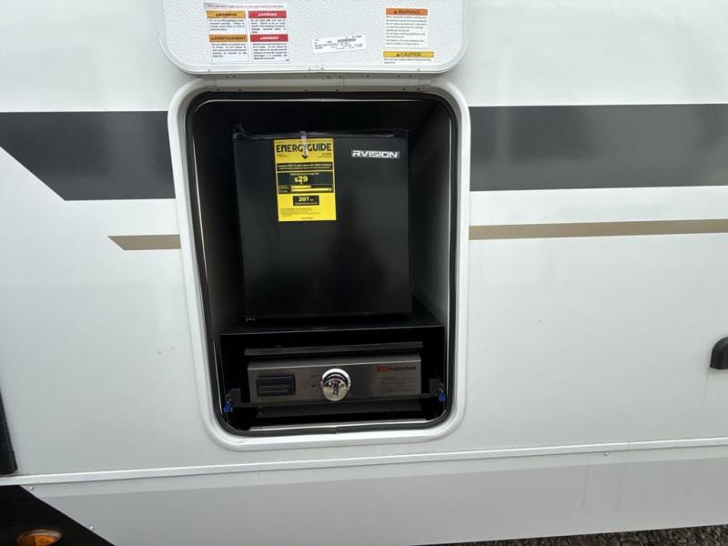 You can use this Connect travel trailer whenever you want to get away! You will remain comfortable each night sleeping in the master suite with a spacious full rear bath where you can freshen up each day. There is also a wardrobe with washer and dryer prep, plenty of counter space, and a wardrobe with outside storage for hiking gear. The front kitchen has ample countertop space for lots of extra space to chop veggies and prep meals, and the large slide in the main living area holds the booth dinette and hide-a-bed sofa. These pieces of furniture rest across from the 34" fireplace for a cozy evening with a cup of coffee, and there is a hidden pantry where you can grab snacks.
