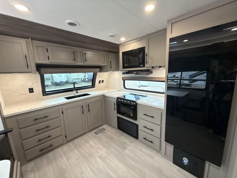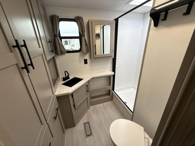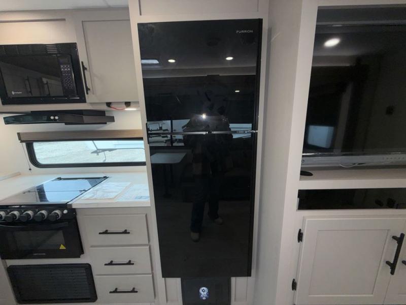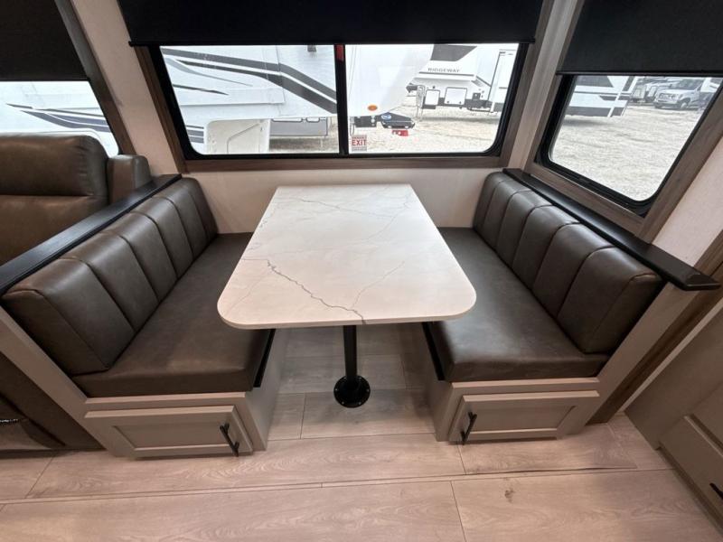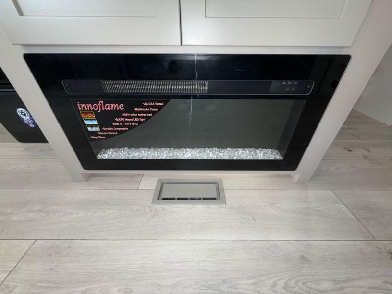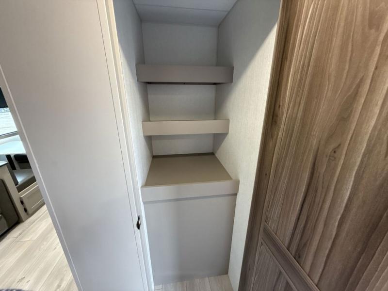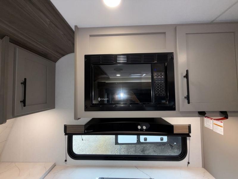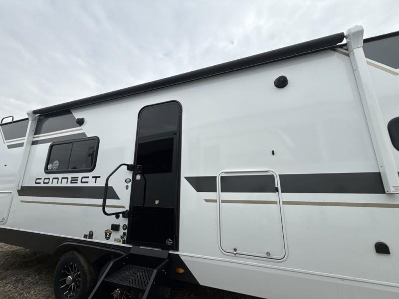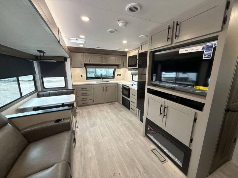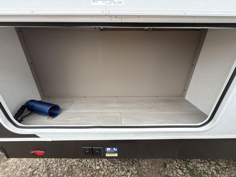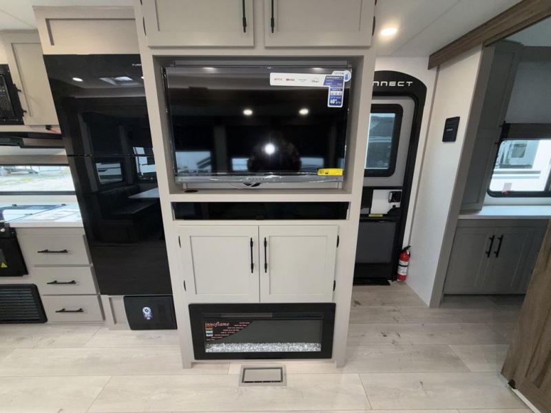 You can use this Connect travel trailer whenever you want to get away! You will remain comfortable each night sleeping in the master suite with a spacious full rear bath where you can freshen up each day. There is also a wardrobe with washer and dryer prep, plenty of counter space, and a wardrobe with outside storage for hiking gear. The front kitchen has ample countertop space for lots of extra space to chop veggies and prep meals, and the large slide in the main living area holds the booth dinette and hide-a-bed sofa. These pieces of furniture rest across from the 34" fireplace for a cozy evening with a cup of coffee, and there is a hidden pantry where you can grab snacks.