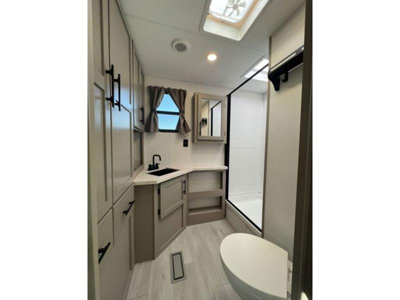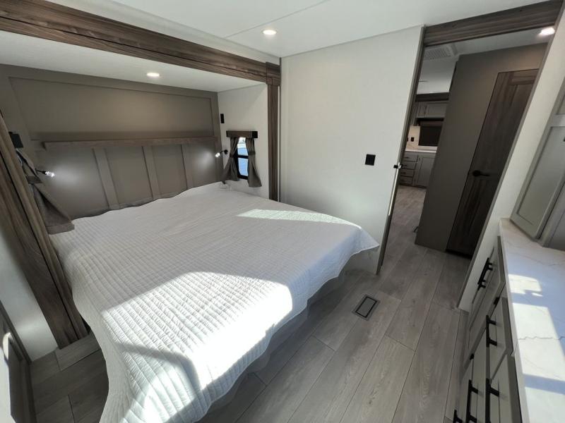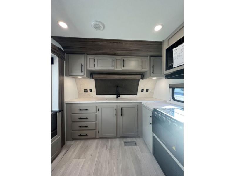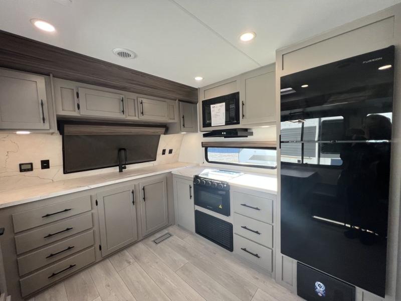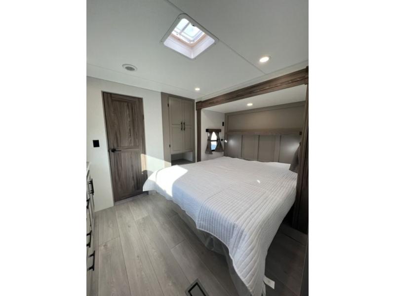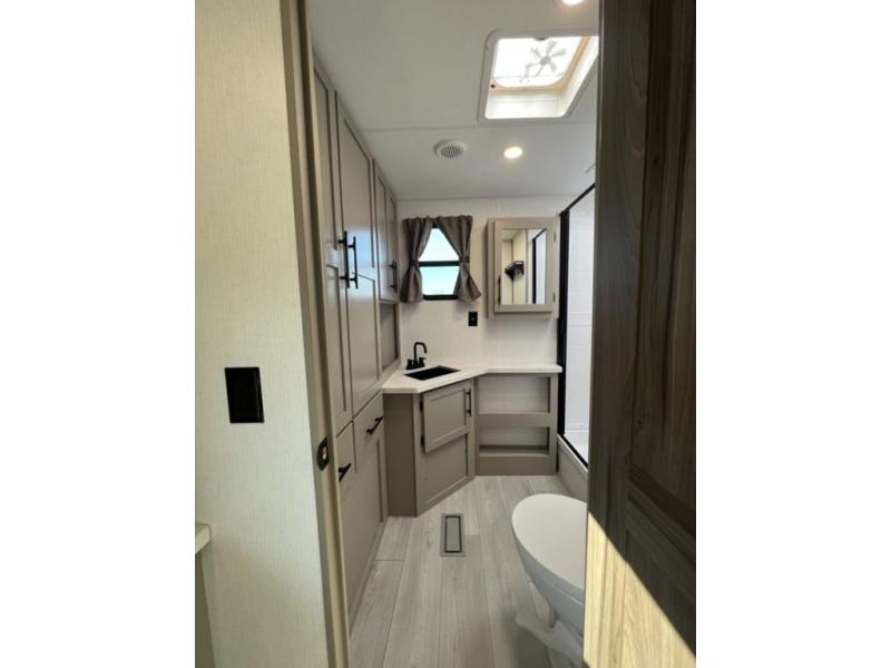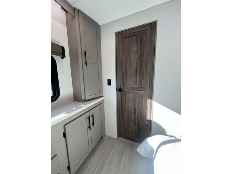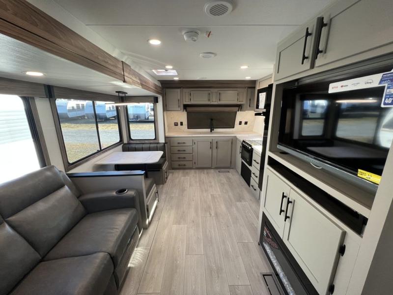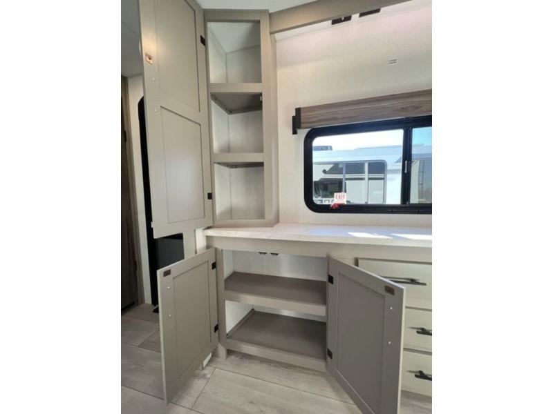 You can use this Connect travel trailer whenever you want to get away! You will remain comfortable each night sleeping in the master suite with a spacious full rear bath where you can freshen up each day. There is also a wardrobe with washer and dryer prep, plenty of counter space, and a wardrobe with outside storage for hiking gear. The front kitchen has ample countertop space for lots of extra space to chop veggies and prep meals, and the large slide in the main living area holds the booth dinette and hide-a-bed sofa. These pieces of furniture rest across from the 34" fireplace for a cozy evening with a cup of coffee, and there is a hidden pantry where you can grab snacks.