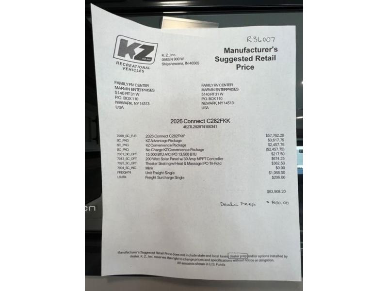 New 2026 KZ Connect C282FKK Travel Trailer