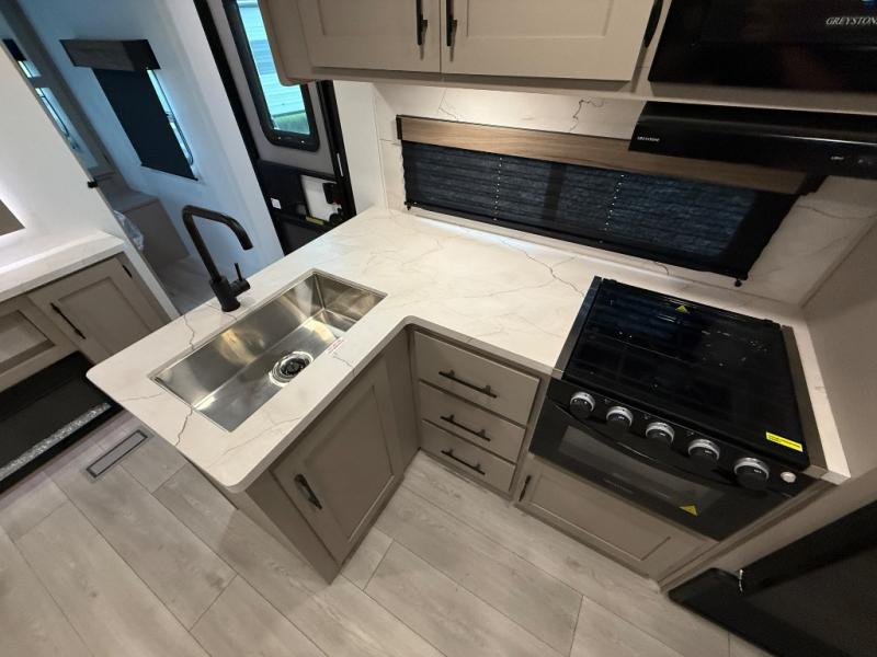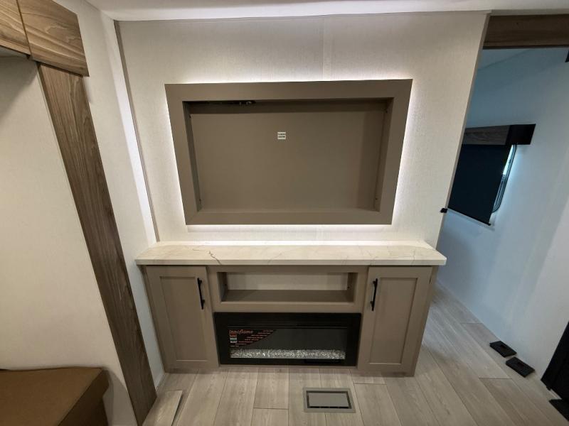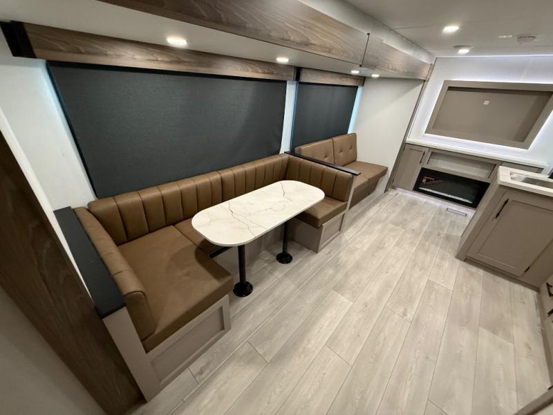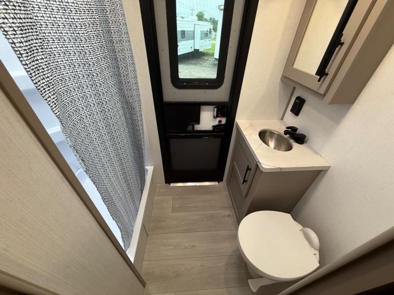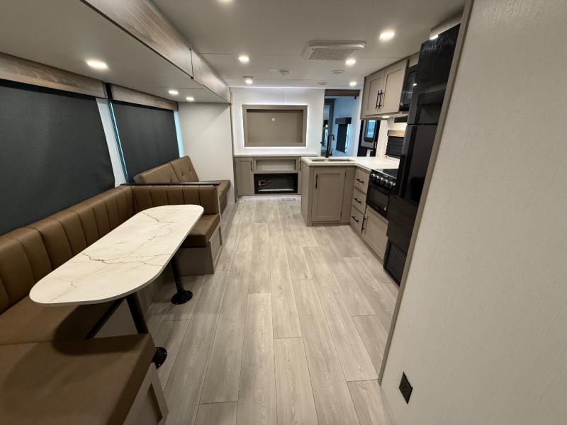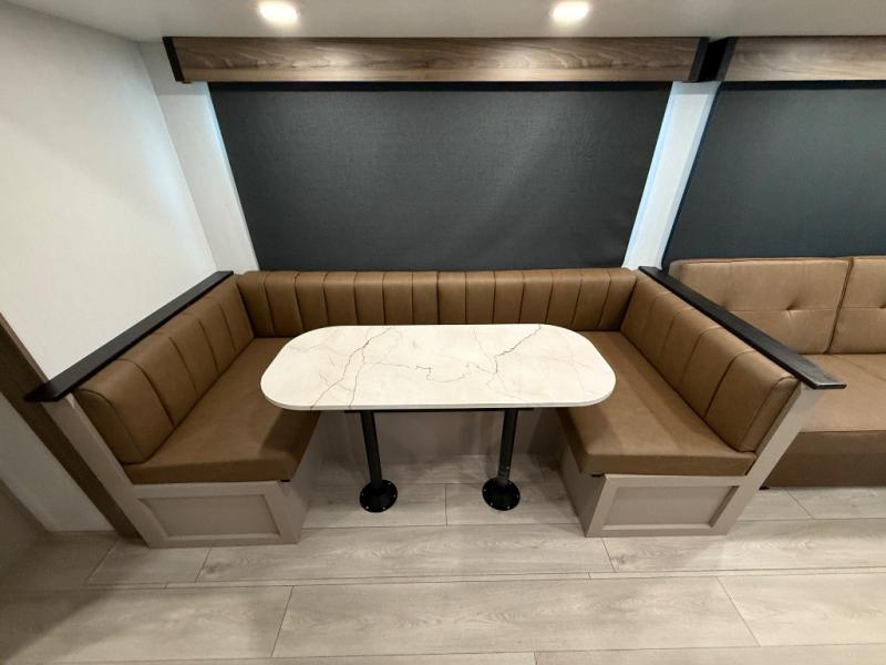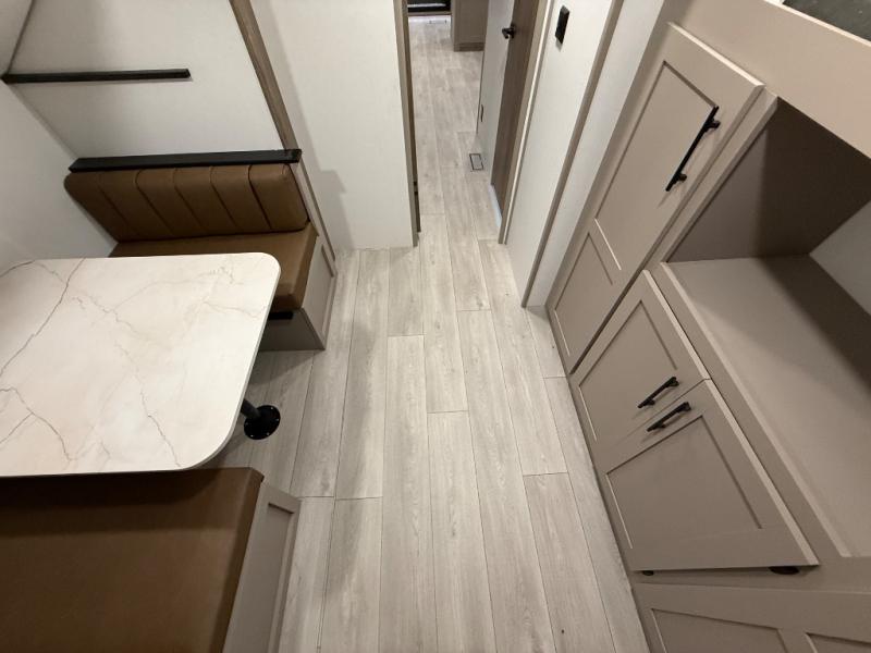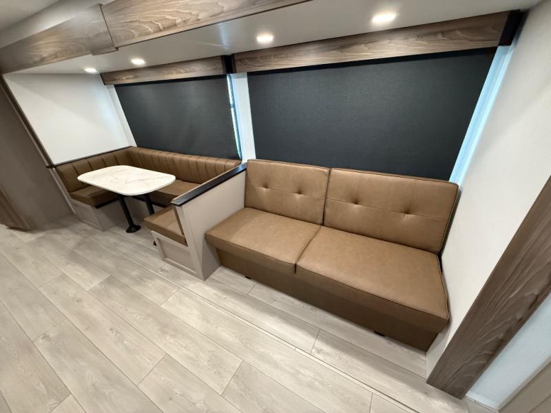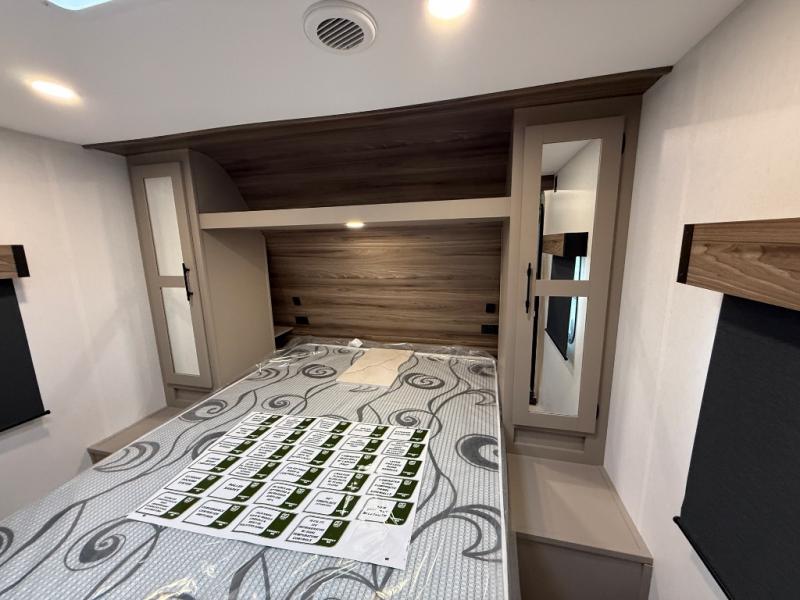 Your kids or your friends will love having their own privacy in the rear bunkhouse which offers two bunks and a dinette to play games or dine at, plus there is a closet for their storage. The full bathroom is conveniently located and includes the second exterior entry for quick and easy access to the fun happening outside. You will have your own private bedroom on the opposite side of the trailer, and it includes a walk-around queen bed, dual wardrobes and a sliding entry door. The main living and kitchen area is spacious with a large slide out, and you can relax on the 64" sofa or the 80" U-shaped dinette while the cook makes meals with full amenities including a 10 cu. ft. 12V refrigerator and a pantry for food storage.