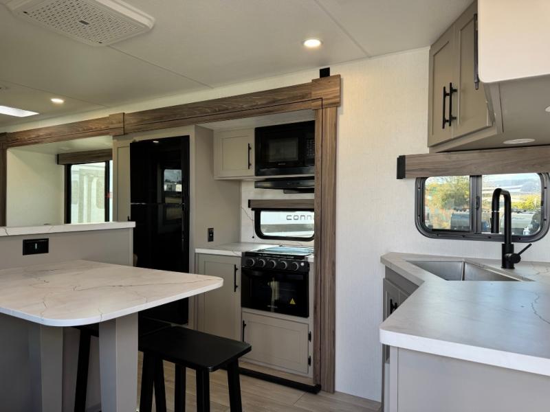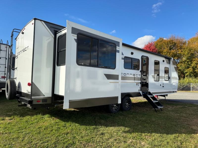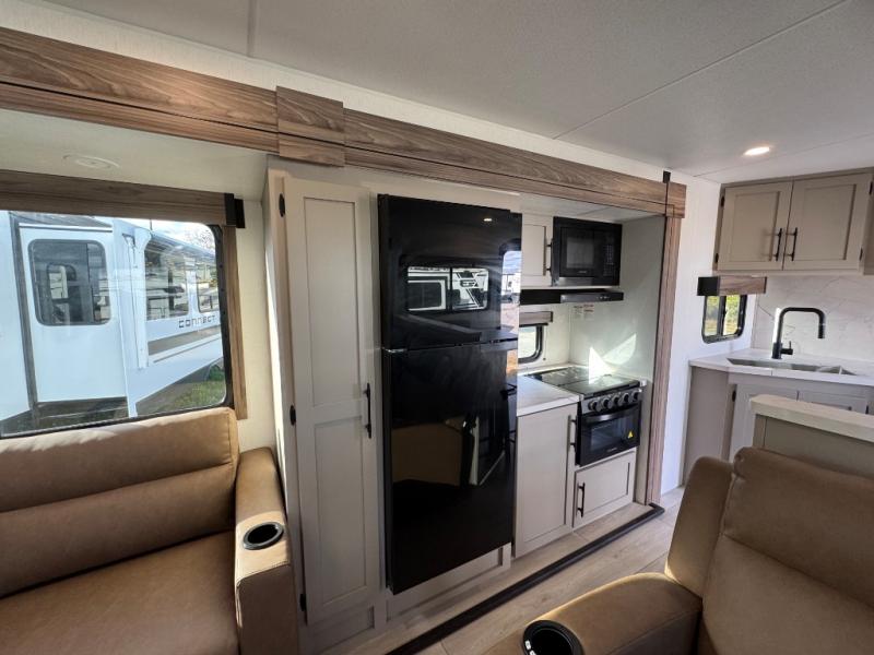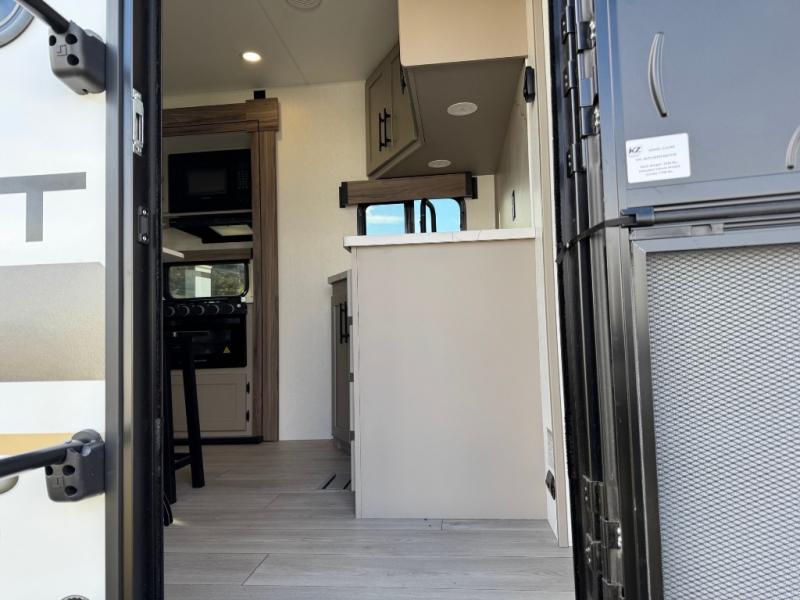 The KZ Connect travel trailer comes with an RV Airflow System which optimizes the airflow for your air conditioner by increasing the airflow by an average of 40%. This improves performance, speeds up cooling times, and reduces noise in your trailer. Some of the other helpful features found on the Connect are the heated, insulated, and enclosed underbelly, the exterior docking station, the fiberglass front cap with front windshield, the 82" interior ceiling height, and the protective front diamond plate. There are some useful technological features, like the two LED motion-sensor lights, the HDMI and USB charge, and the multi-media entertainment system with a DVD player. The KZ Engage is powered by OneControl, and it monitors battery levels and controls slide rooms, the leveling system, the awning, inside/outside lighting, and the TPMS prep.
