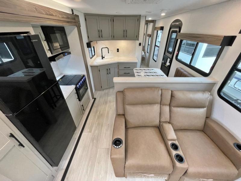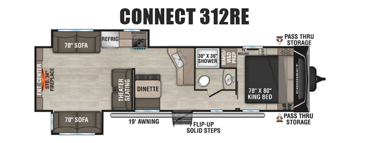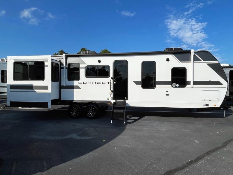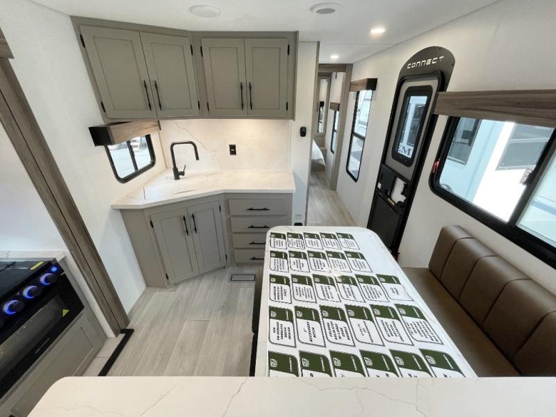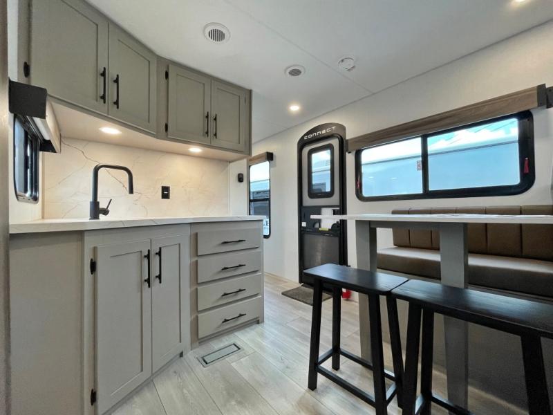 The KZ Connect travel trailer comes with an RV Airflow System which optimizes the airflow for your air conditioner. This improves performance, speeds up cooling times, and reduces noise in your trailer. Some of the other helpful features found on the Connect are the heated, insulated, and enclosed underbelly, the exterior docking station, the fiberglass front cap with front windshield, the 82" interior ceiling height, and the protective front diamond plate. There are some useful technological features, like the two LED motion-sensor lights, the HDMI and USB charger. The KZ Engage is powered by OneControl, and it monitors battery levels and controls slide rooms, the leveling system, the awning, inside/outside lighting, and the TPMS prep.
