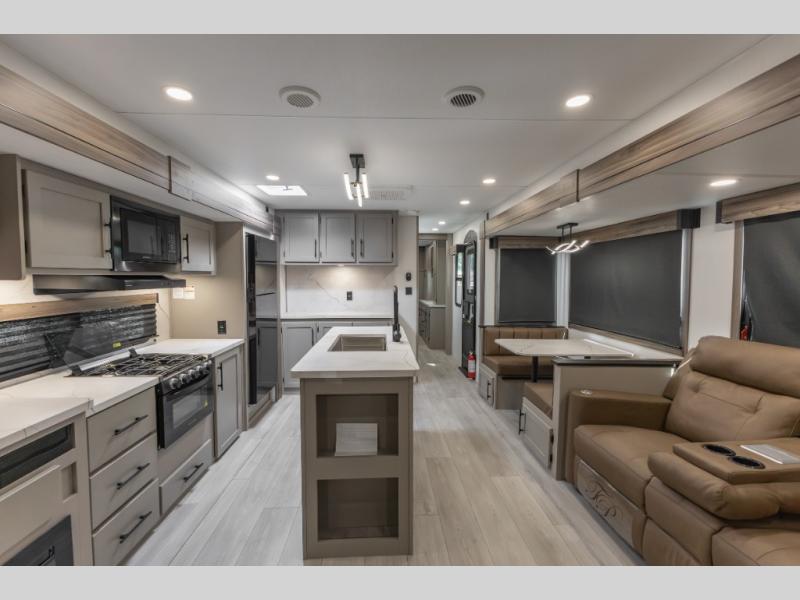 The KZ Connect travel trailer comes with an RV Airflow System which optimizes the airflow for your air conditioner by increasing the airflow by an average of 40%. This improves performance, speeds up cooling times, and reduces noise in your trailer. Some of the other helpful features found on the Connect are the heated, insulated, and enclosed underbelly, the exterior docking station, the fiberglass front cap with front windshield, the 82" interior ceiling height, and the protective front diamond plate. There are some useful technological features, like the two LED motion-sensor lights, the HDMI and USB charge, and the multi-media entertainment system with a DVD player. The KZ Engage is powered by OneControl, and it monitors battery levels and controls slide rooms, the leveling system, the awning, inside/outside lighting, and the TPMS prep.