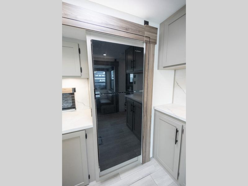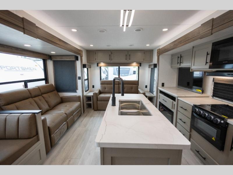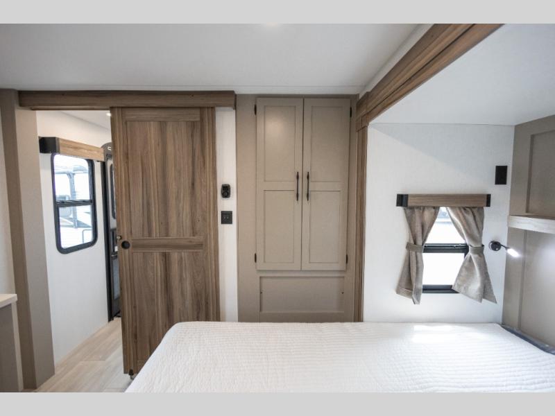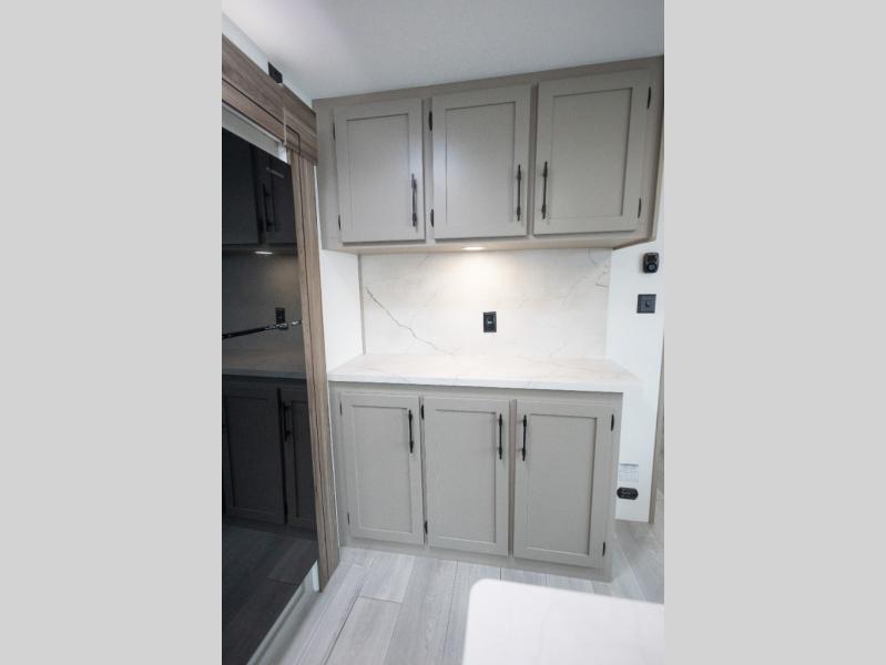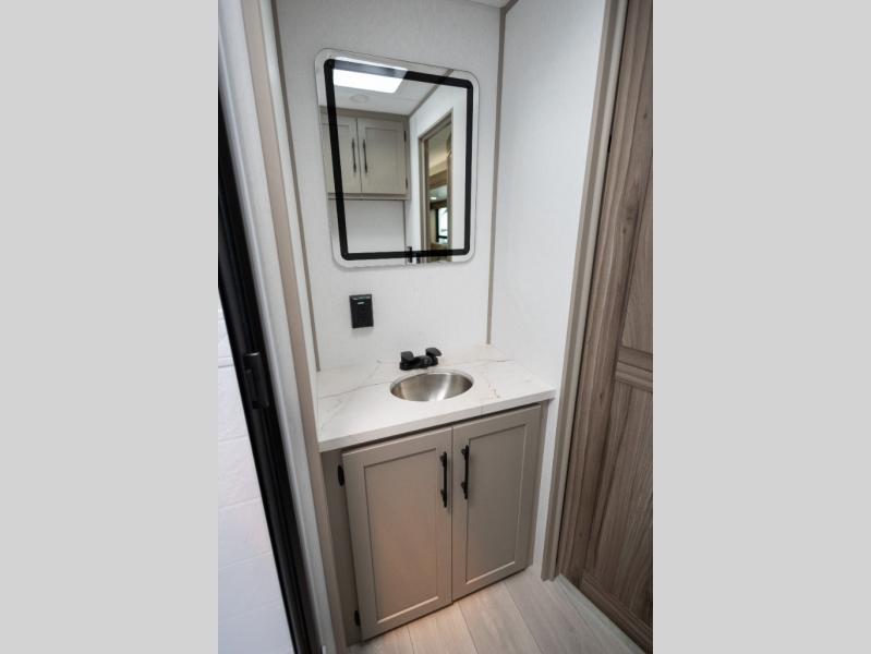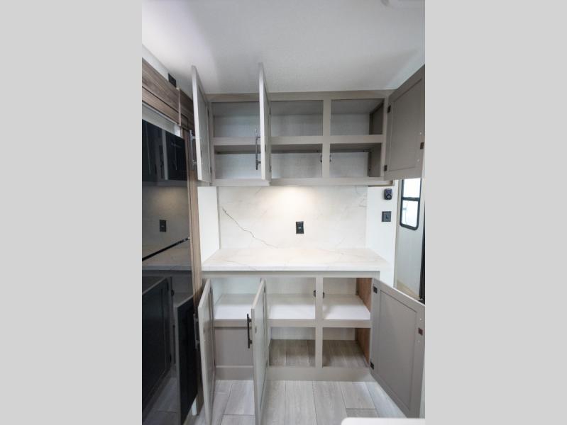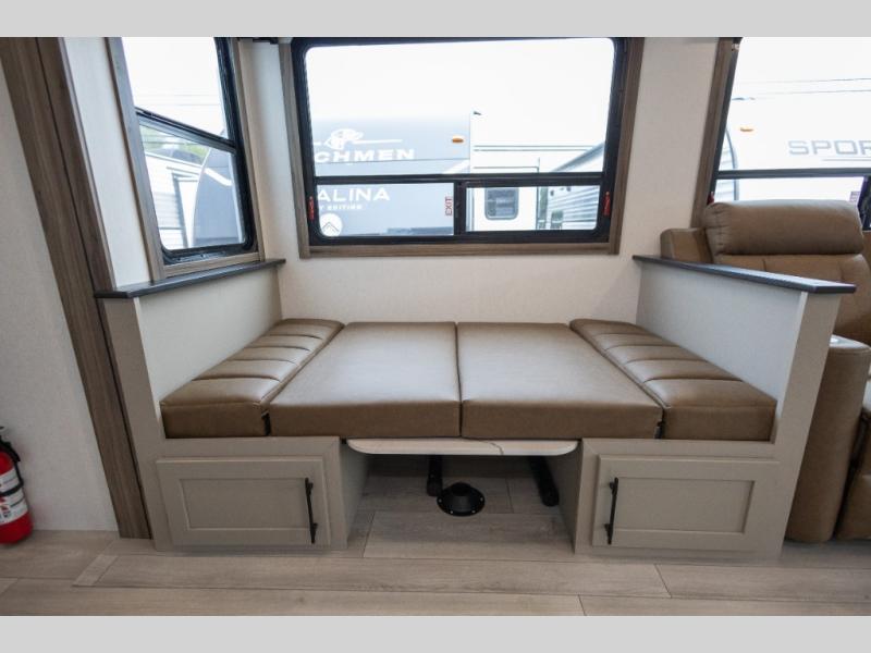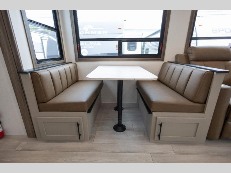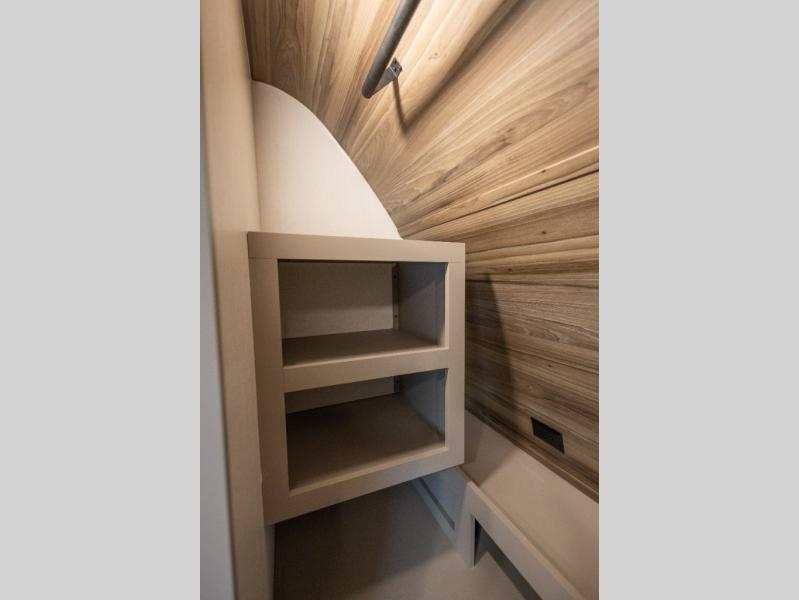 How about a nice afternoon of relaxing on the lake and then rinsing off in the 30" x 36" shower on this Connect travel trailer? After you get clean, you can grab a fresh change of clothes from the front walk-in closet and dresser in the private bedroom. The bedroom also has an area prepped for a washer and dryer and a king bed slide. Out in the main living area, you'll be able to prepare a meal without much effort at all since this trailer has a three-burner range, a microwave, a 10 cu. ft. 12V refrigerator, and a kitchen island for more prep space. You can even have your friends sit on the 70" sofa, theater seating, and booth dinette to chat with you while you finish the meal. You all will also benefit from the two electric awnings with LED lights on the exterior.