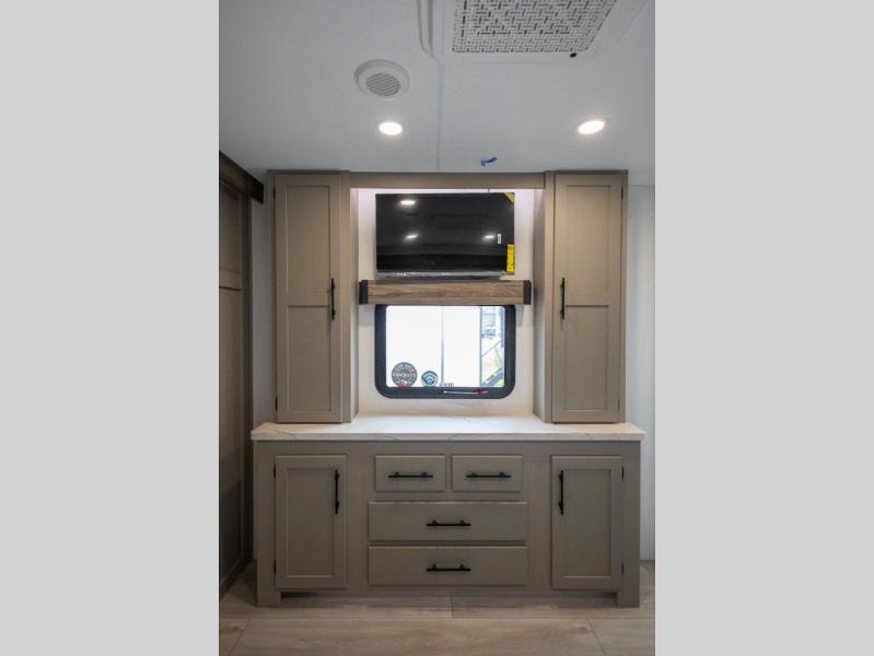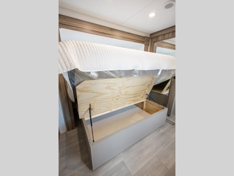 The KZ Connect travel trailer comes with an RV Airflow System which optimizes the airflow for your air conditioner by increasing the airflow by an average of 40%. This improves performance, speeds up cooling times, and reduces noise in your trailer. Some of the other helpful features found on the Connect are the heated, insulated, and enclosed underbelly, the exterior docking station, the fiberglass front cap with front windshield, the 82" interior ceiling height, and the protective front diamond plate. There are some useful technological features, like the two LED motion-sensor lights, the HDMI and USB charge, and the multi-media entertainment system with a DVD player. The KZ Engage is powered by OneControl, and it monitors battery levels and controls slide rooms, the leveling system, the awning, inside/outside lighting, and the TPMS prep.