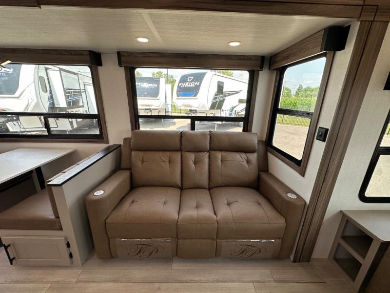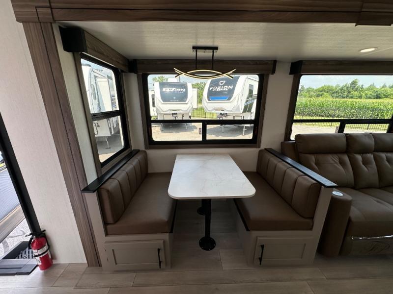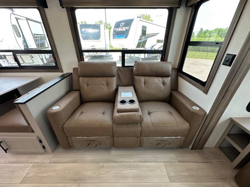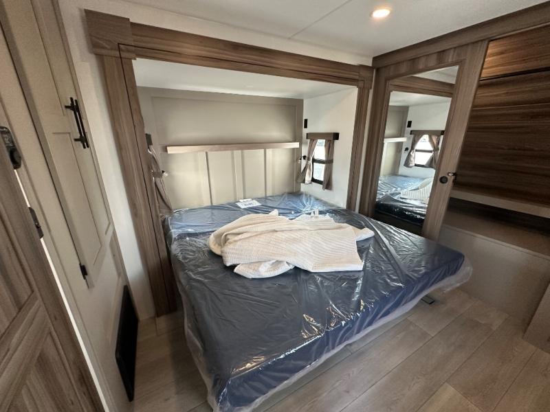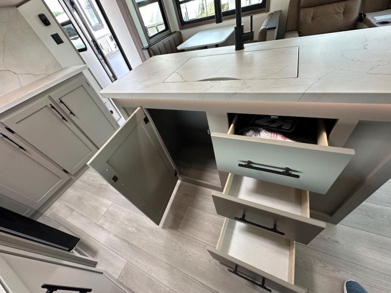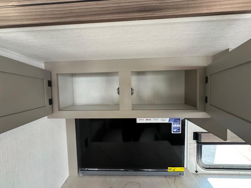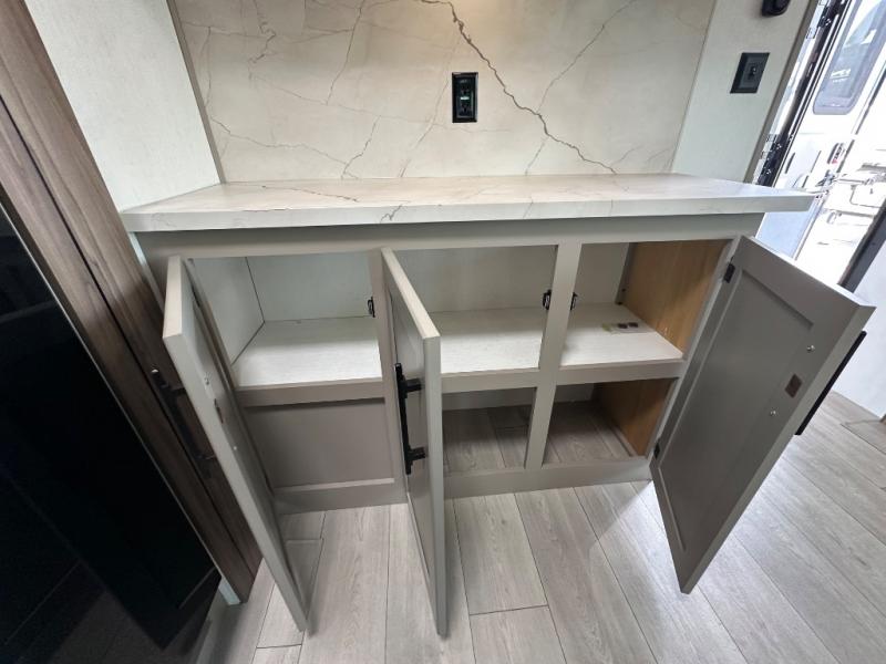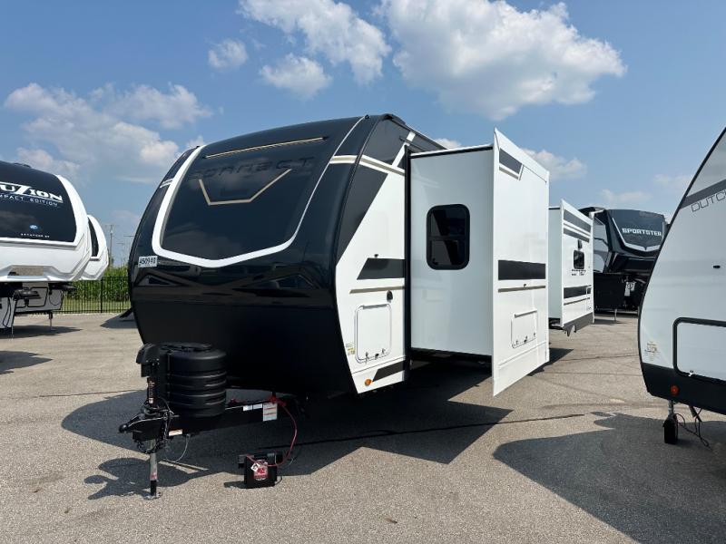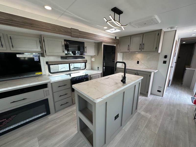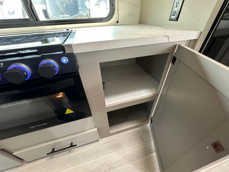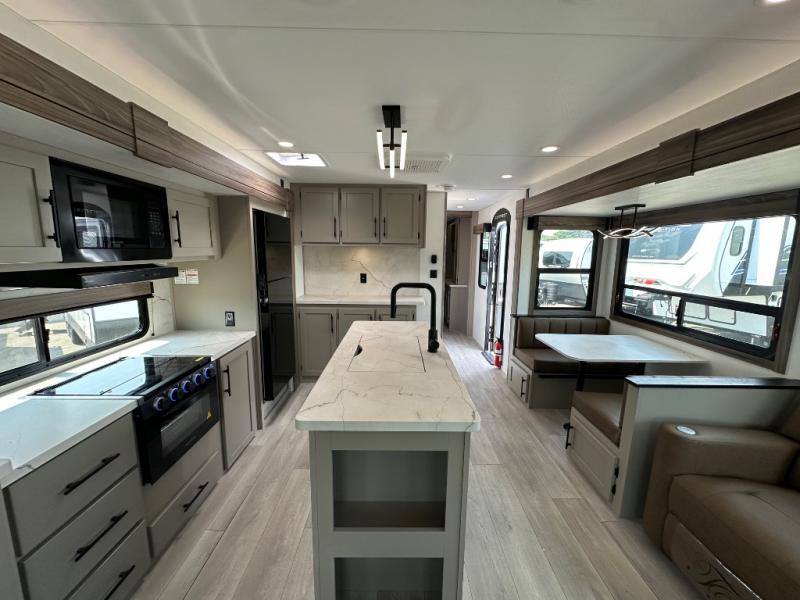 How about a nice afternoon of relaxing on the lake and then rinsing off in the 30" x 36" shower on this Connect travel trailer? After you get clean, you can grab a fresh change of clothes from the front walk-in closet and dresser in the private bedroom. The bedroom also has an area prepped for a washer and dryer and a king bed slide. Out in the main living area, you'll be able to prepare a meal without much effort at all since this trailer has a three-burner range, a microwave, a 10 cu. ft. 12V refrigerator, and a kitchen island for more prep space. You can even have your friends sit on the 70" sofa, theater seating, and booth dinette to chat with you while you finish the meal. You all will also benefit from the two electric awnings with LED lights on the exterior.