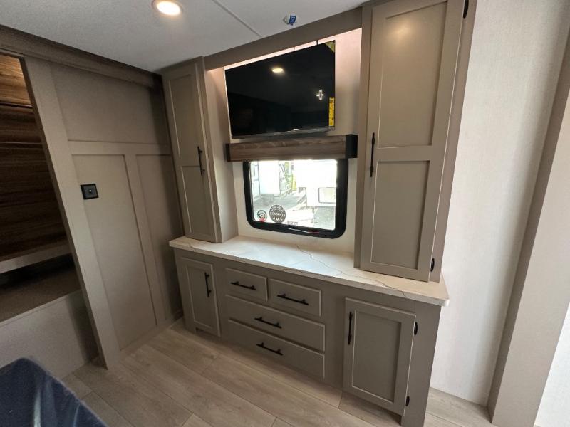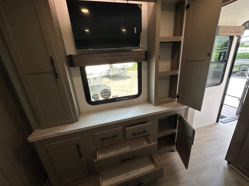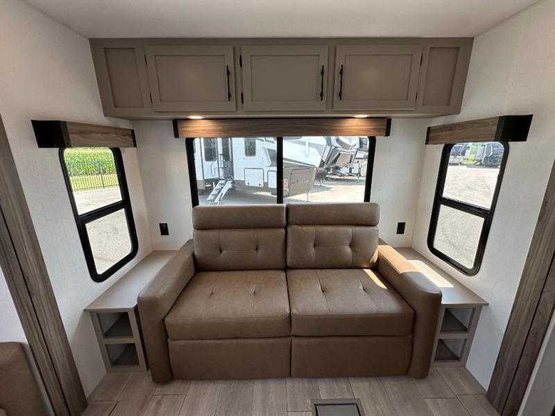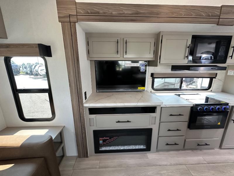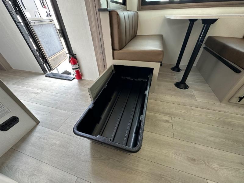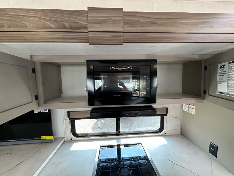 The KZ Connect travel trailer comes with an RV Airflow System which optimizes the airflow for your air conditioner by increasing the airflow by an average of 40%. This improves performance, speeds up cooling times, and reduces noise in your trailer. Some of the other helpful features found on the Connect are the heated, insulated, and enclosed underbelly, the exterior docking station, the fiberglass front cap with front windshield, the 82" interior ceiling height, and the protective front diamond plate. There are some useful technological features, like the two LED motion-sensor lights, the HDMI and USB charge, and the multi-media entertainment system with a DVD player. The KZ Engage is powered by OneControl, and it monitors battery levels and controls slide rooms, the leveling system, the awning, inside/outside lighting, and the TPMS prep.