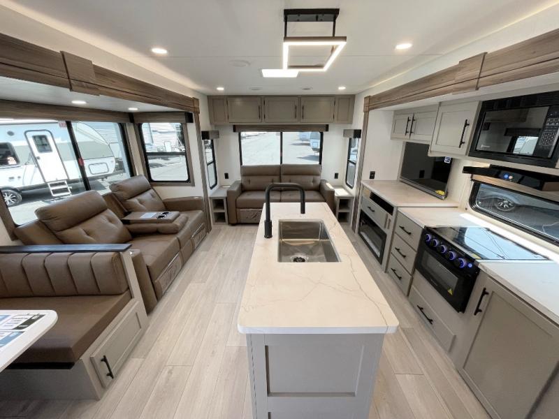 The KZ Connect travel trailer comes with an RV Airflow System which optimizes the airflow for your air conditioner by increasing the airflow by an average of 40%. This improves performance, speeds up cooling times, and reduces noise in your trailer. Some of the other helpful features found on the Connect are the heated, insulated, and enclosed underbelly, the exterior docking station, the fiberglass front cap with front windshield, the 82" interior ceiling height, and the protective front diamond plate. There are some useful technological features, like the two LED motion-sensor lights, the HDMI and USB charge, and the multi-media entertainment system with a DVD player. The KZ Engage is powered by OneControl, and it monitors battery levels and controls slide rooms, the leveling system, the awning, inside/outside lighting, and the TPMS prep.