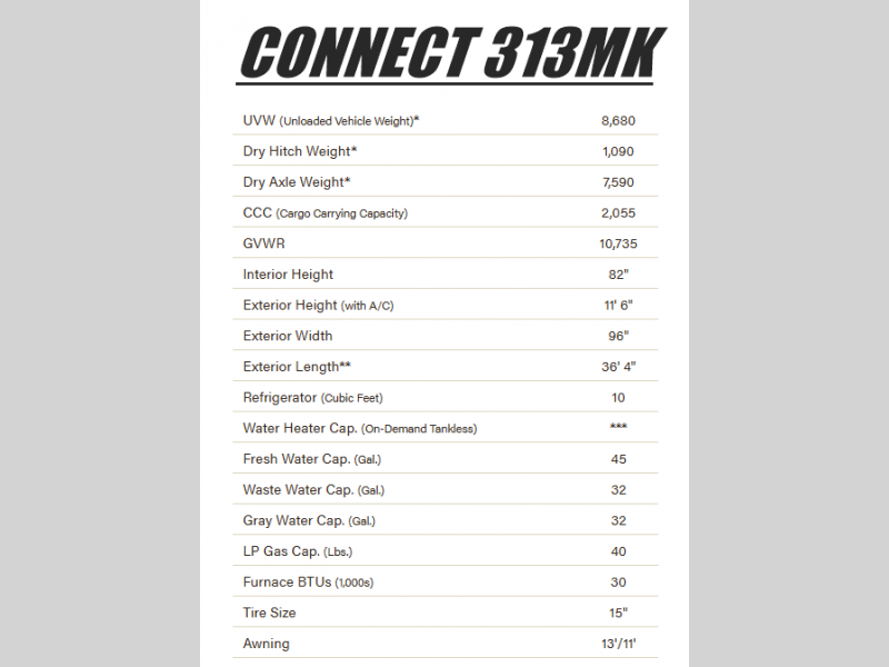 How about a nice afternoon of relaxing on the lake and then rinsing off in the 30" x 36" shower on this Connect travel trailer? After you get clean, you can grab a fresh change of clothes from the front walk-in closet and dresser in the private bedroom. The bedroom also has an area prepped for a washer and dryer and a king bed slide. Out in the main living area, you'll be able to prepare a meal without much effort at all since this trailer has a three-burner range, a microwave, a 10 cu. ft. 12V refrigerator, and a kitchen island for more prep space. You can even have your friends sit on the 70" sofa, theater seating, and booth dinette to chat with you while you finish the meal. You all will also benefit from the two electric awnings with LED lights on the exterior.