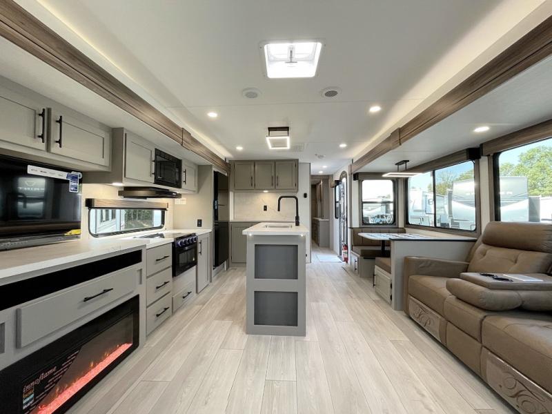The KZ Connect travel trailer comes with an RV Airflow System which optimizes the airflow for your air conditioner by increasing the airflow by an average of 40%. This improves performance, speeds up cooling times, and reduces noise in your trailer. Some of the other helpful features found on the Connect are the heated, insulated, and enclosed underbelly, the exterior docking station, the fiberglass front cap with front windshield, the 82" interior ceiling height, and the protective front diamond plate. There are some useful technological features, like the two LED motion-sensor lights, the HDMI and USB charge, and the multi-media entertainment system with a DVD player. The KZ Engage is powered by OneControl, and it monitors battery levels and controls slide rooms, the leveling system, the awning, inside/outside lighting, and the TPMS prep.