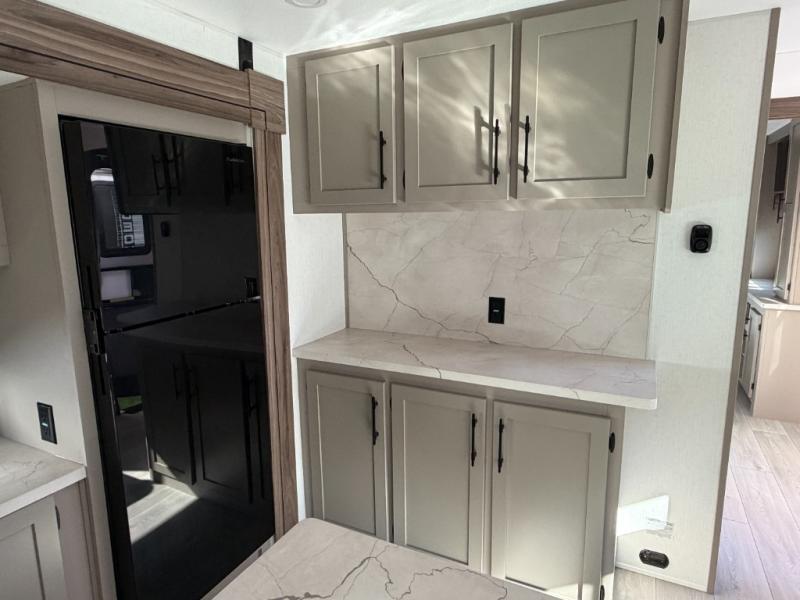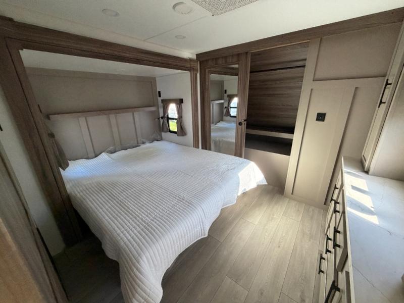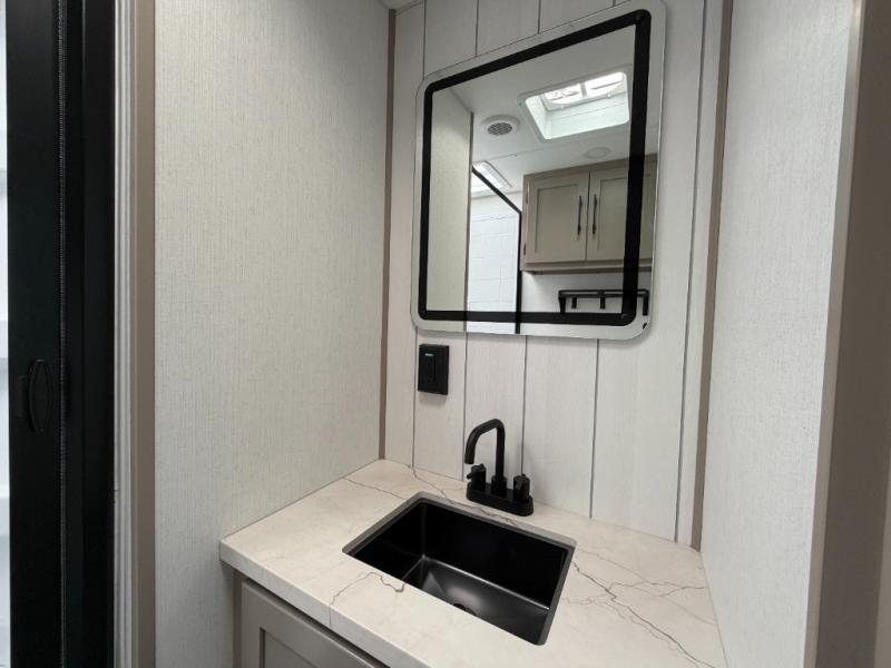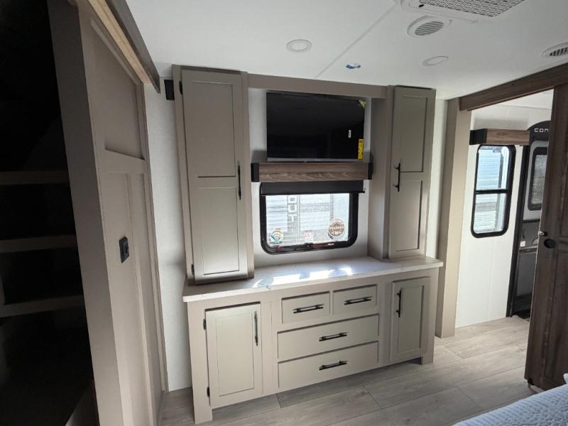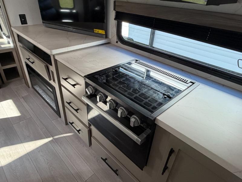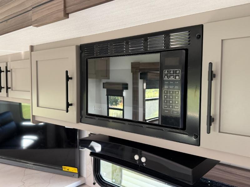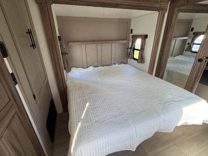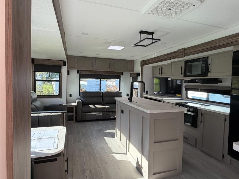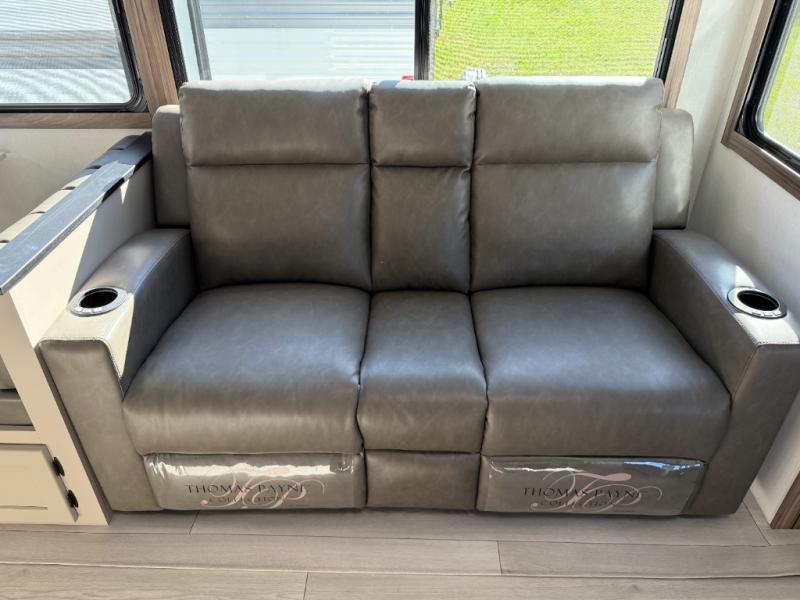 How about a nice afternoon of relaxing on the lake and then rinsing off in the 30" x 36" shower on this Connect travel trailer? After you get clean, you can grab a fresh change of clothes from the front walk-in closet and dresser in the private bedroom. The bedroom also has an area prepped for a washer and dryer and a king bed slide. Out in the main living area, you'll be able to prepare a meal without much effort at all since this trailer has a three-burner range, a microwave, a 10 cu. ft. 12V refrigerator, and a kitchen island for more prep space. You can even have your friends sit on the 70" sofa, theater seating, and booth dinette to chat with you while you finish the meal. You all will also benefit from the two electric awnings with LED lights on the exterior.