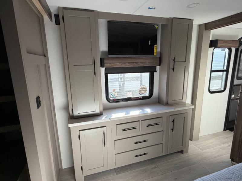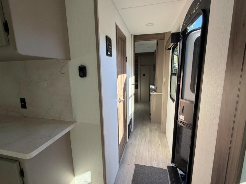 The KZ Connect travel trailer comes with an RV Airflow System which optimizes the airflow for your air conditioner by increasing the airflow by an average of 40%. This improves performance, speeds up cooling times, and reduces noise in your trailer. Some of the other helpful features found on the Connect are the heated, insulated, and enclosed underbelly, the exterior docking station, the fiberglass front cap with front windshield, the 82" interior ceiling height, and the protective front diamond plate. There are some useful technological features, like the two LED motion-sensor lights, the HDMI and USB charge, and the multi-media entertainment system with a DVD player. The KZ Engage is powered by OneControl, and it monitors battery levels and controls slide rooms, the leveling system, the awning, inside/outside lighting, and the TPMS prep.