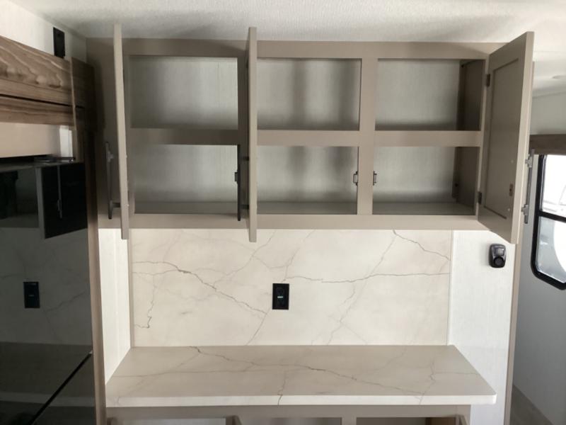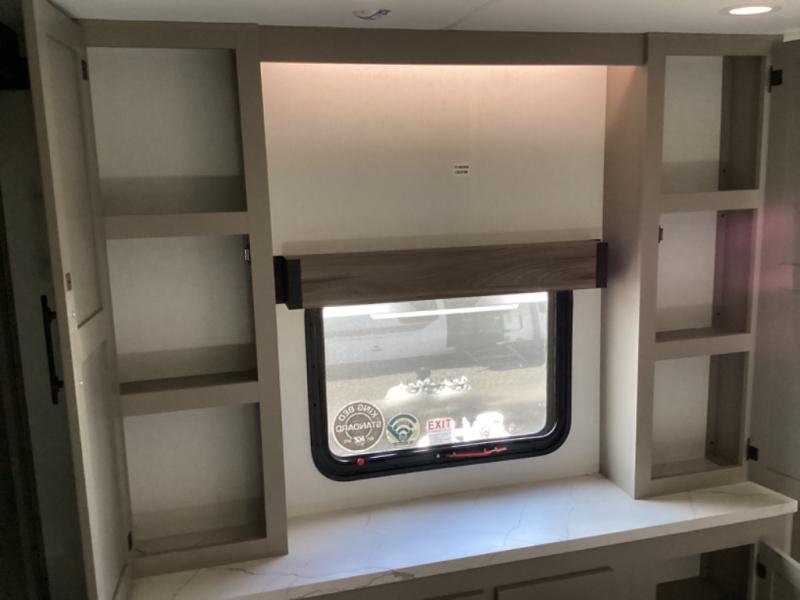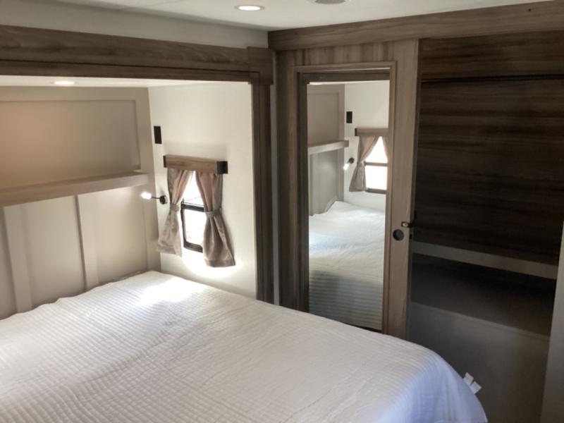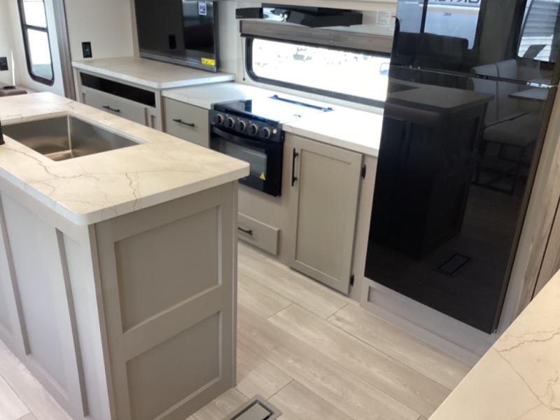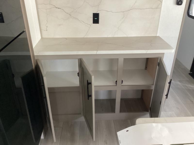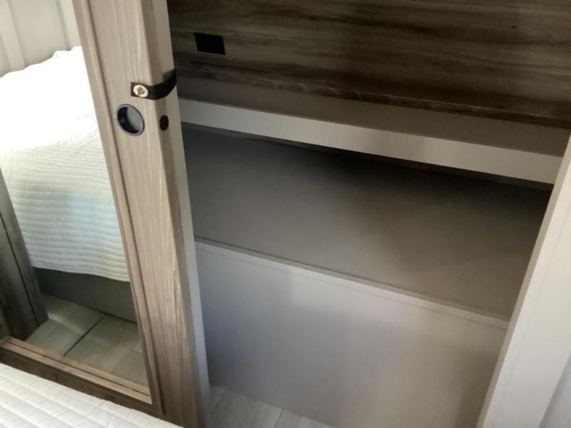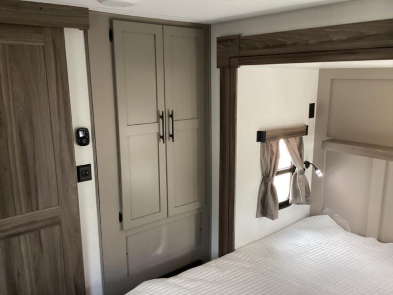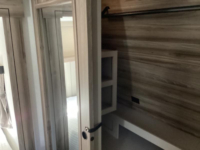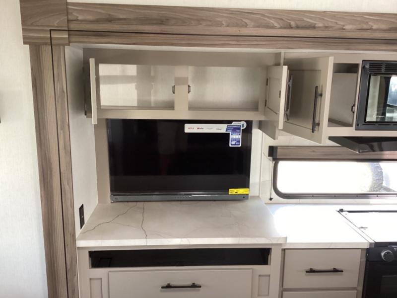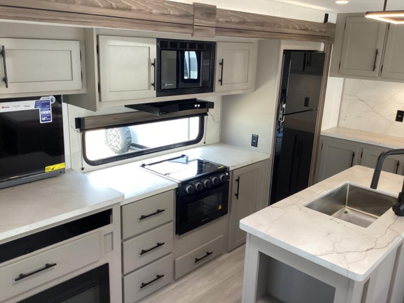 How about a nice afternoon of relaxing on the lake and then rinsing off in the 30" x 36" shower on this Connect travel trailer? After you get clean, you can grab a fresh change of clothes from the front walk-in closet and dresser in the private bedroom. The bedroom also has an area prepped for a washer and dryer and a king bed slide. Out in the main living area, you'll be able to prepare a meal without much effort at all since this trailer has a three-burner range, a microwave, a 10 cu. ft. 12V refrigerator, and a kitchen island for more prep space. You can even have your friends sit on the 70" sofa, theater seating, and booth dinette to chat with you while you finish the meal. You all will also benefit from the two electric awnings with LED lights on the exterior.