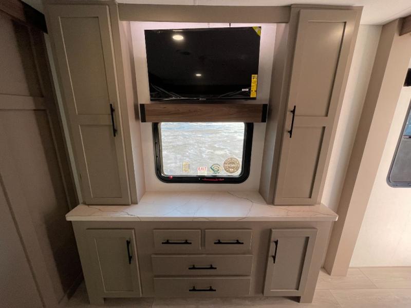 The KZ Connect travel trailer comes with an RV Airflow System which optimizes the airflow for your air conditioner. This improves performance, speeds up cooling times, and reduces noise in your trailer. Some of the other helpful features found on the Connect are the heated, insulated, and enclosed underbelly, the exterior docking station, the fiberglass front cap with front windshield, the 82" interior ceiling height, and the protective front diamond plate. There are some useful technological features, like the two LED motion-sensor lights, the HDMI and USB charger. The KZ Engage is powered by OneControl, and it monitors battery levels and controls slide rooms, the leveling system, the awning, inside/outside lighting, and the TPMS prep.