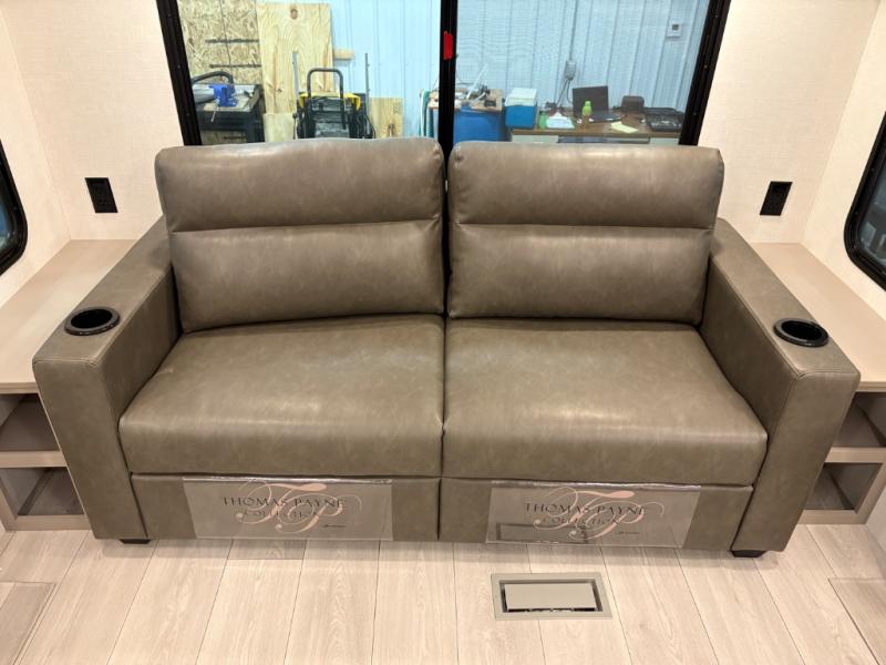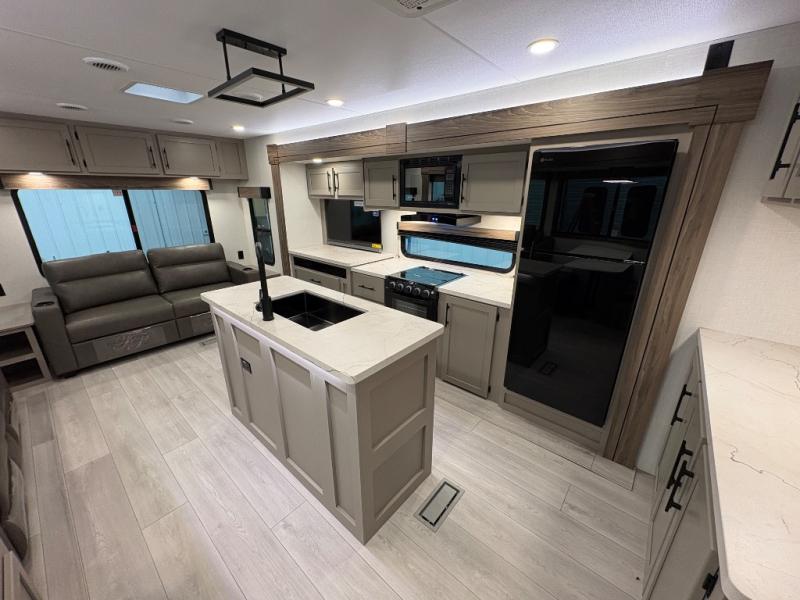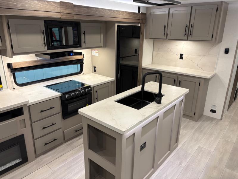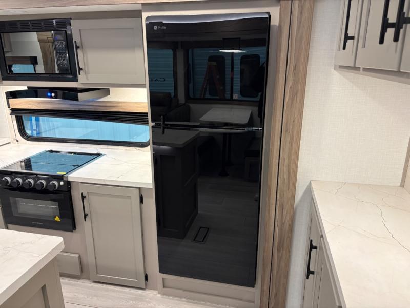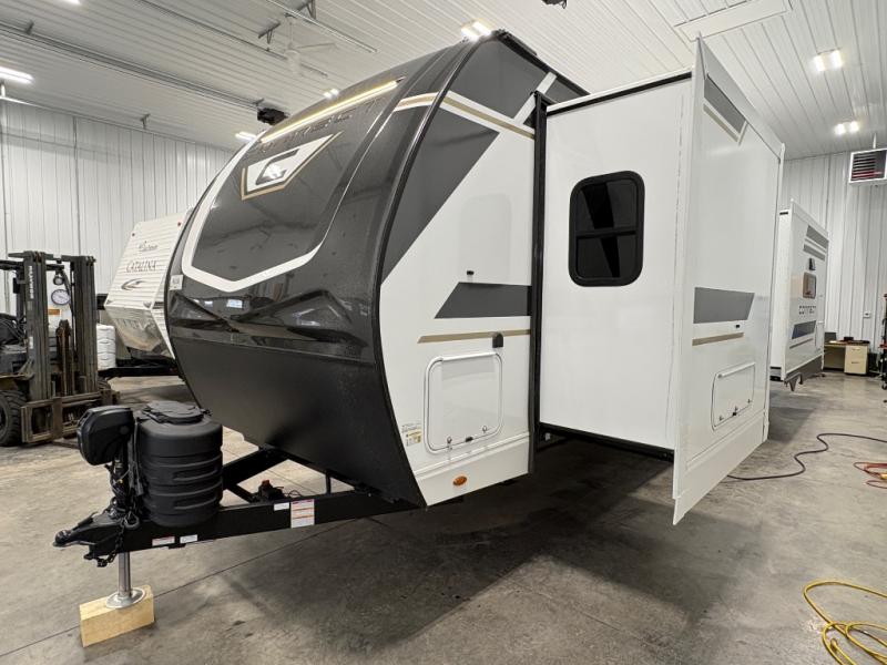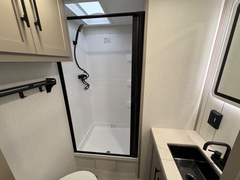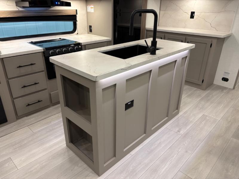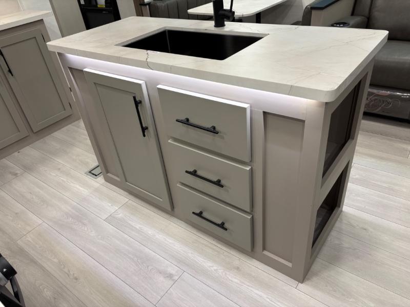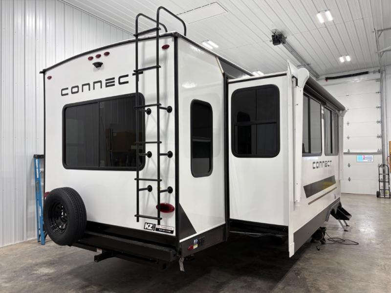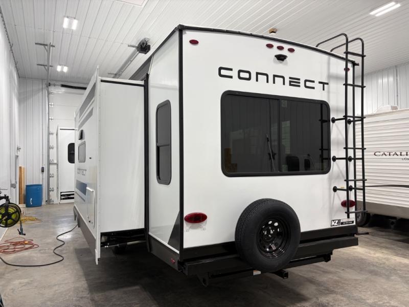 How about a nice afternoon of relaxing on the lake and then rinsing off in the 30" x 36" shower on this Connect travel trailer? After you get clean, you can grab a fresh change of clothes from the front walk-in closet and dresser in the private bedroom. The bedroom also has an area prepped for a washer and dryer and a king bed slide. Out in the main living area, you'll be able to prepare a meal without much effort at all since this trailer has a three-burner range, a microwave, a 10 cu. ft. 12V refrigerator, and a kitchen island for more prep space. You can even have your friends sit on the 70" sofa, theater seating, and booth dinette to chat with you while you finish the meal. You all will also benefit from the two electric awnings with LED lights on the exterior.
