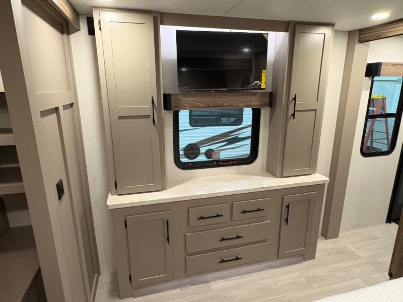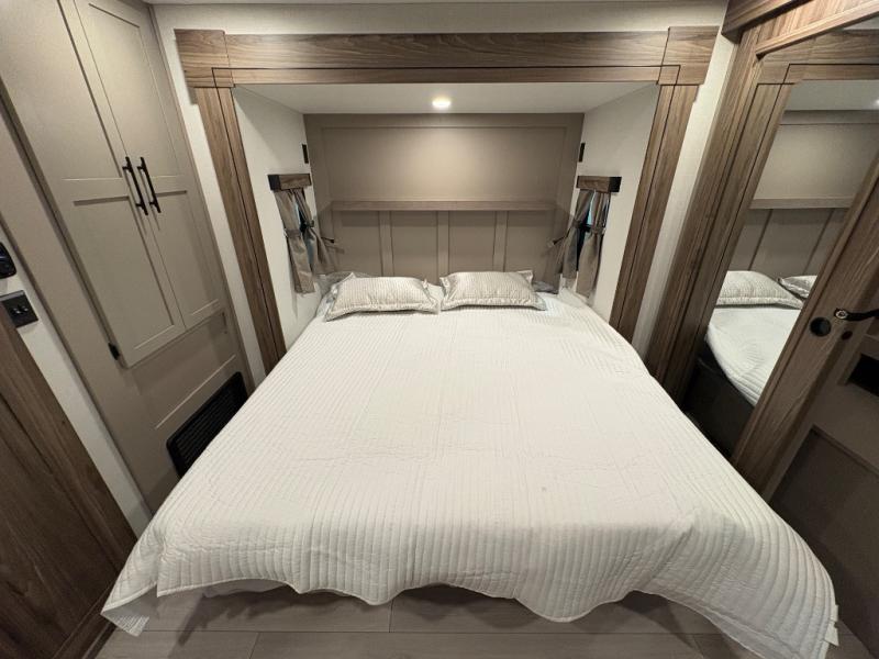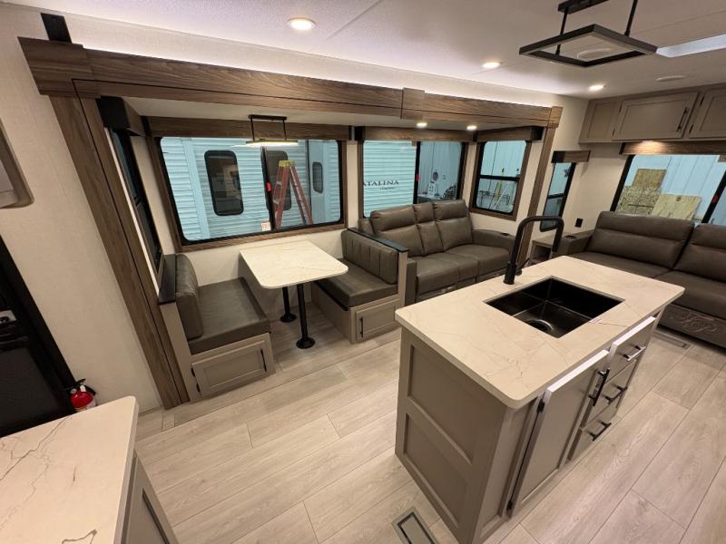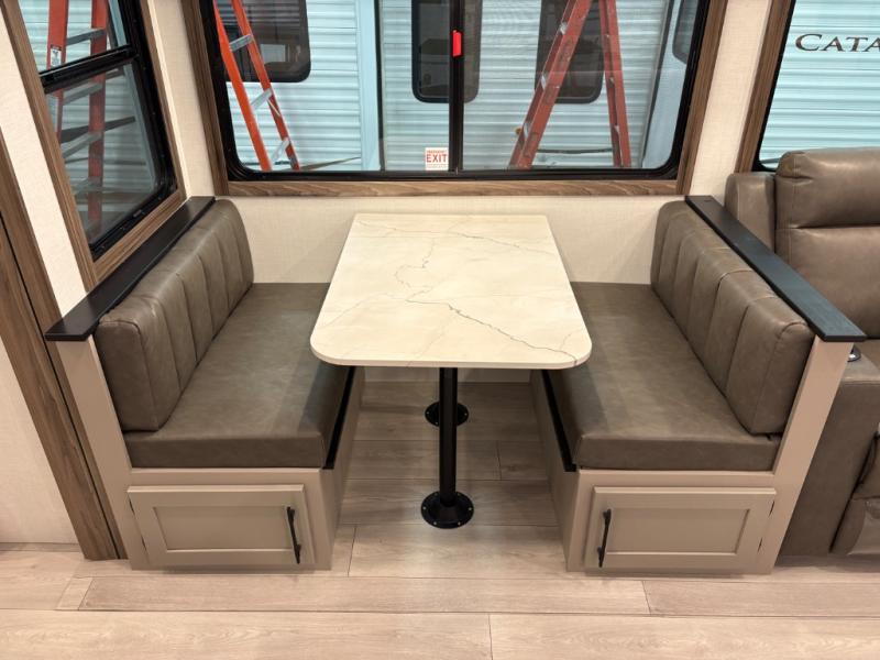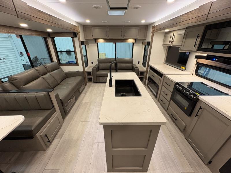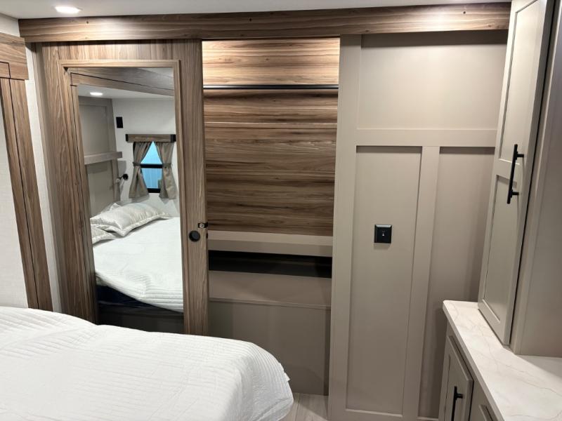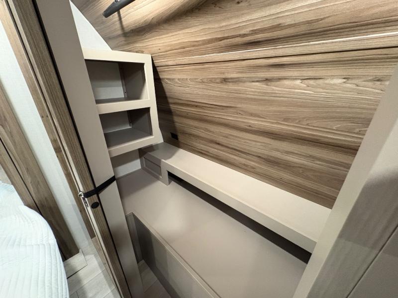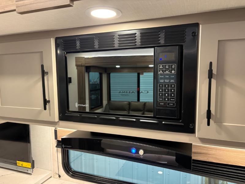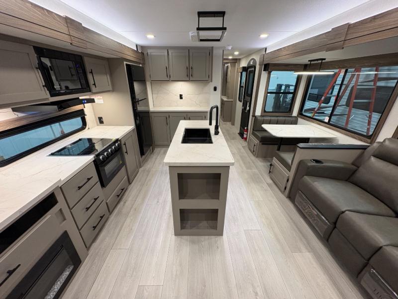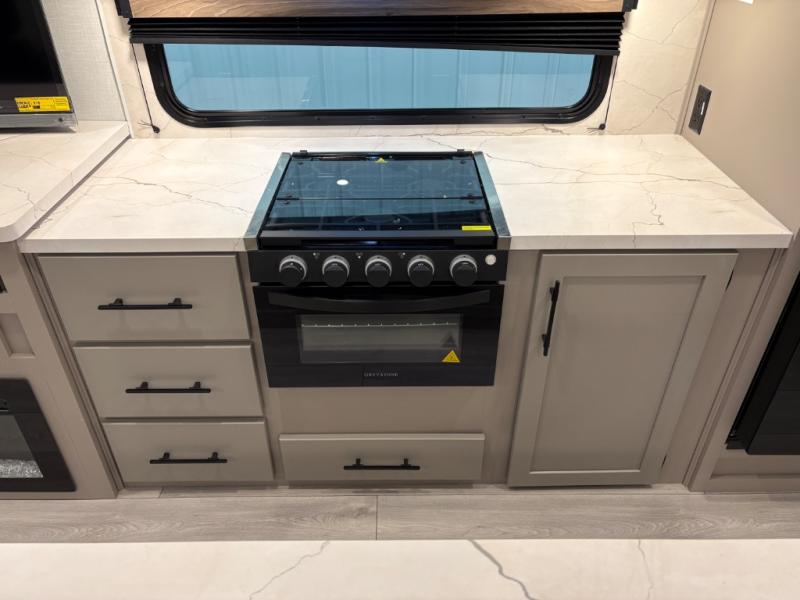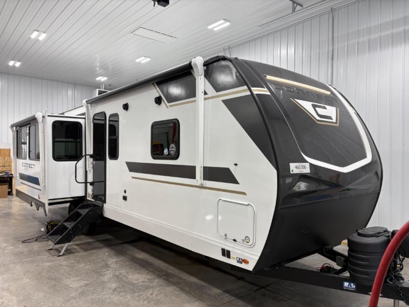 How about a nice afternoon of relaxing on the lake and then rinsing off in the 30" x 36" shower on this Connect travel trailer? After you get clean, you can grab a fresh change of clothes from the front walk-in closet and dresser in the private bedroom. The bedroom also has an area prepped for a washer and dryer and a king bed slide. Out in the main living area, you'll be able to prepare a meal without much effort at all since this trailer has a three-burner range, a microwave, a 10 cu. ft. 12V refrigerator, and a kitchen island for more prep space. You can even have your friends sit on the 70" sofa, theater seating, and booth dinette to chat with you while you finish the meal. You all will also benefit from the two electric awnings with LED lights on the exterior.