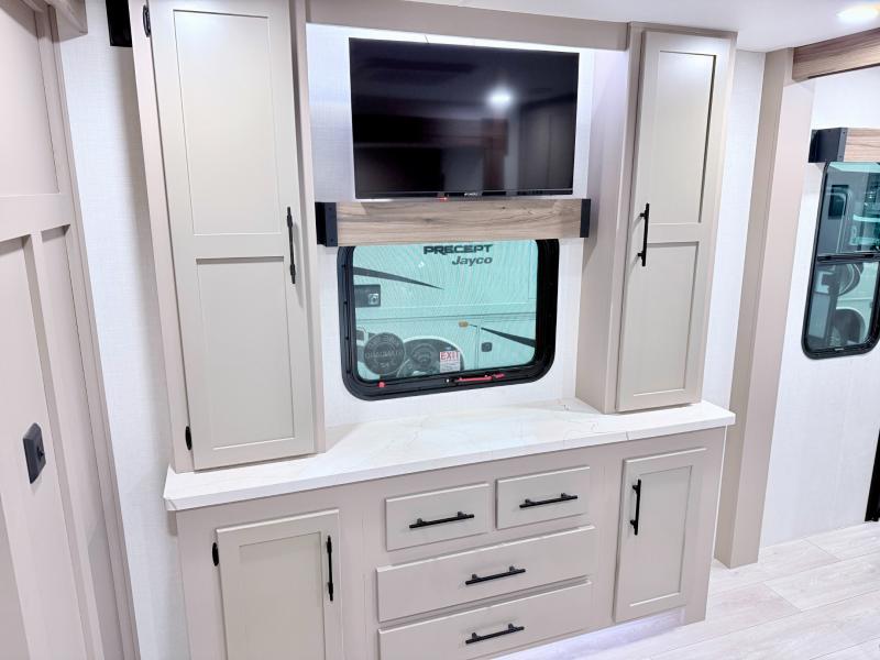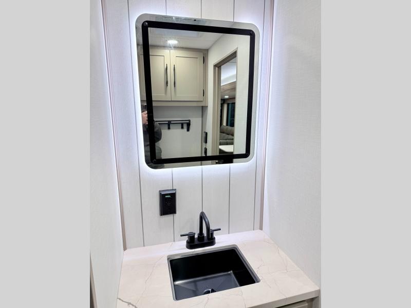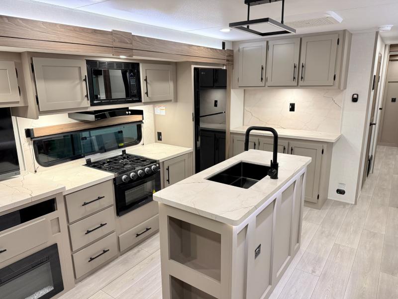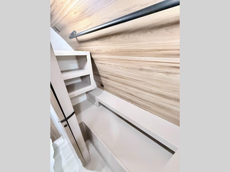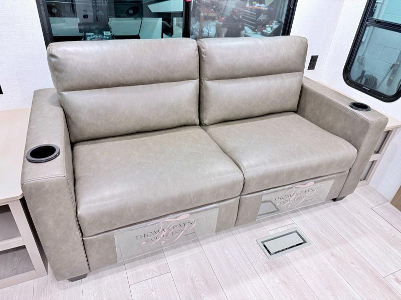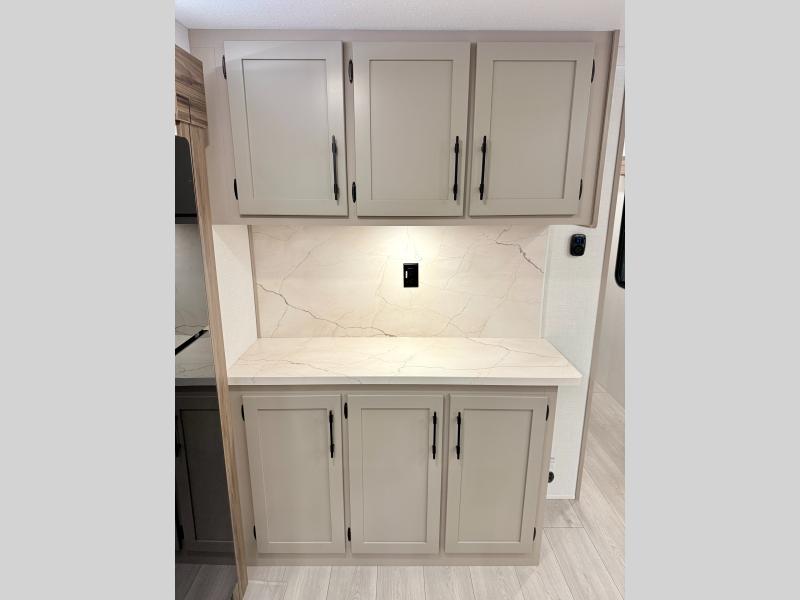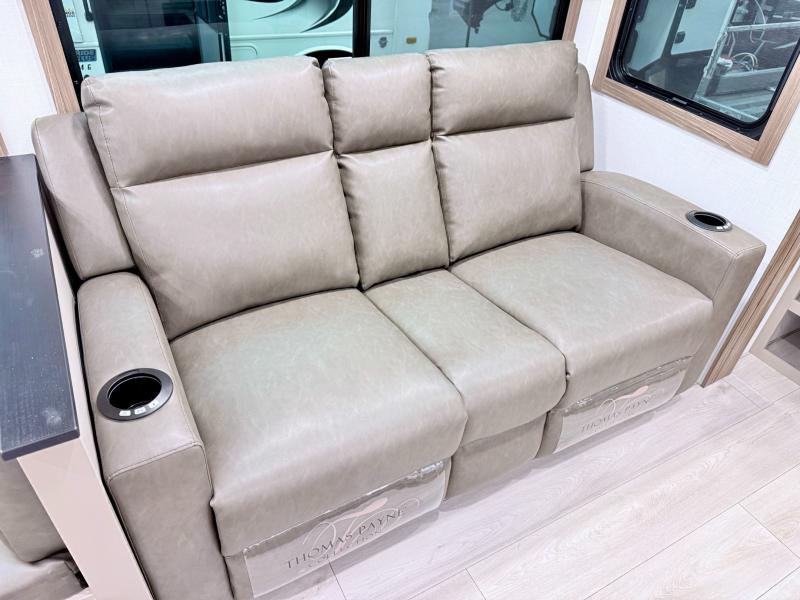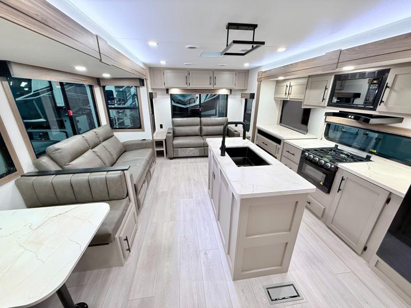 How about a nice afternoon of relaxing on the lake and then rinsing off in the 30" x 36" shower on this Connect travel trailer? After you get clean, you can grab a fresh change of clothes from the front walk-in closet and dresser in the private bedroom. The bedroom also has an area prepped for a washer and dryer and a king bed slide. Out in the main living area, you'll be able to prepare a meal without much effort at all since this trailer has a three-burner range, a microwave, a 10 cu. ft. 12V refrigerator, and a kitchen island for more prep space. You can even have your friends sit on the 70" sofa, theater seating, and booth dinette to chat with you while you finish the meal. You all will also benefit from the two electric awnings with LED lights on the exterior.