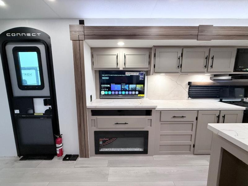 The KZ Connect travel trailer comes with an RV Airflow System which optimizes the airflow for your air conditioner. This improves performance, speeds up cooling times, and reduces noise in your trailer. Some of the other helpful features found on the Connect are the heated, insulated, and enclosed underbelly, the exterior docking station, the fiberglass front cap with front windshield, the 82" interior ceiling height, and the protective front diamond plate. There are some useful technological features, like the two LED motion-sensor lights, the HDMI and USB charger. The KZ Engage is powered by OneControl, and it monitors battery levels and controls slide rooms, the leveling system, the awning, inside/outside lighting, and the TPMS prep.