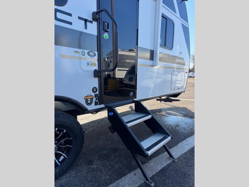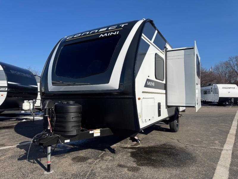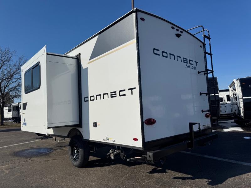 With any Connect Mini travel trailer by KZ, you will enjoy lightweight towing, interior comforts, and a price point you're sure to appreciate. Each model is constructed with durable 1-piece Tufflex material, 5/8" tongue and groove plywood flooring, and a molded fiberglass front cap with a windshield to let of your outdoor views in! You will love the look of the full glass friction hinged entry door, and the power awning with an LED light strip will provide a place to visit outdoors with friends and family. A hot and cold exterior shower also comes standard, along with a folding grab handle plus roof mounted solar prep and backup camera prep. Head inside to find residential grade linoleum, seamless countertops, roller shades, and painted hardwood cabinet doors. The 42,000 BTU tankless hot water heater will provide endless hot showers, and the low profile 13,500 BTU A/C will keep you comfortable during the summer!