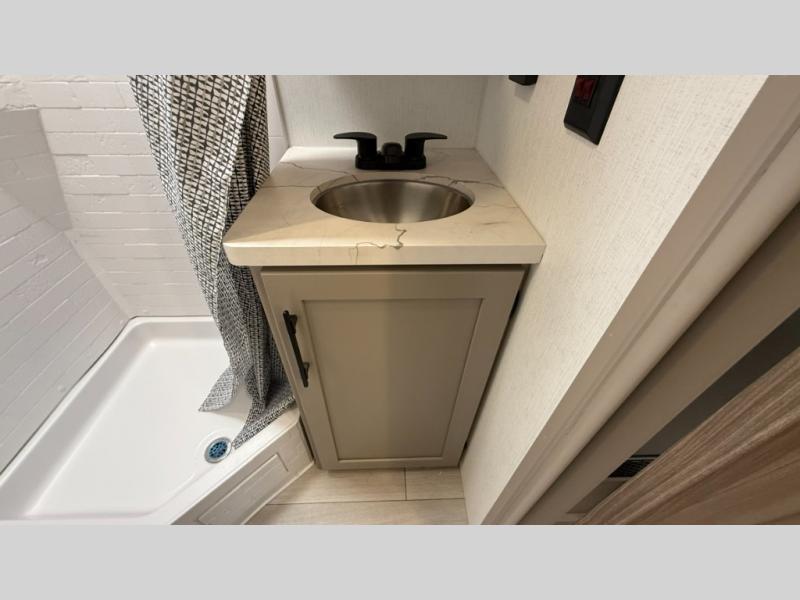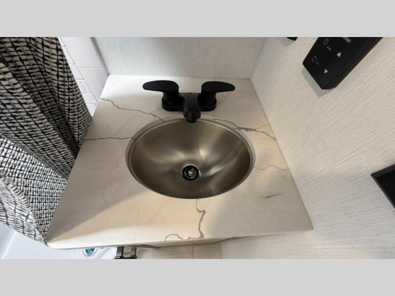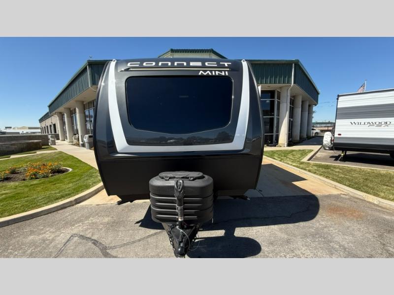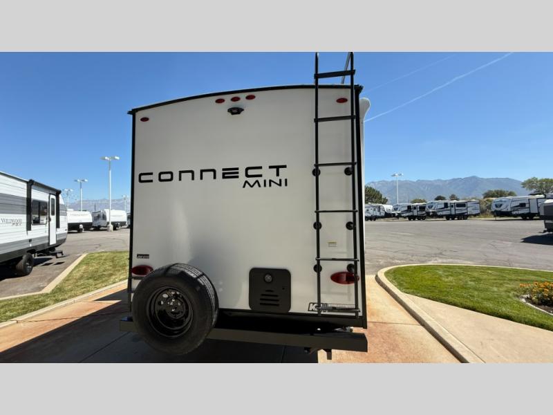 With any Connect Mini travel trailer by KZ, you will enjoy lightweight towing, interior comforts, and a price point you're sure to appreciate. Each model is constructed with durable 1-piece Tufflex material, 5/8" tongue and groove plywood flooring, and a molded fiberglass front cap with a windshield to let of your outdoor views in! You will love the look of the full glass friction hinged entry door, and the power awning with an LED light strip will provide a place to visit outdoors with friends and family. A hot and cold exterior shower also comes standard, along with nitrogen filled tires, a folding grab handle plus roof mounted solar prep and backup camera prep. Head inside to find residential grade linoleum, seamless countertops, roller shades, and painted hardwood cabinet doors. The 42,000 BTU tankless hot water heater will provide endless hot showers, and the low profile 13,500 BTU A/C will keep you comfortable during the summer!